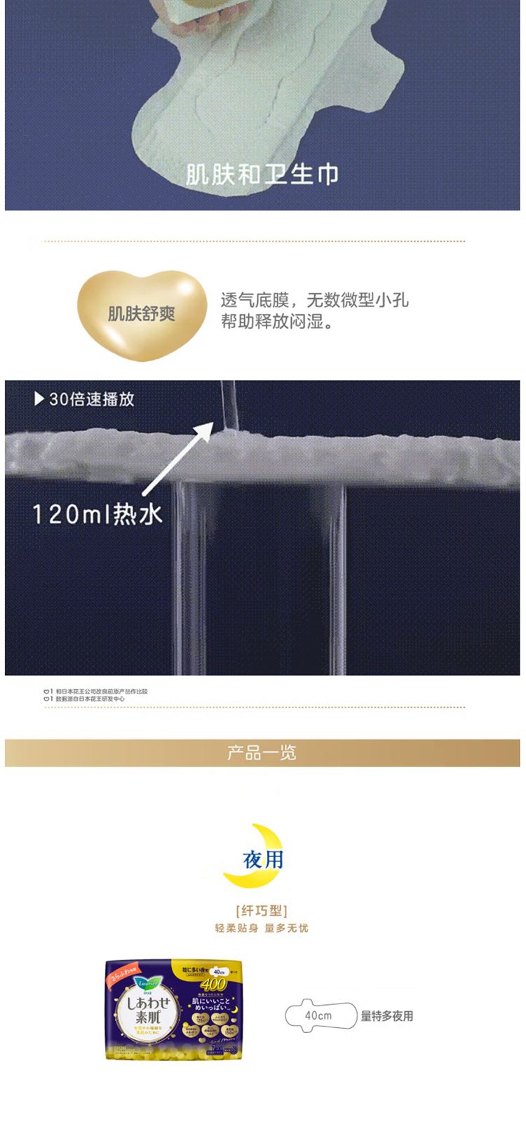 花王乐而雅(laurier)F透气棉柔纤巧超长量特多夜用卫生巾40cm 7片(日本原装进口)*2