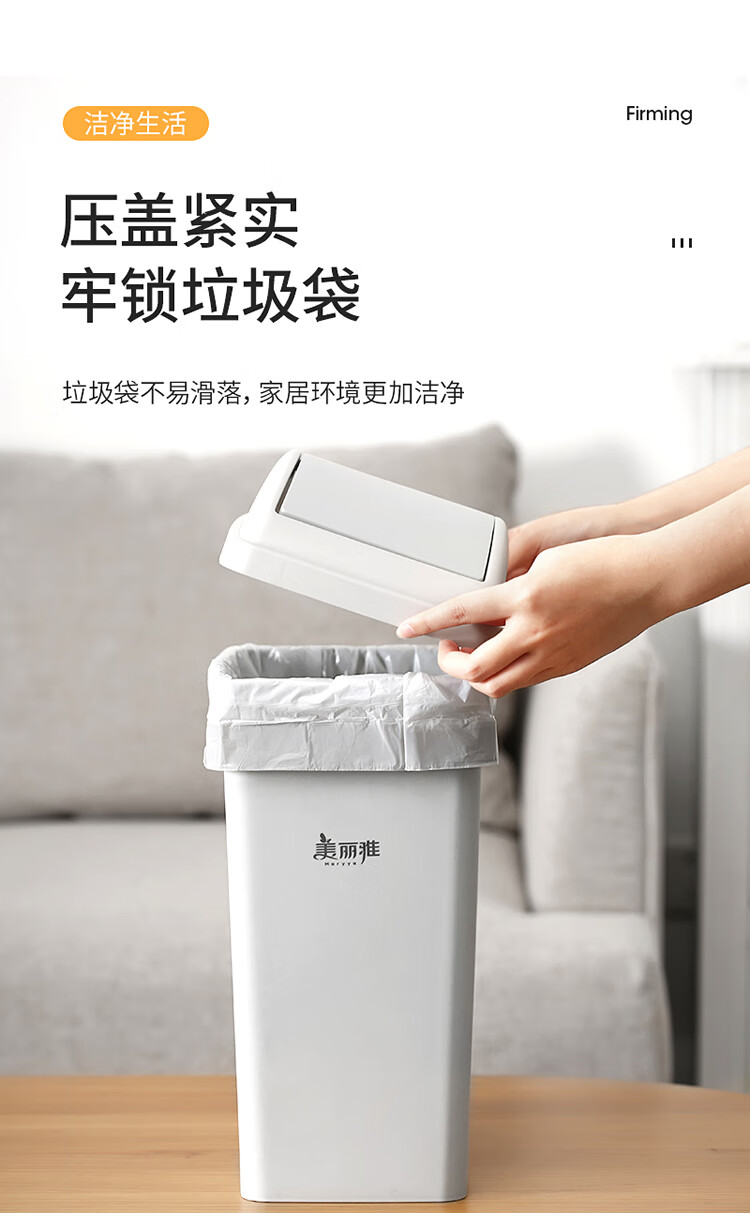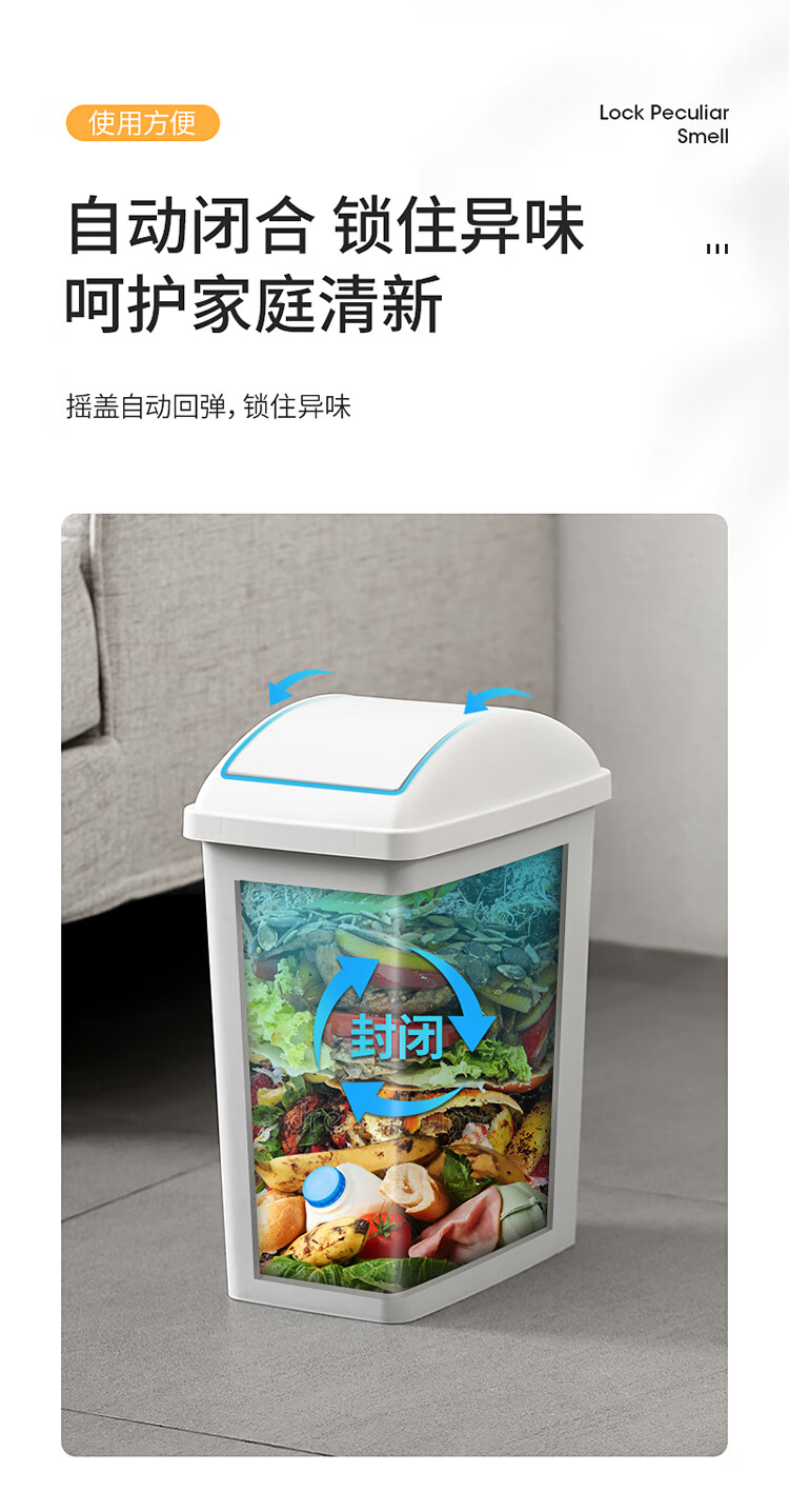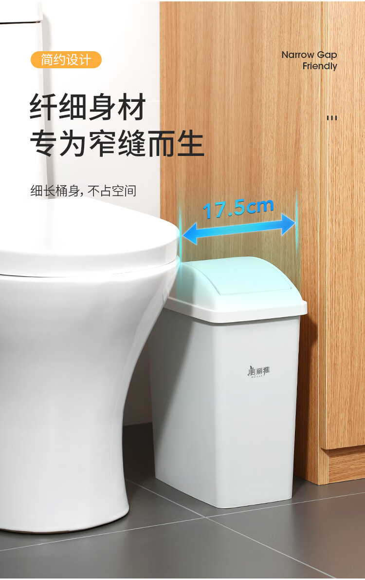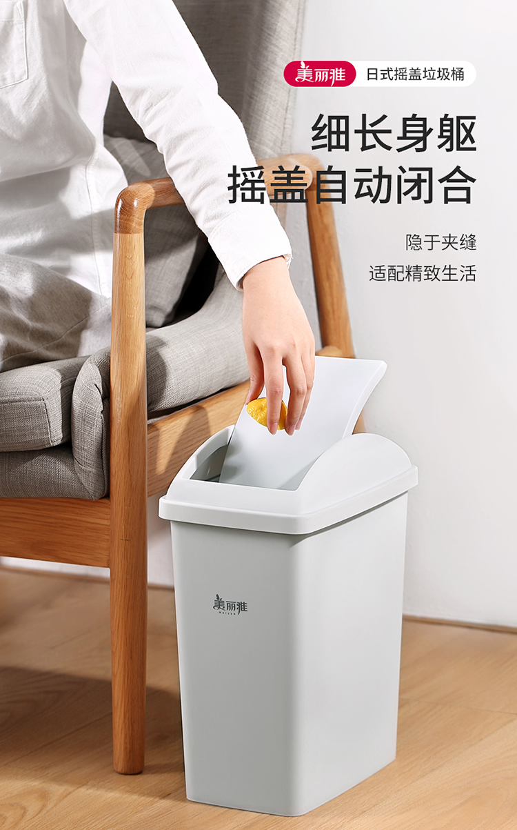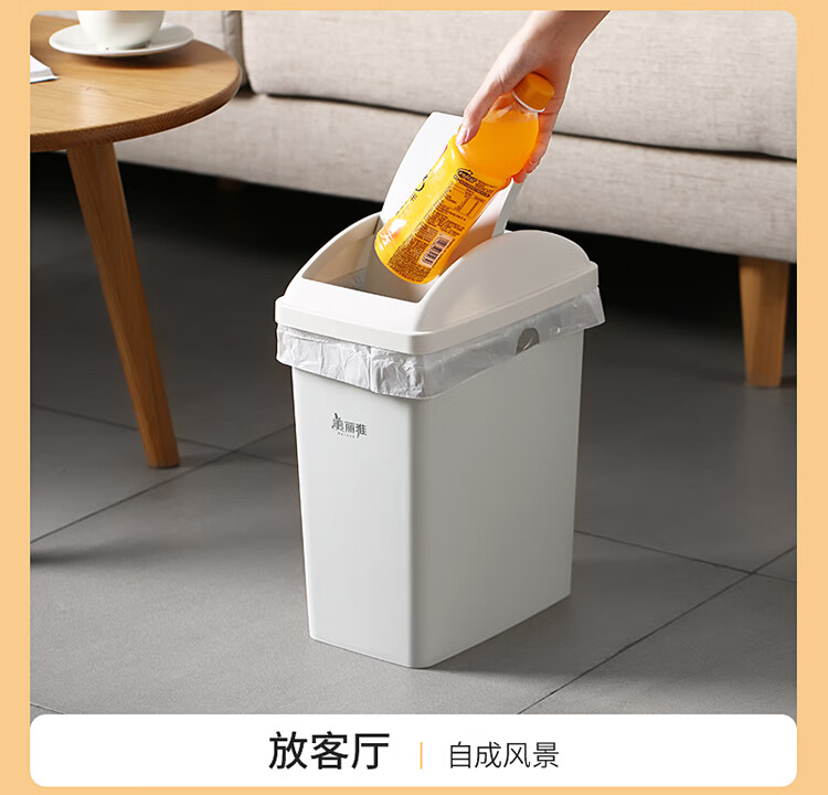 美丽雅垃圾桶带盖大号10L家用网红厨房客厅卫生间厕所窄夹缝摇盖垃圾桶 100012740277
