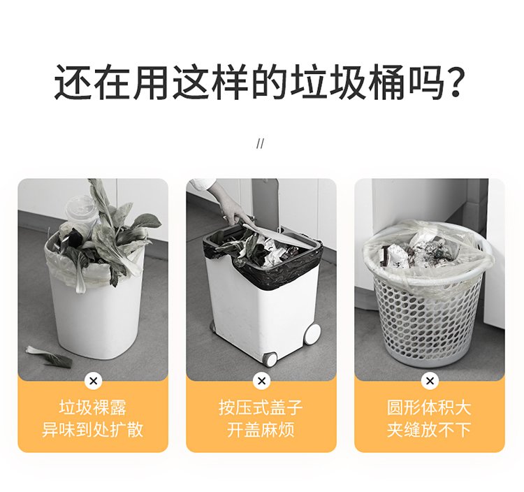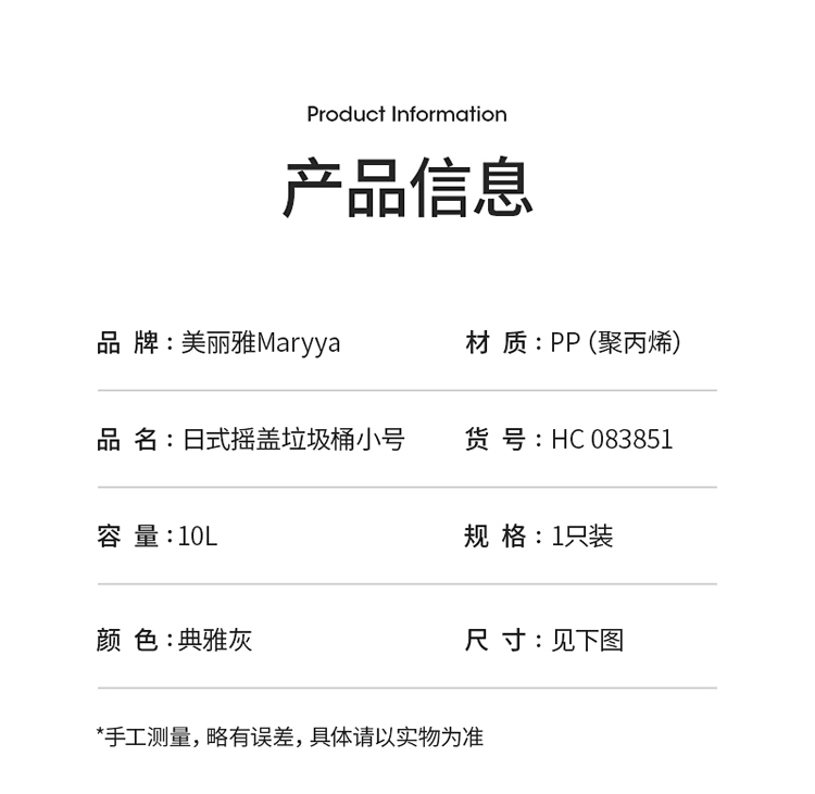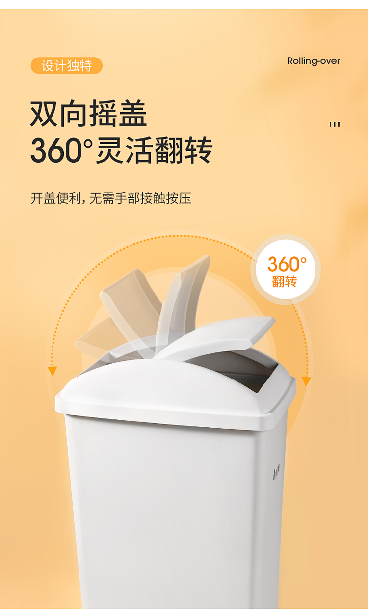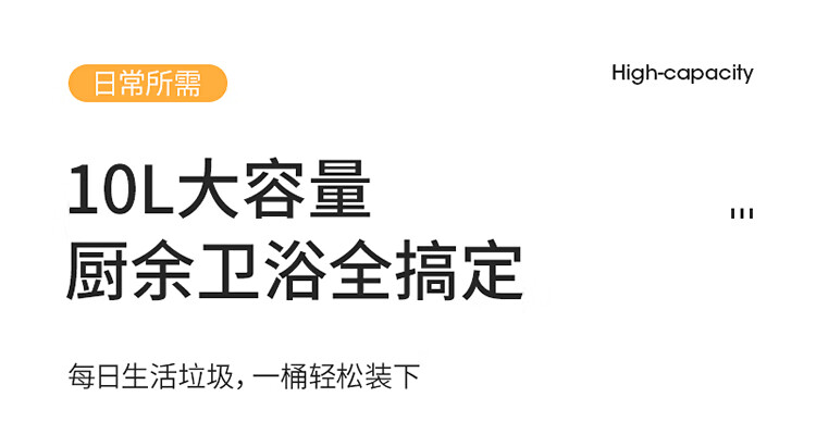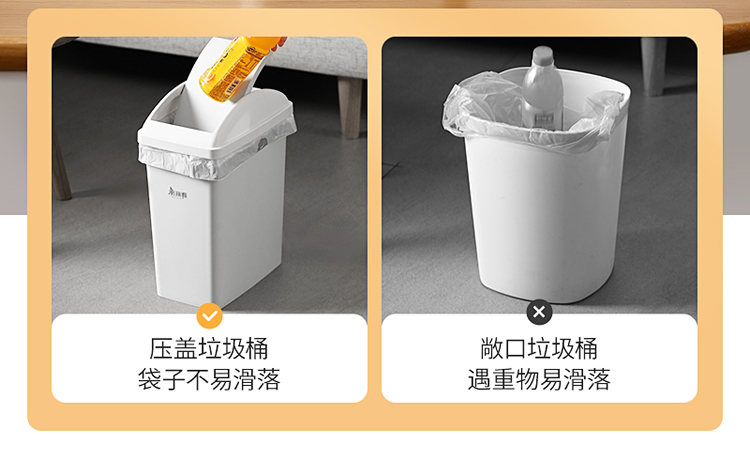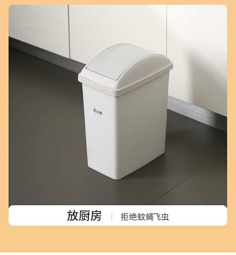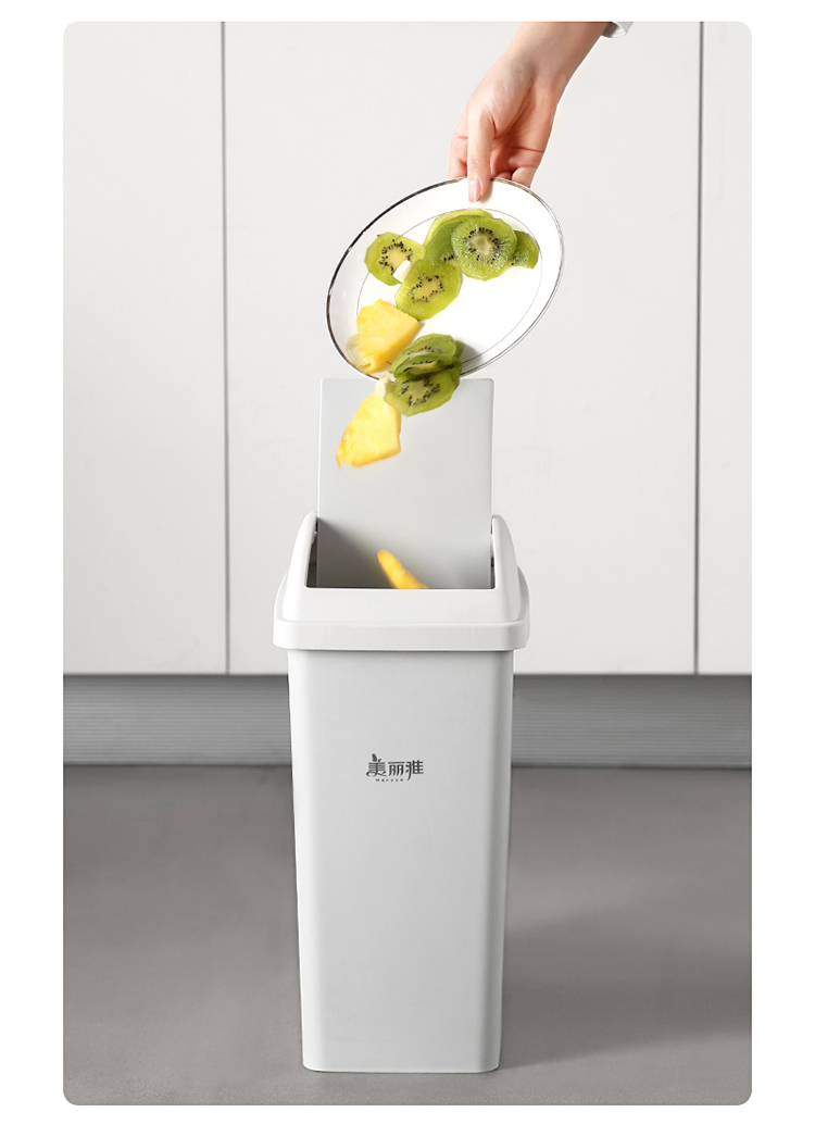 美丽雅垃圾桶带盖大号10L家用网红厨房客厅卫生间厕所窄夹缝摇盖垃圾桶 100012740277