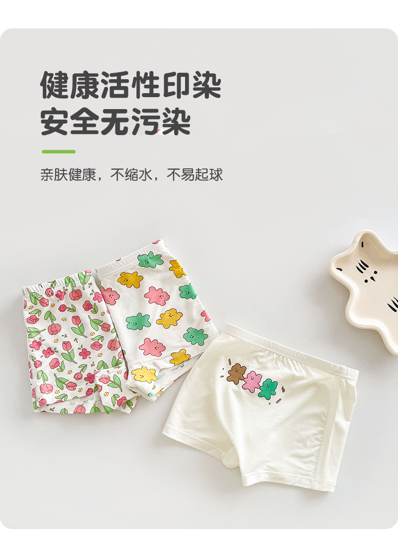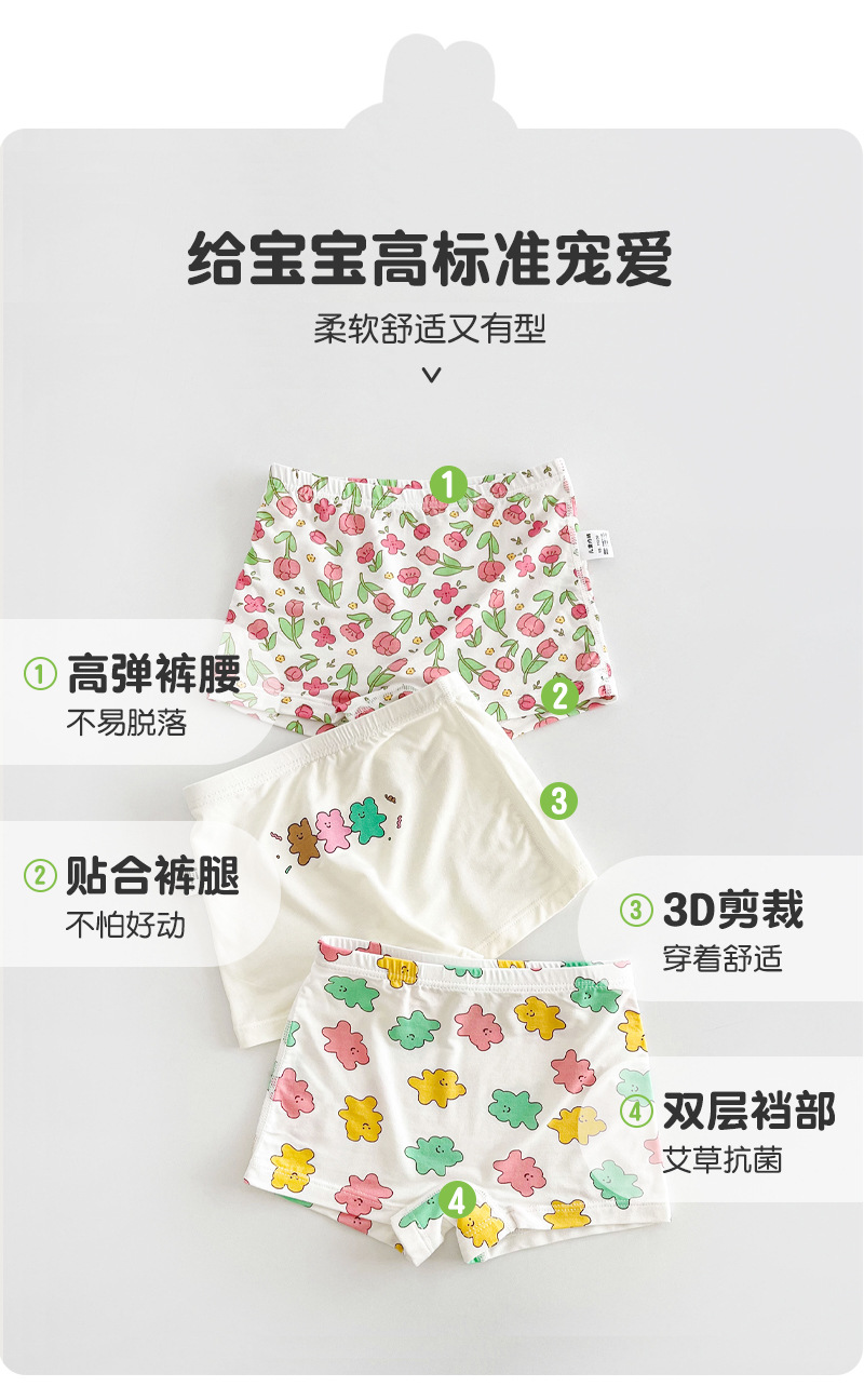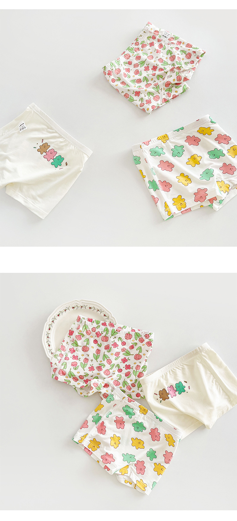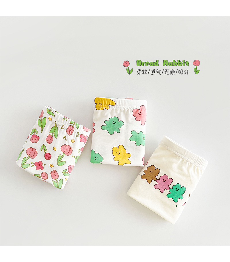 【39/组】面包兔 A类3条盒装莫代尔儿童内裤 新款卡通小花女童平角四角短裤聚