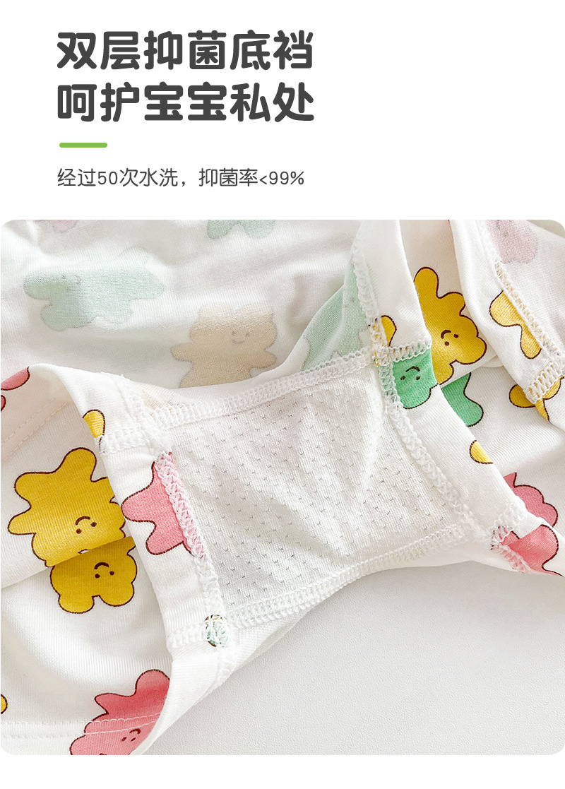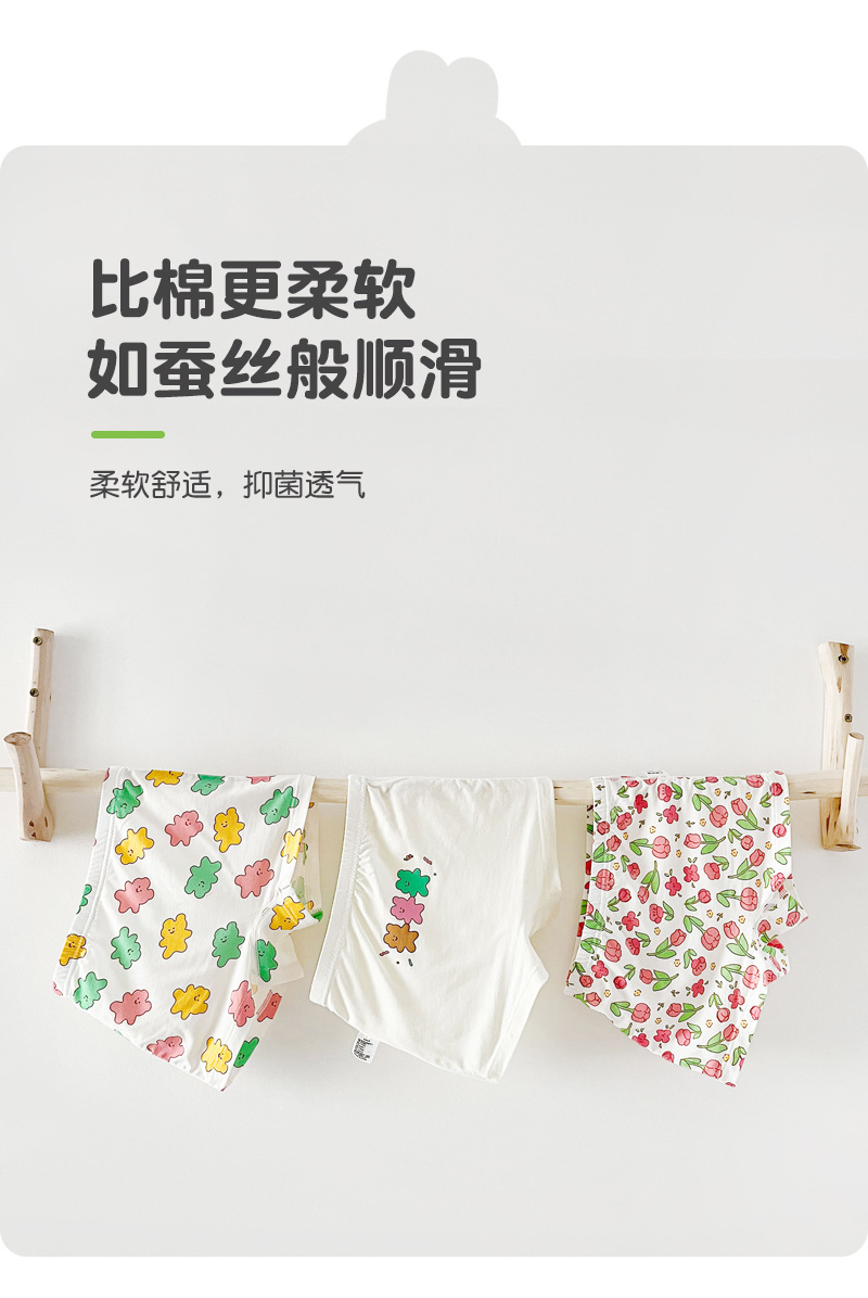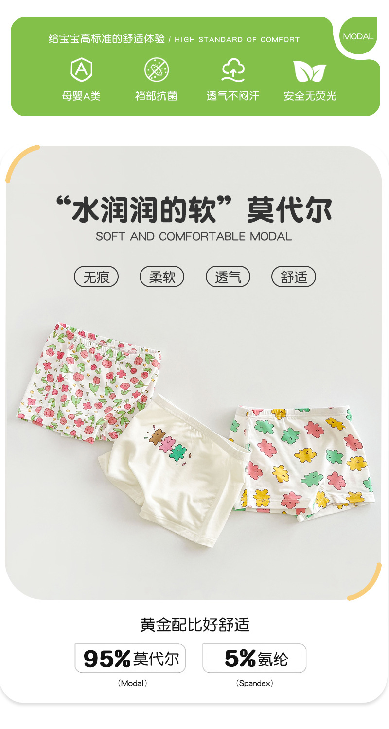 【39/组】面包兔 A类3条盒装莫代尔儿童内裤 新款卡通小花女童平角四角短裤聚