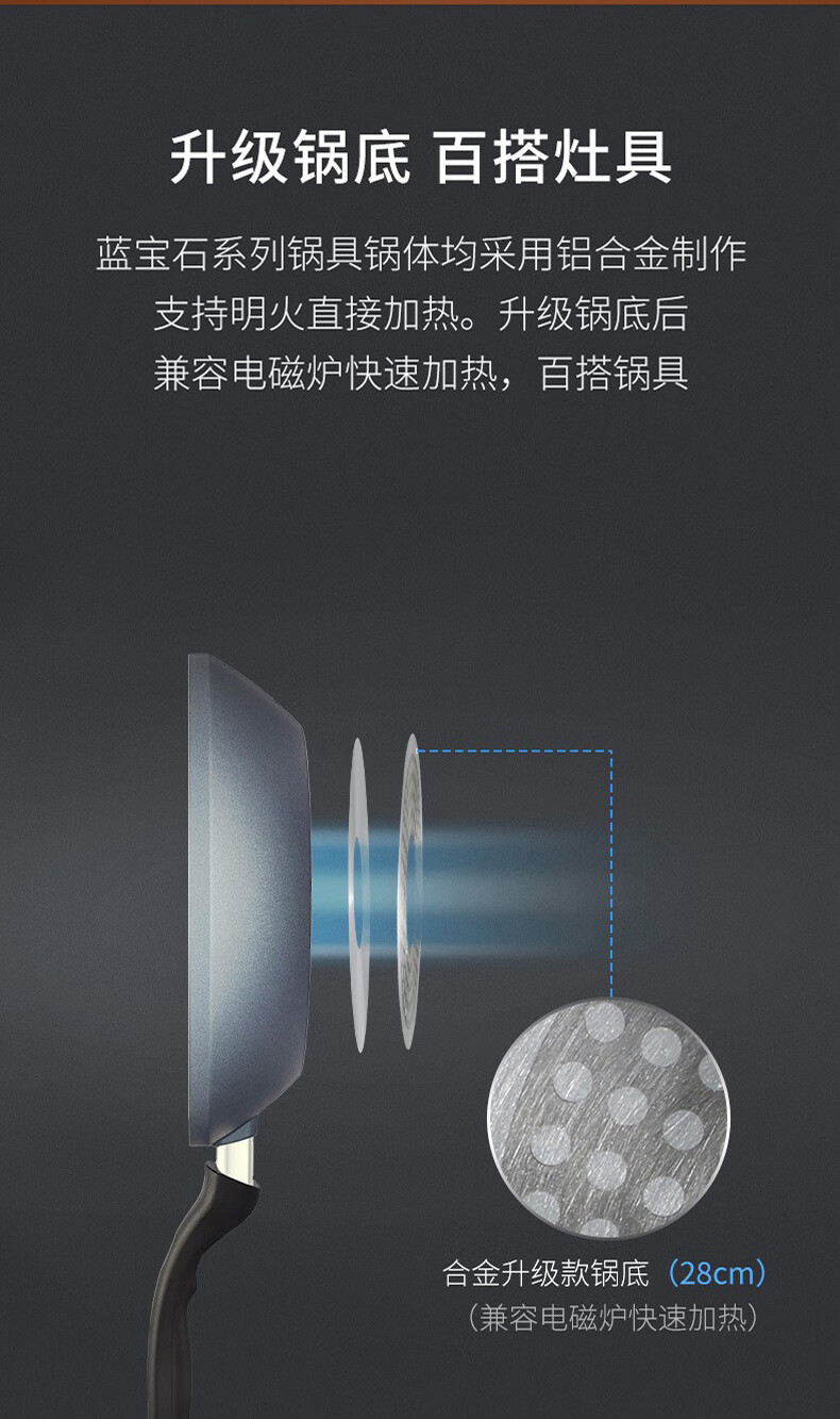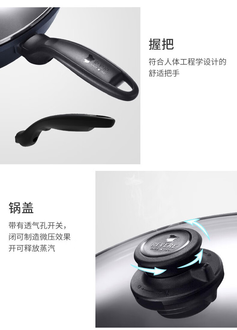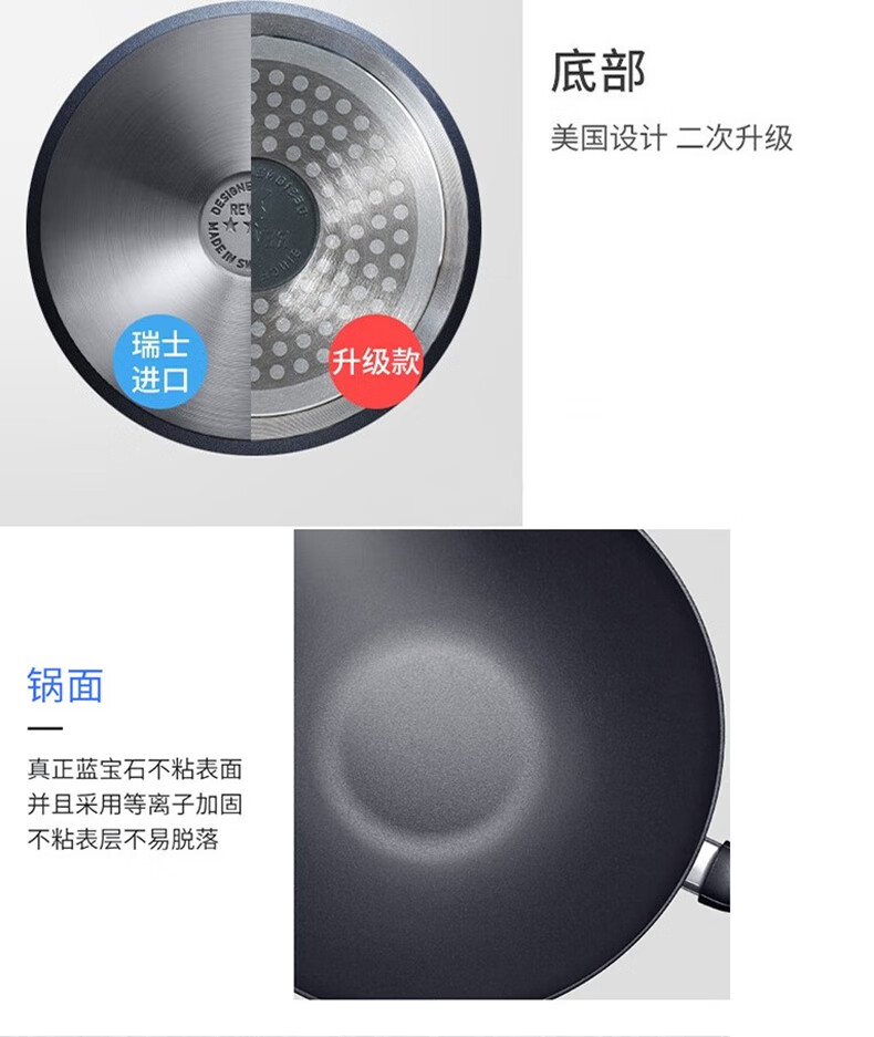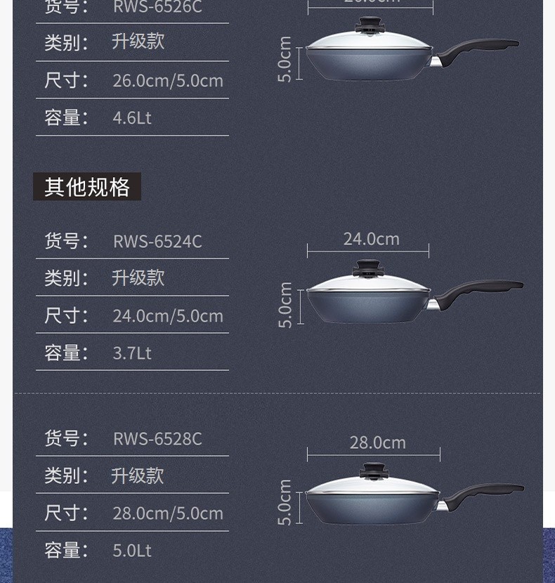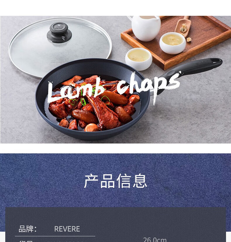 【小家电】Revere蓝宝石系列锅具蓝宝石带盖不粘锅煎炒锅中华煎炒锅24cm RWS-6524C/YK HF