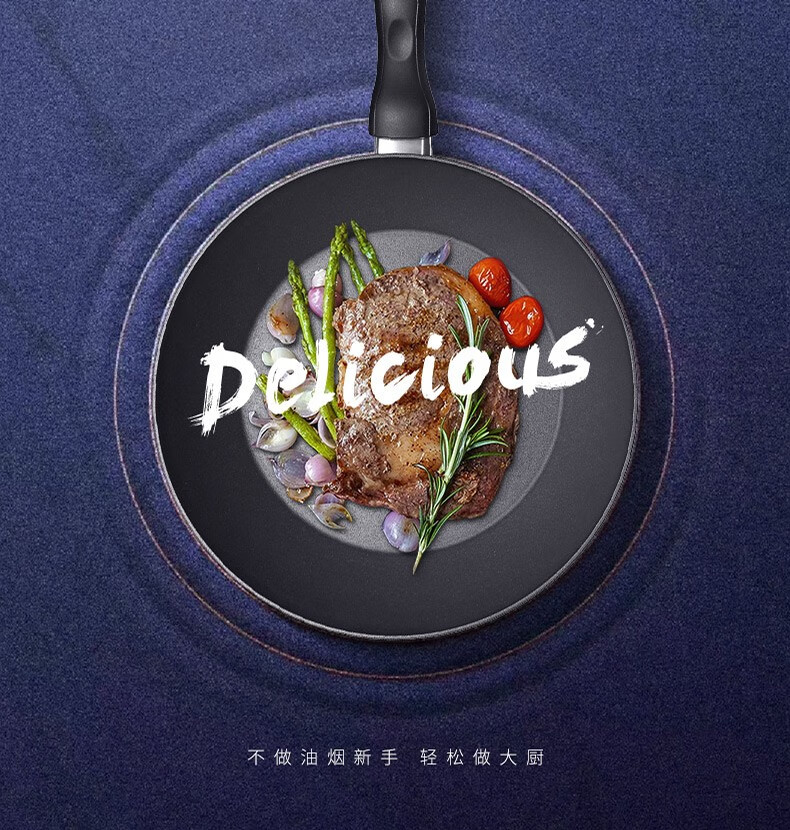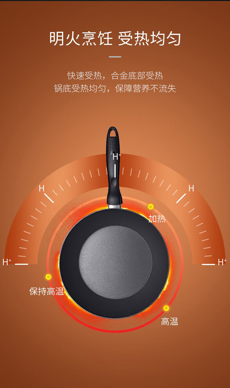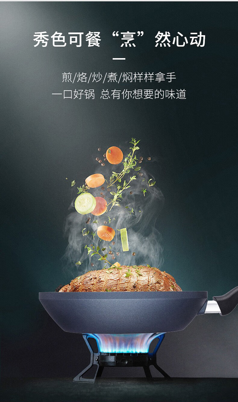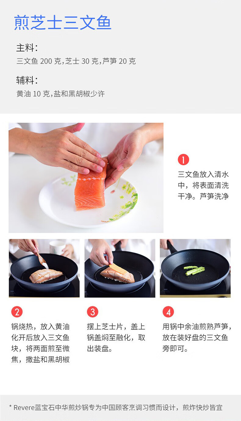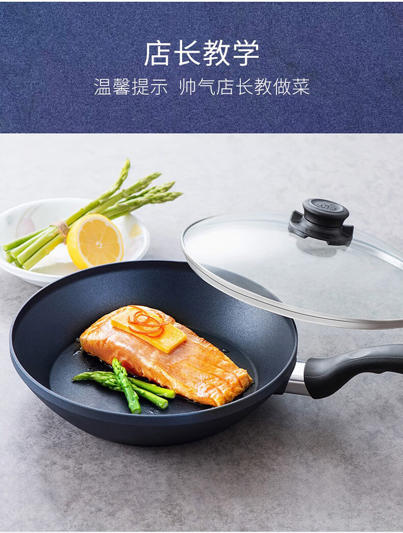 【小家电】Revere蓝宝石系列锅具蓝宝石带盖不粘锅煎炒锅中华煎炒锅24cm RWS-6524C/YK HF