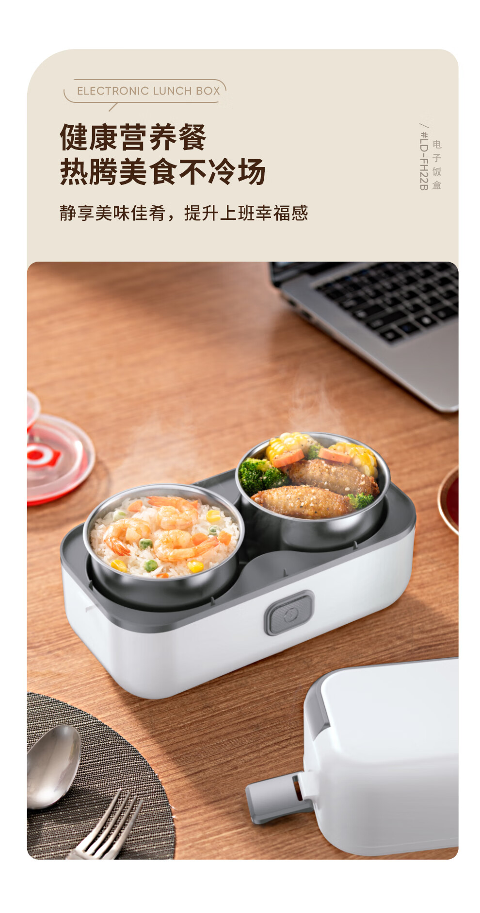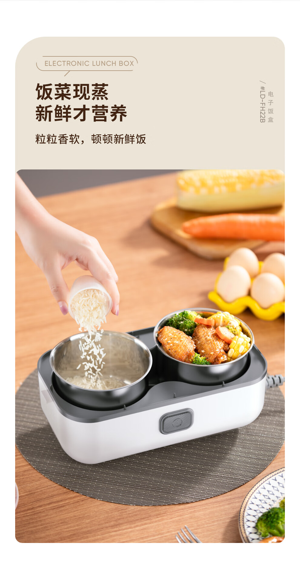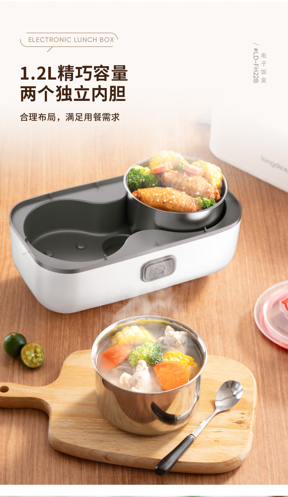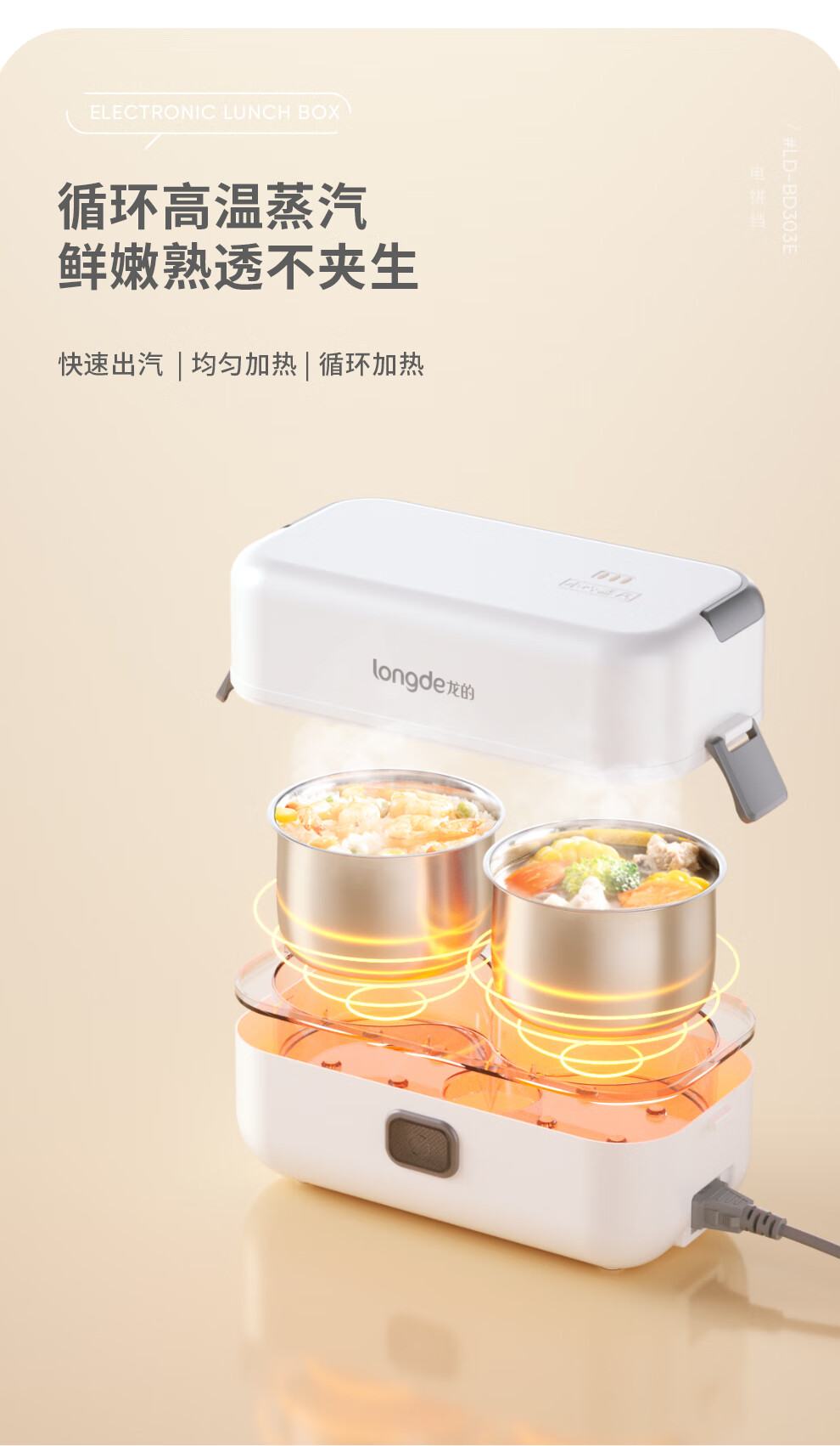 【小家电】龙的longde电热饭盒304不锈钢加热饭盒便携式办公室热饭神器一机双胆便当盒 LD-FH22B HF