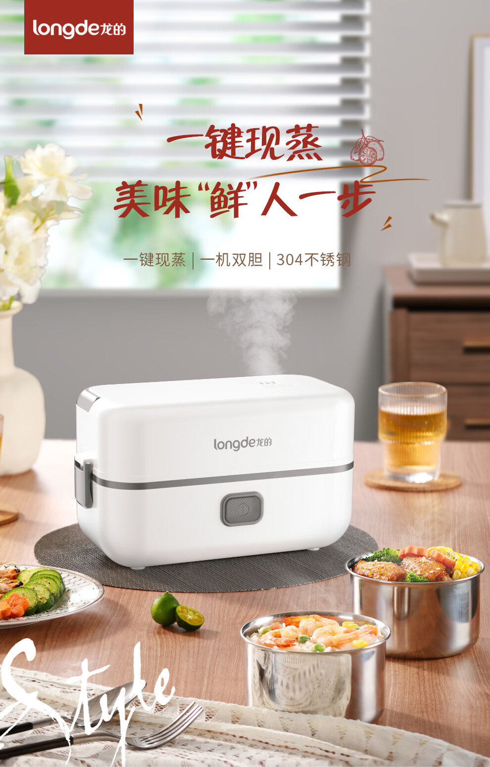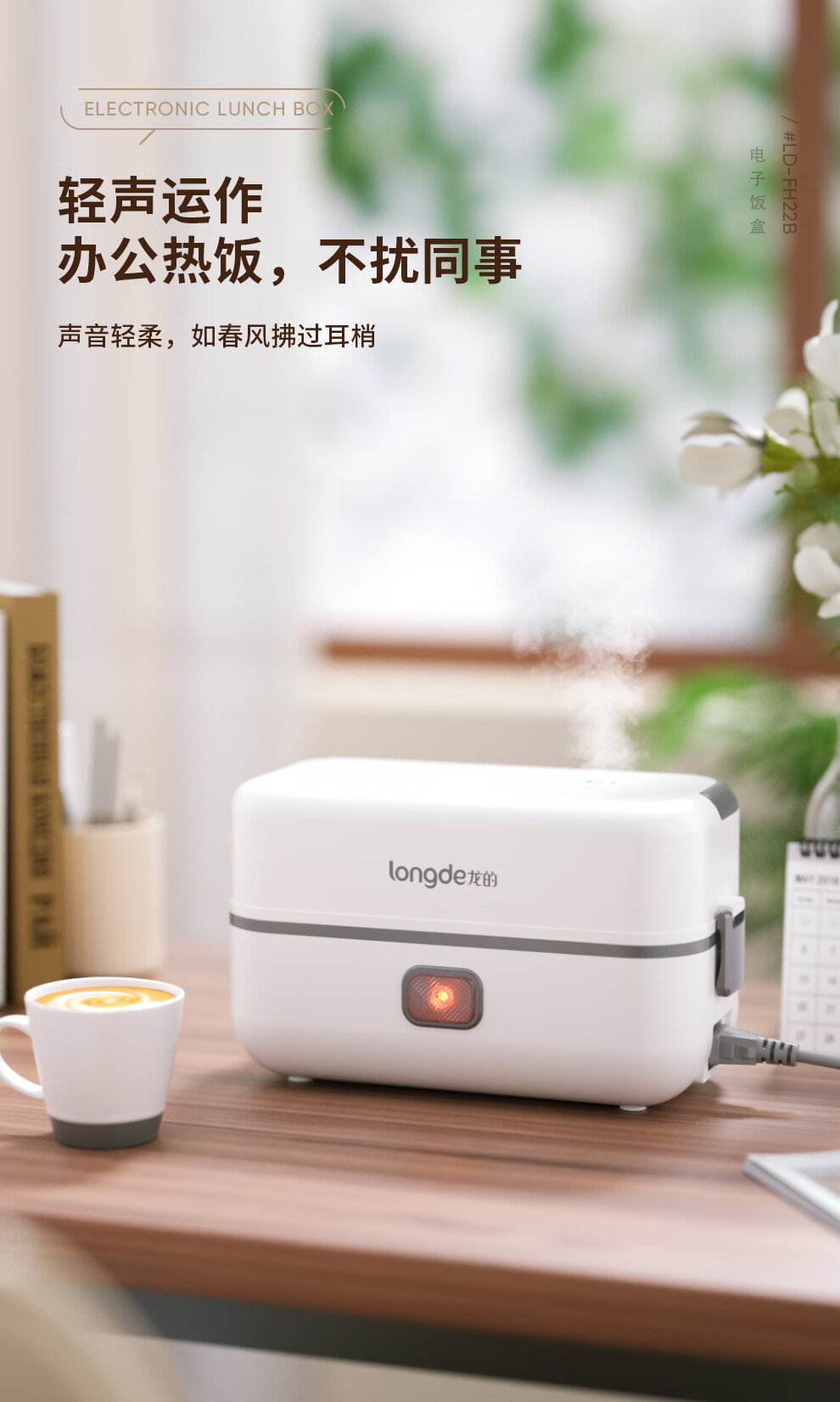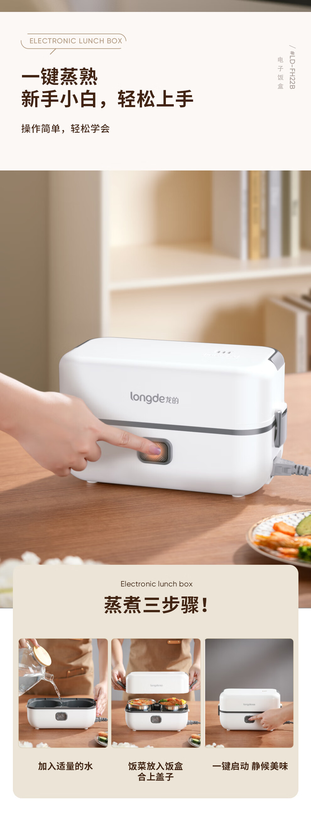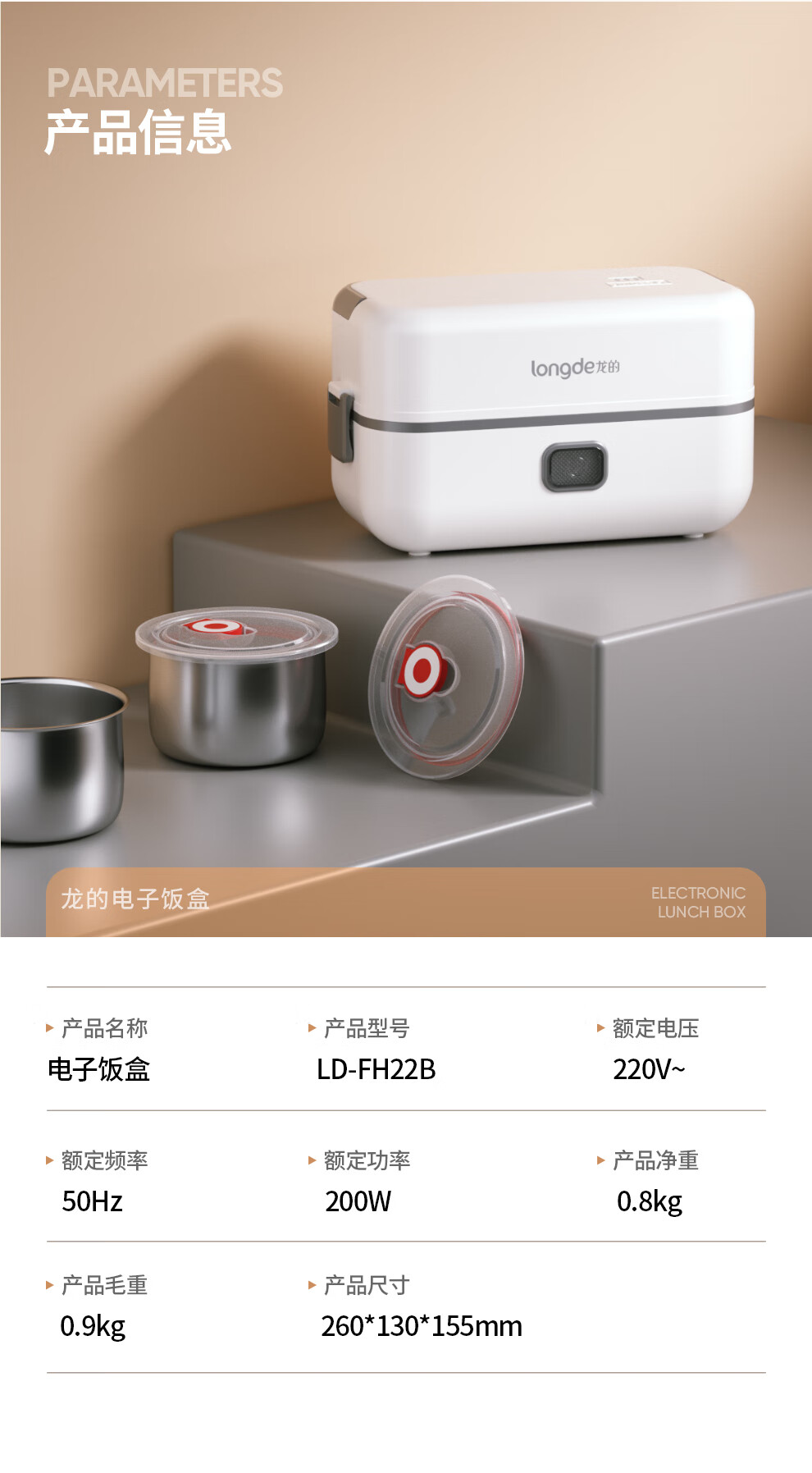 【小家电】龙的longde电热饭盒304不锈钢加热饭盒便携式办公室热饭神器一机双胆便当盒 LD-FH22B HF