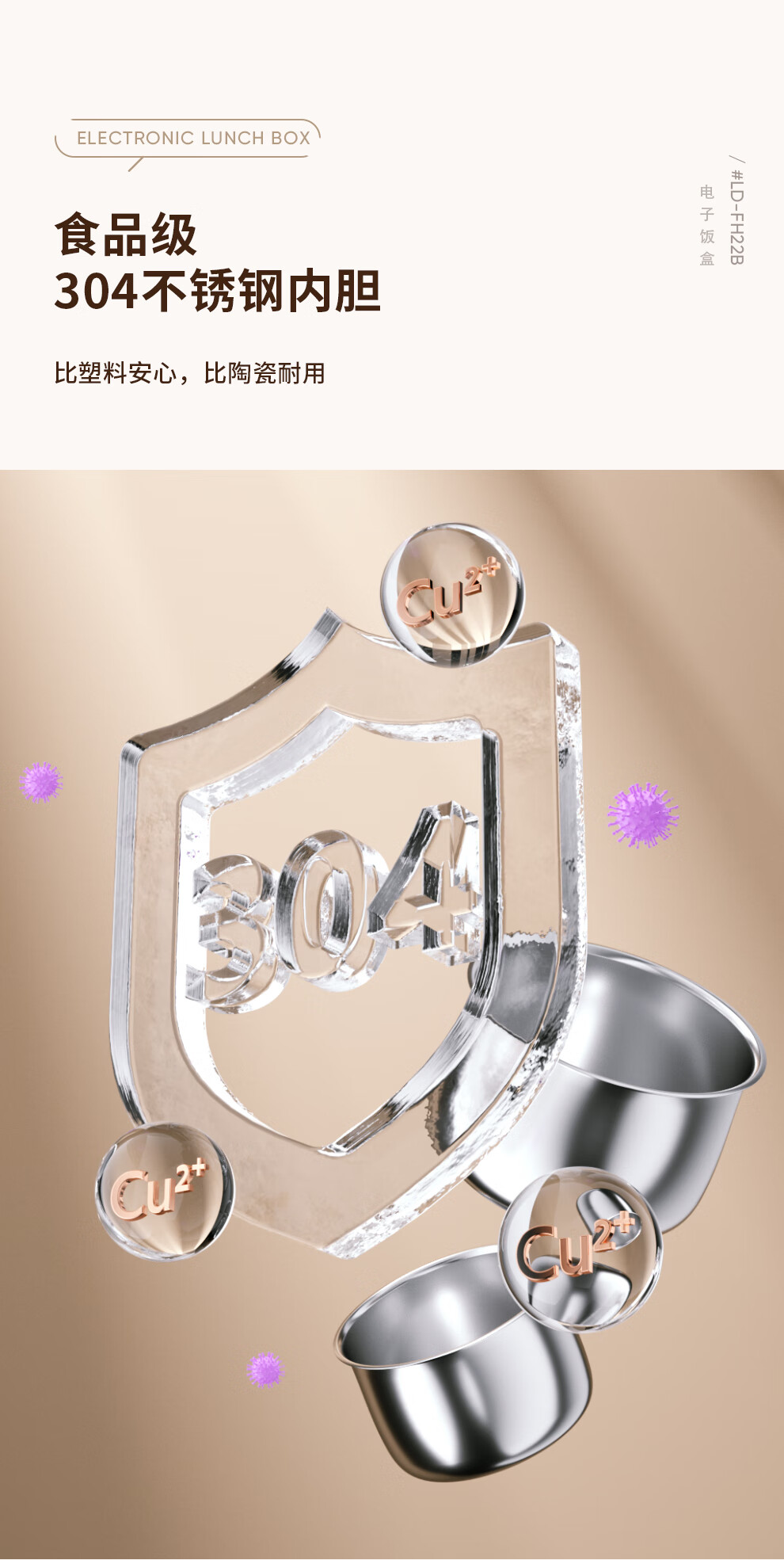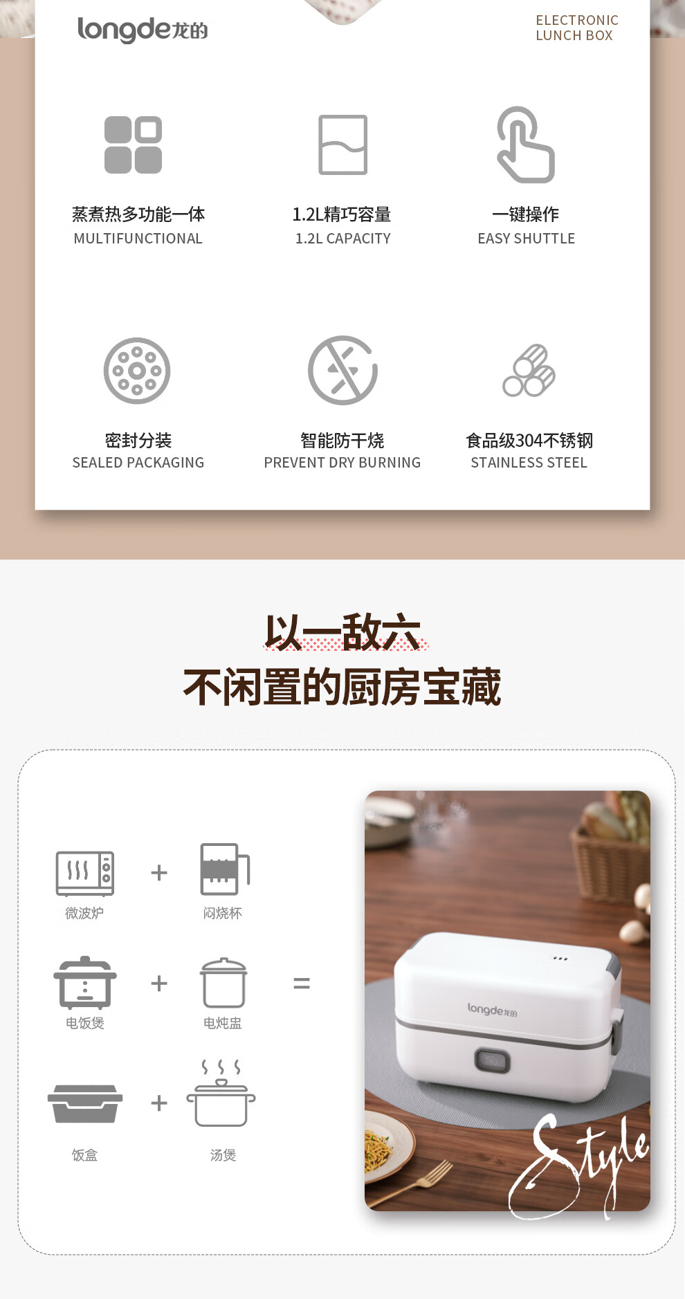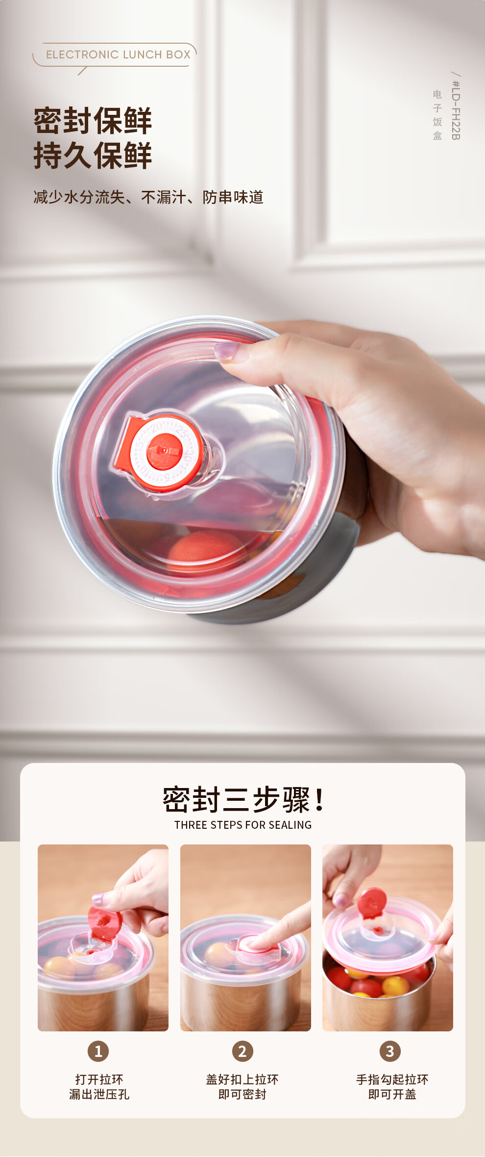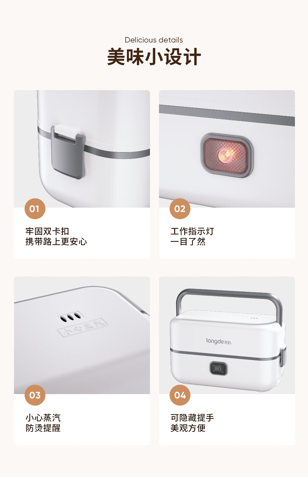 【小家电】龙的longde电热饭盒304不锈钢加热饭盒便携式办公室热饭神器一机双胆便当盒 LD-FH22B HF