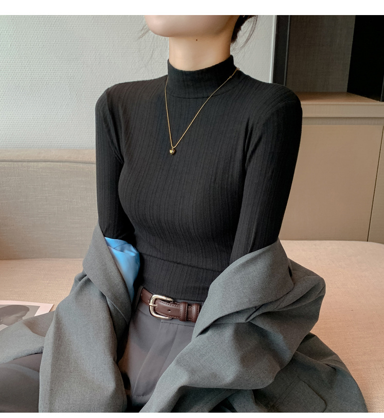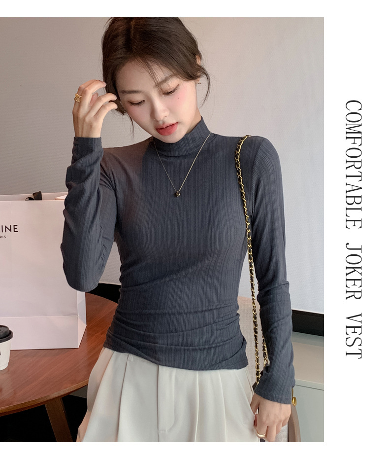 新品上市春秋衣薄款内搭上衣半高领秋冬打底衫女款可外穿新款长袖休闲简约