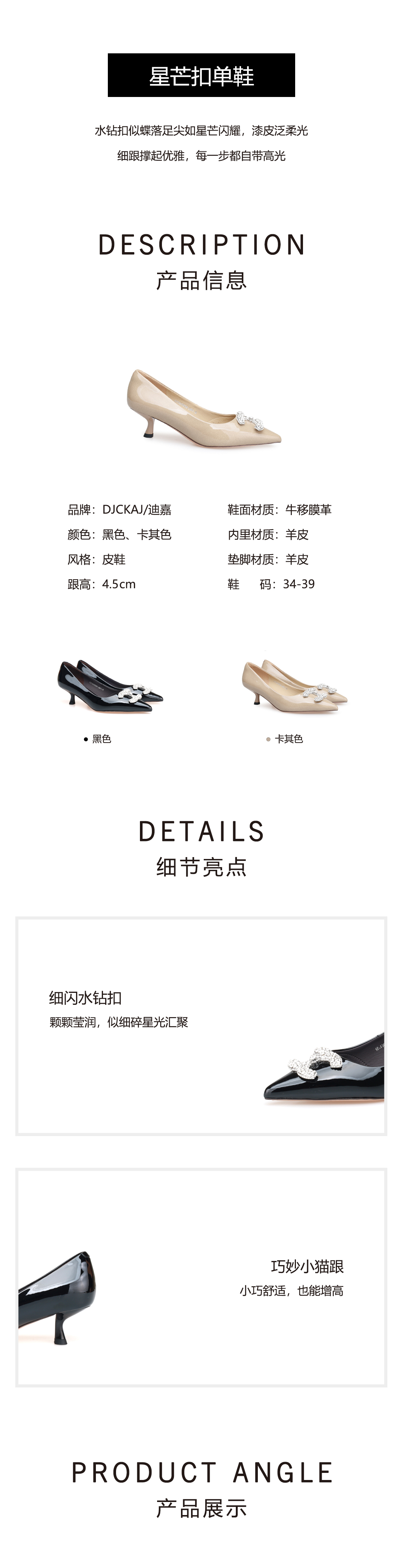 豪麟名鞋迪嘉女鞋皮鞋牛移膜革DJYYA52WP008黑色