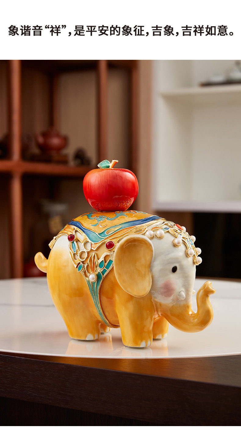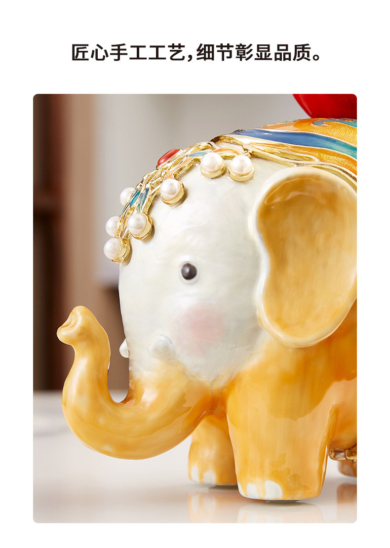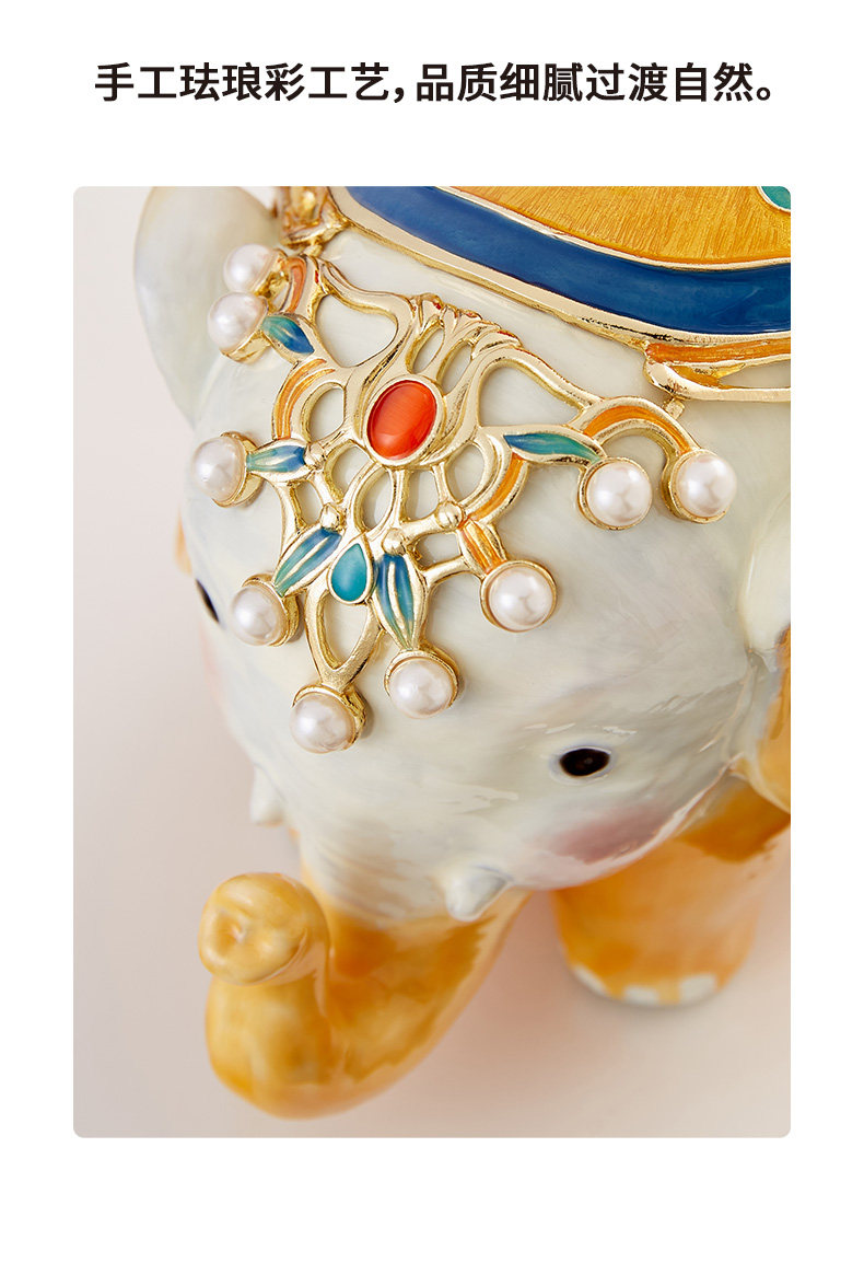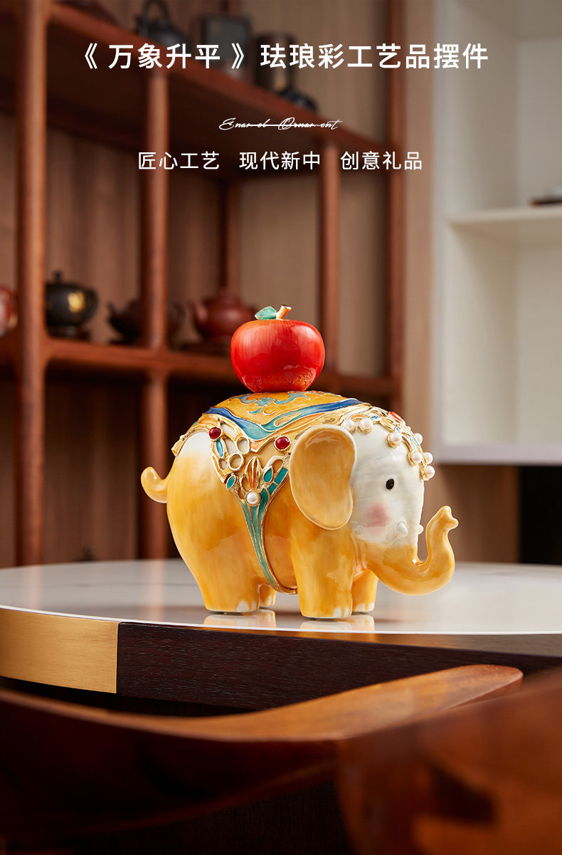 罗比罗丹万象升平大象摆件新中式彩绘桌面珐琅彩工艺家居饰品吉象平安珐琅摆件-YHD