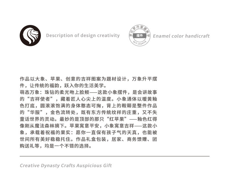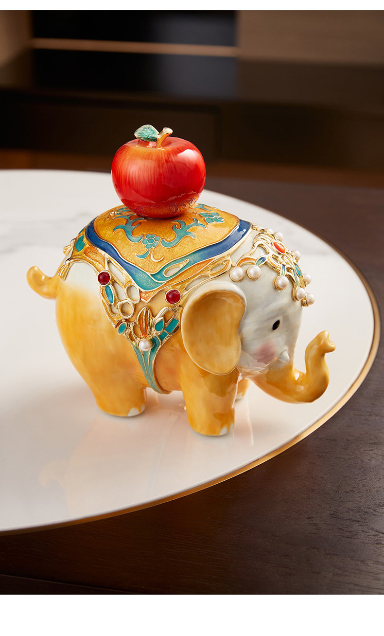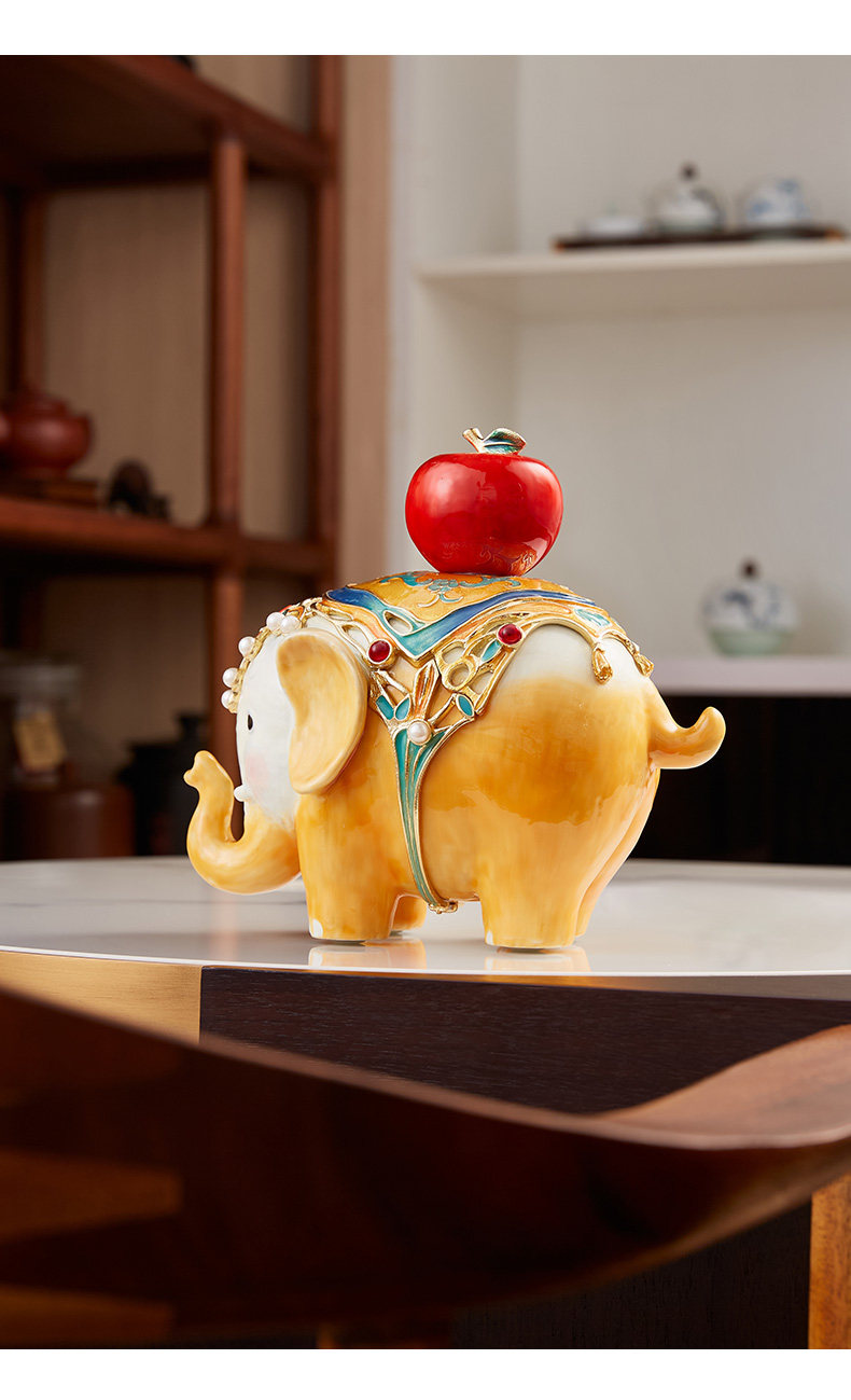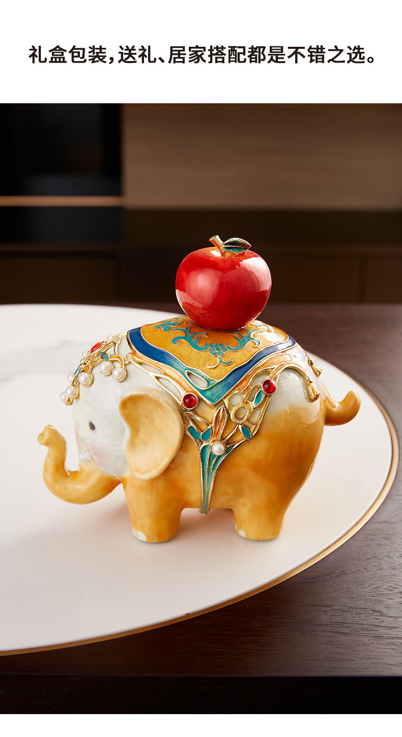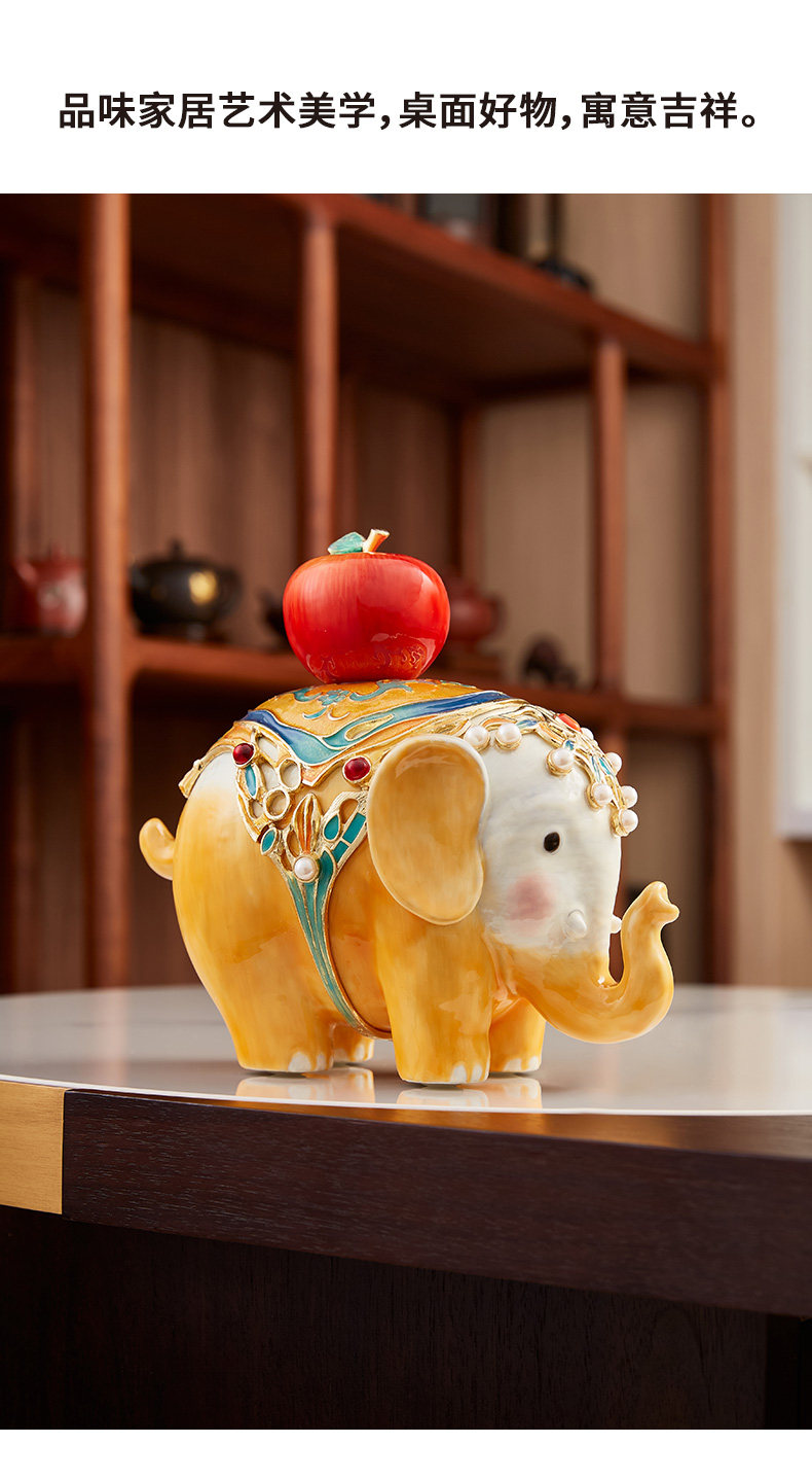 罗比罗丹万象升平大象摆件新中式彩绘桌面珐琅彩工艺家居饰品吉象平安珐琅摆件-YHD
