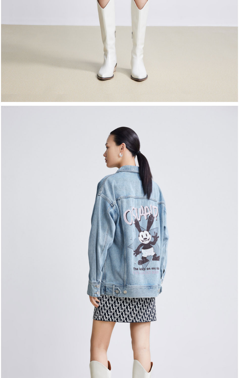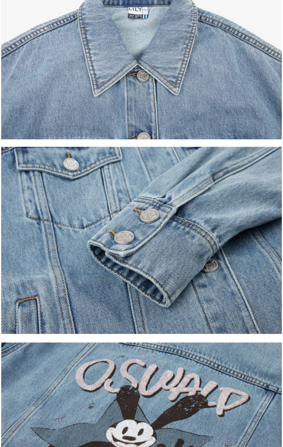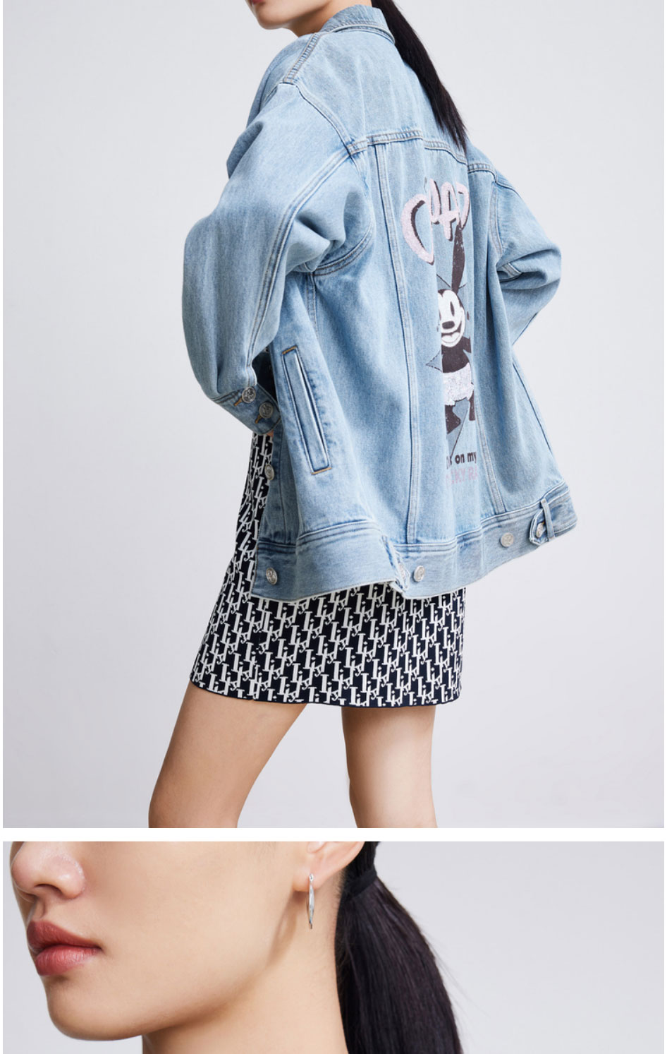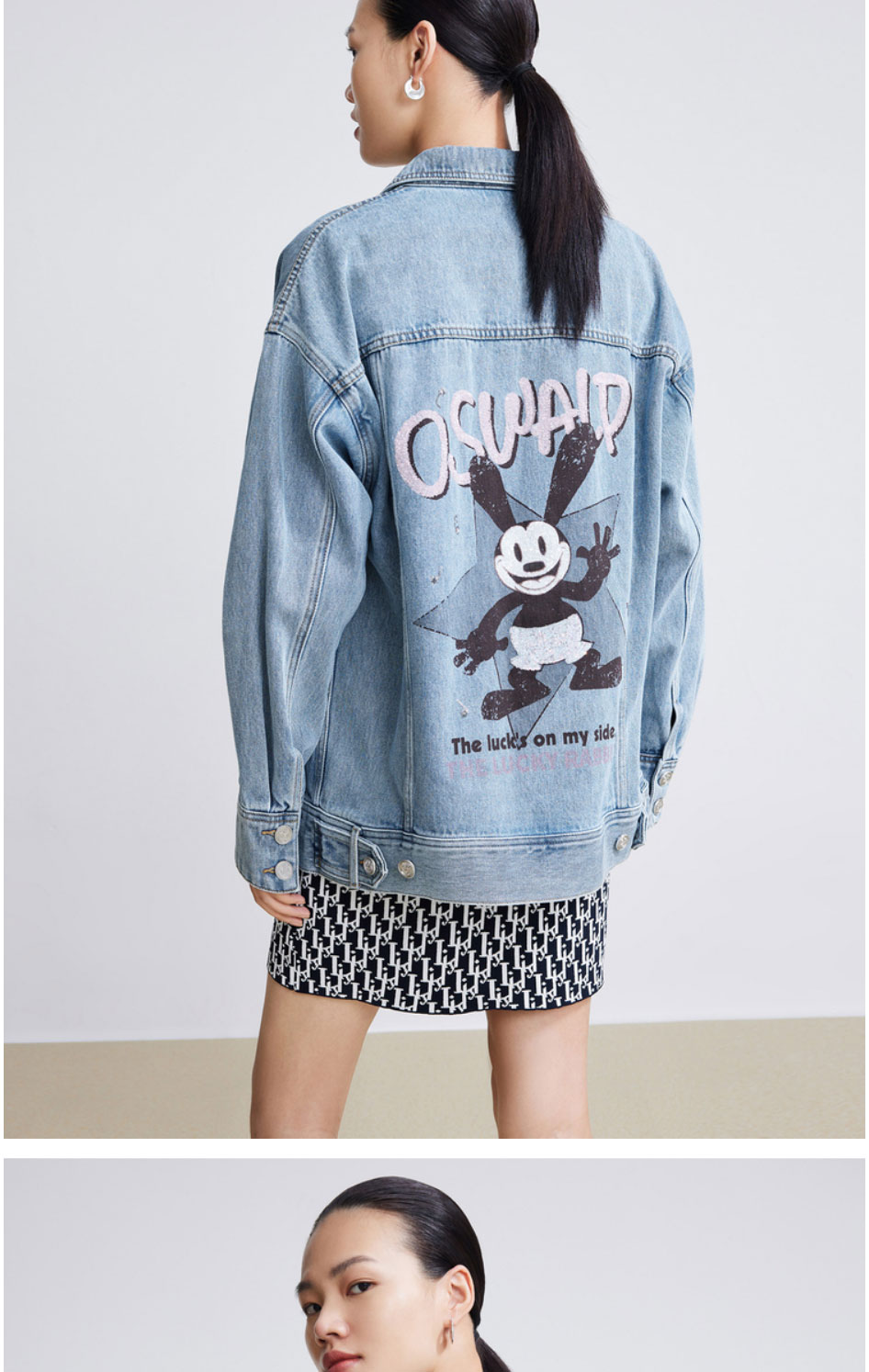 LILY迪士尼Oswald系列2022春新款女装趣味印花牛仔外套122120G3218