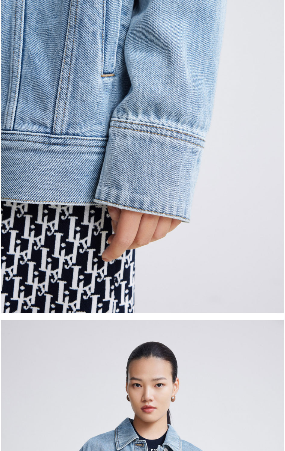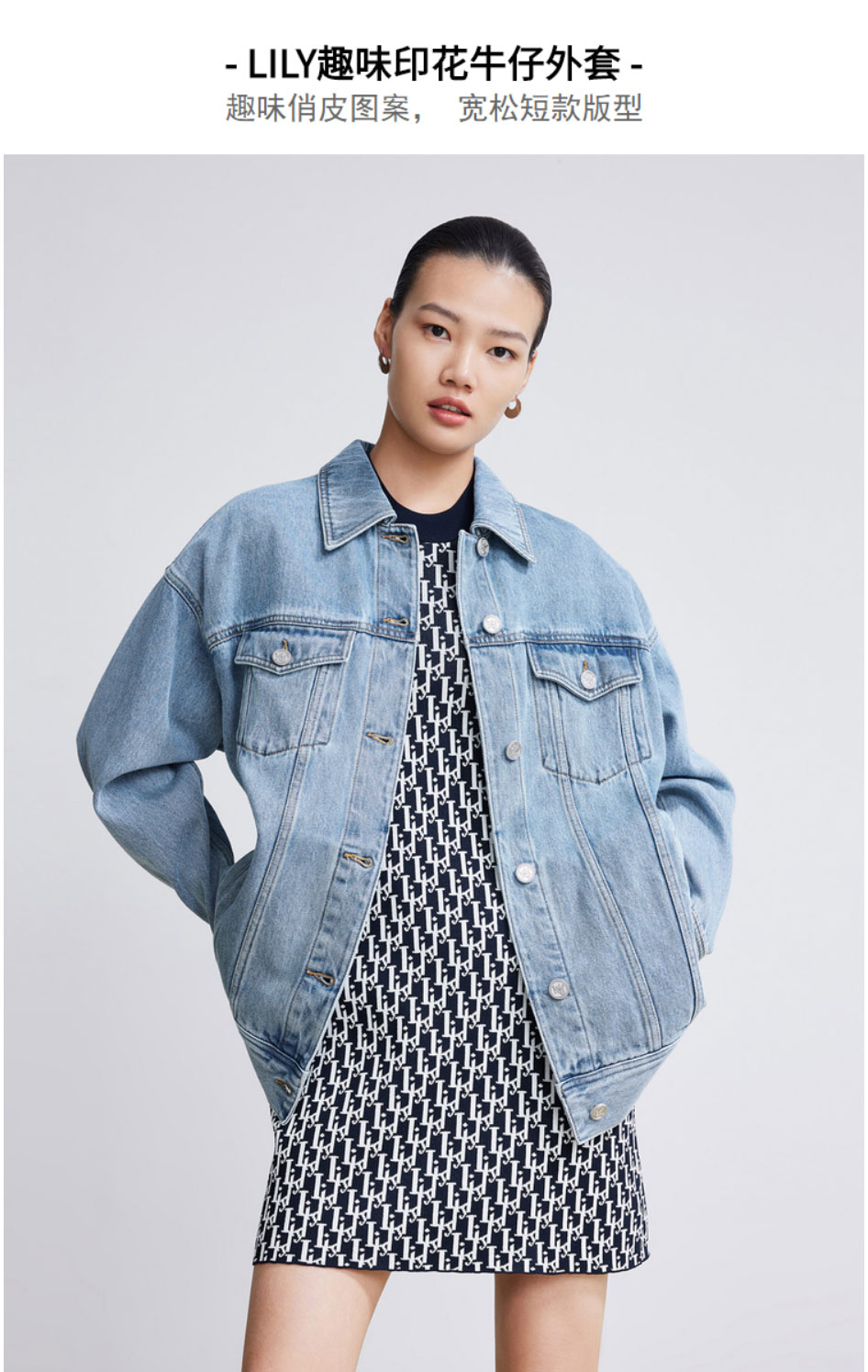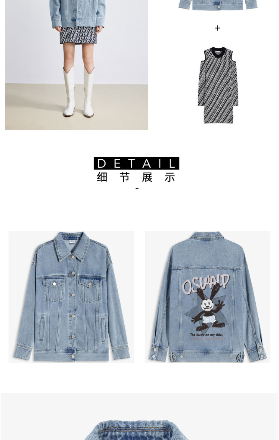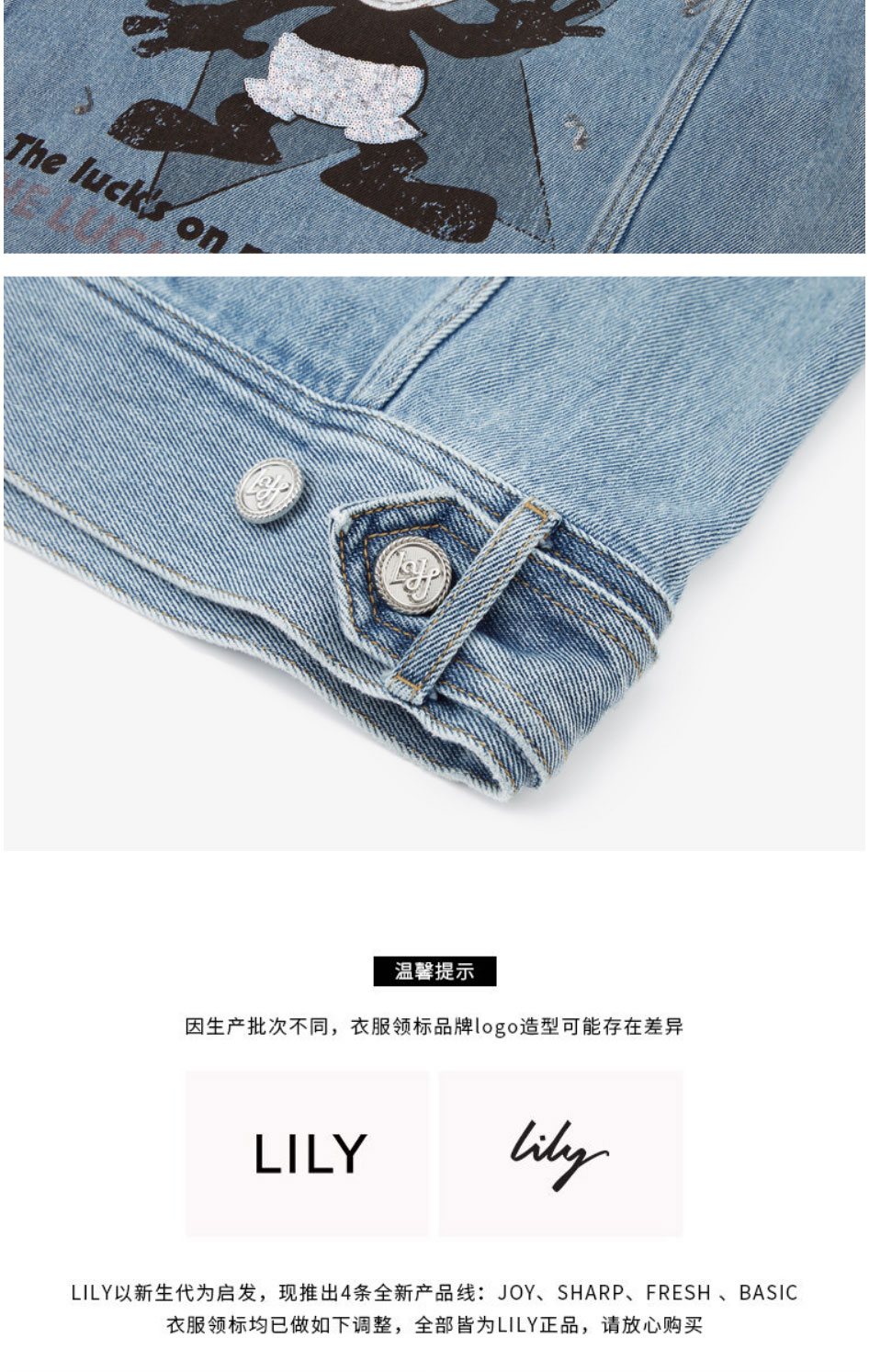 LILY迪士尼Oswald系列2022春新款女装趣味印花牛仔外套122120G3218
