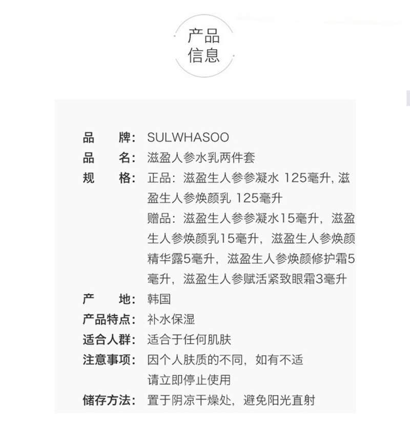 雪花秀 滋盈人参水乳套装