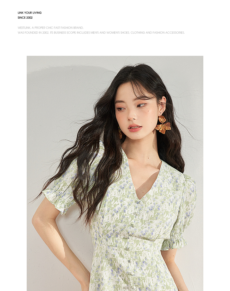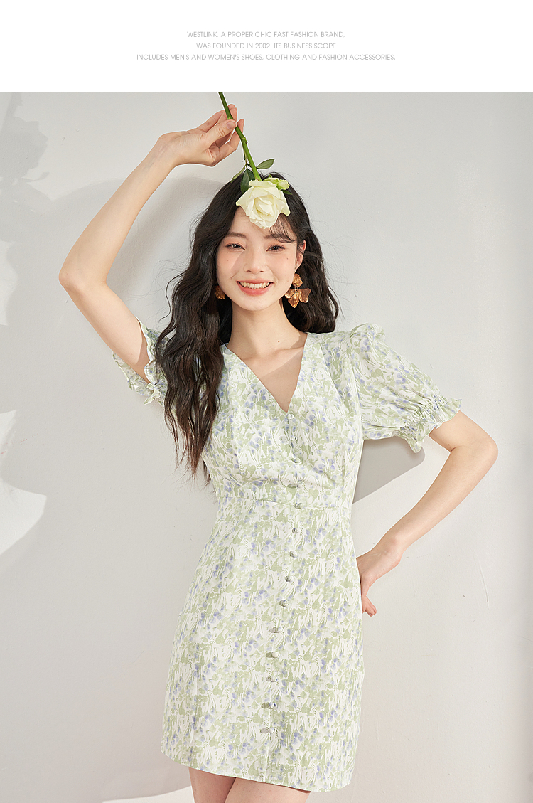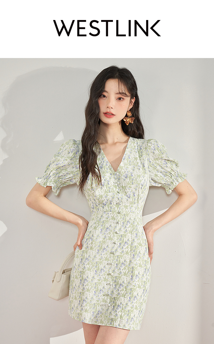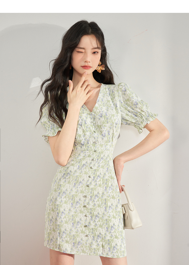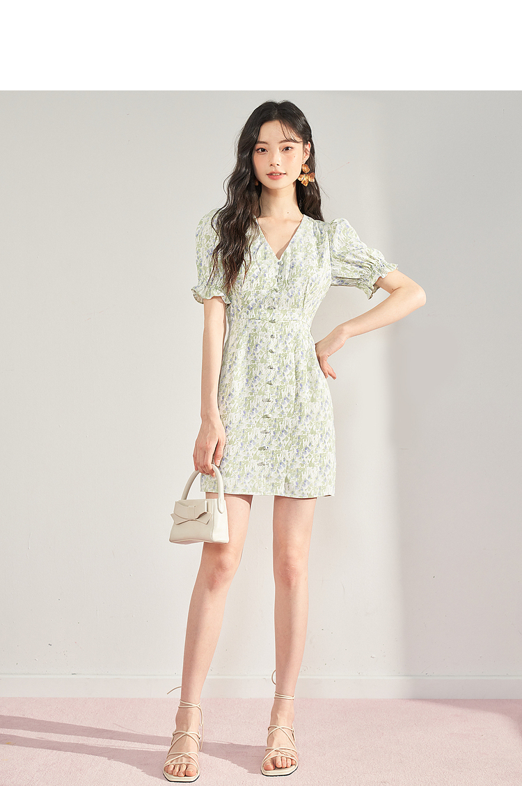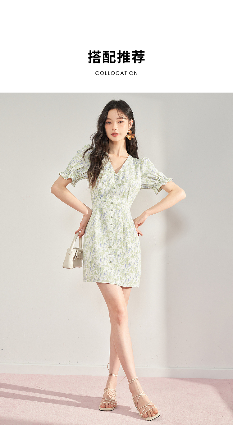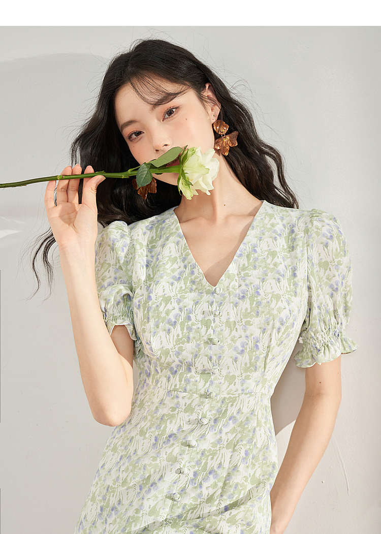 西遇法式碎花连衣裙女夏季新款气质收腰显瘦高级感茶歇裙10930934