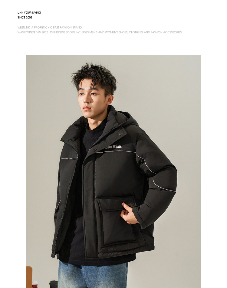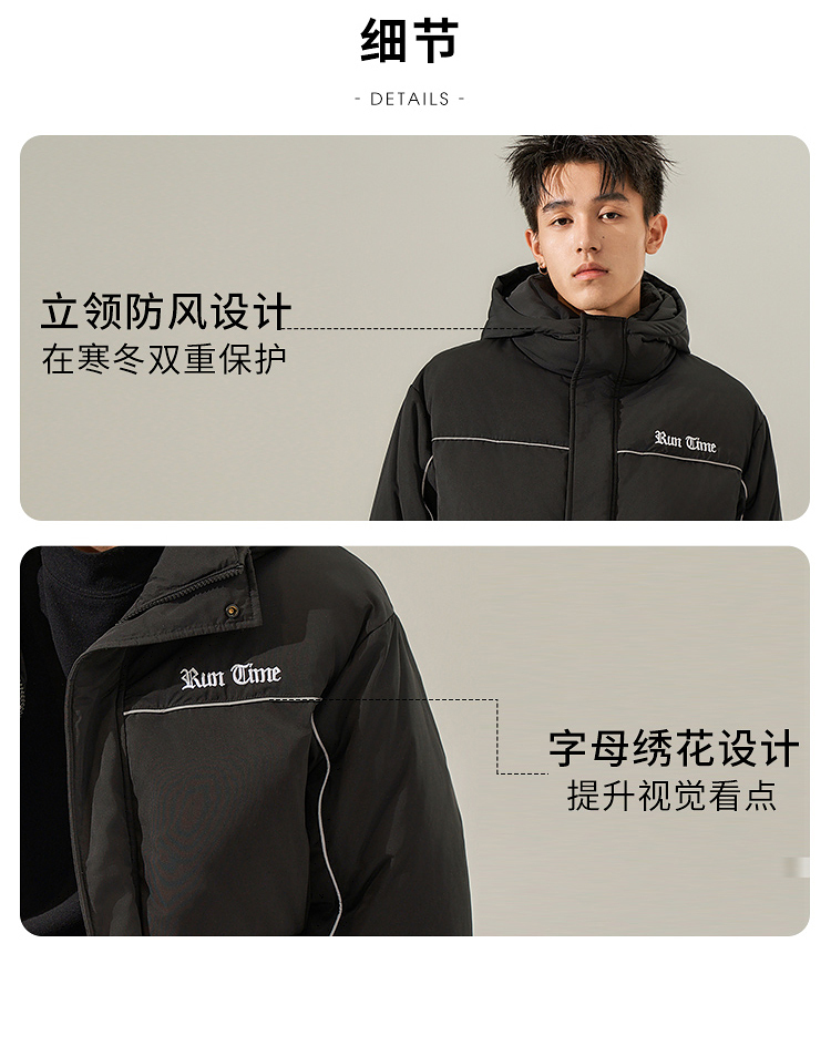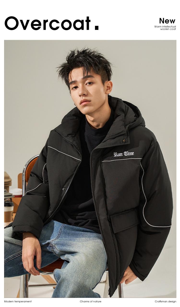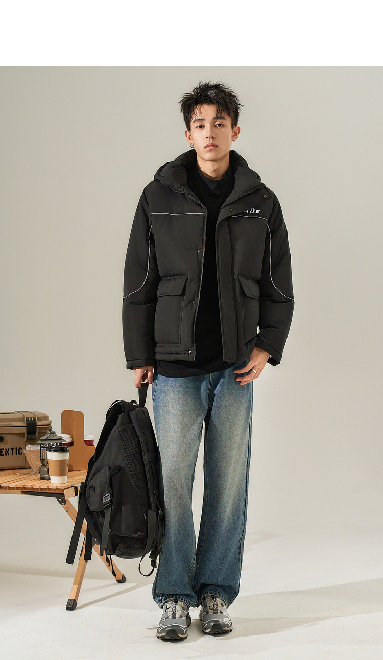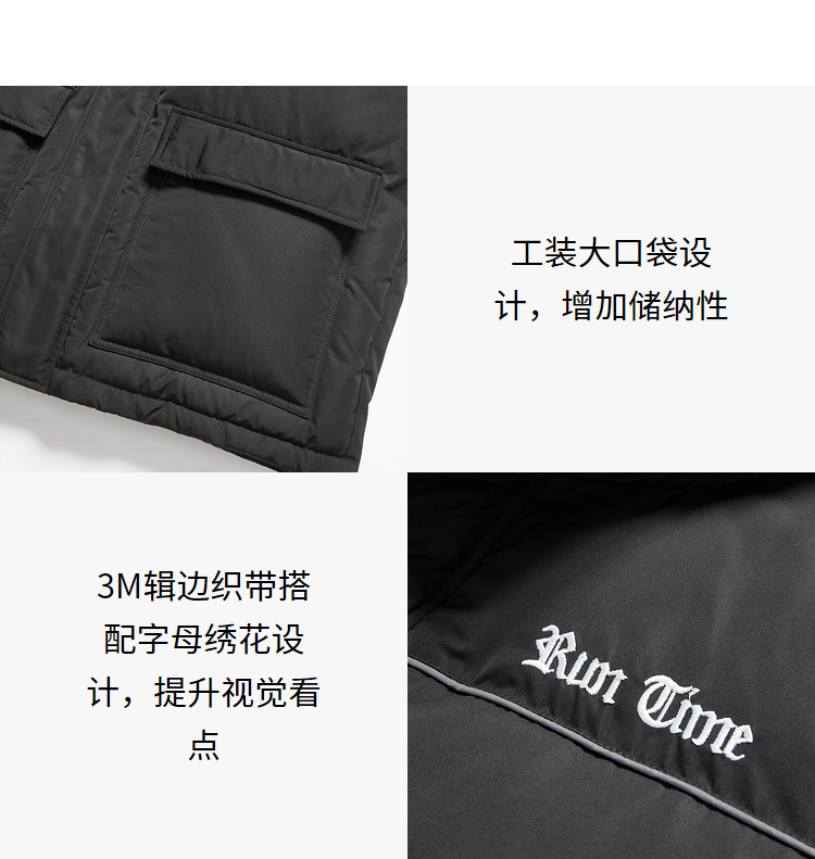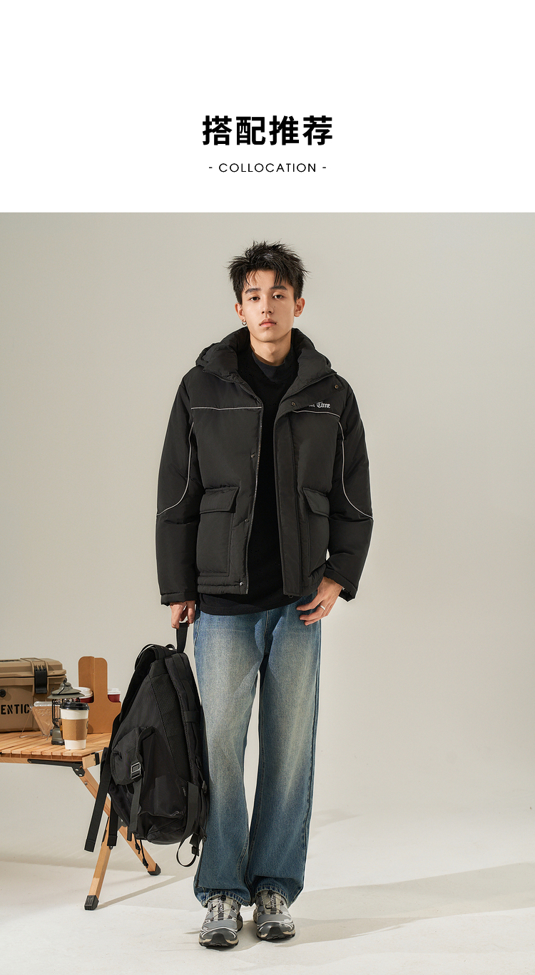 西遇美式工装大口袋羽绒服男秋冬新款保暖鸭绒连帽面包服外套12532203