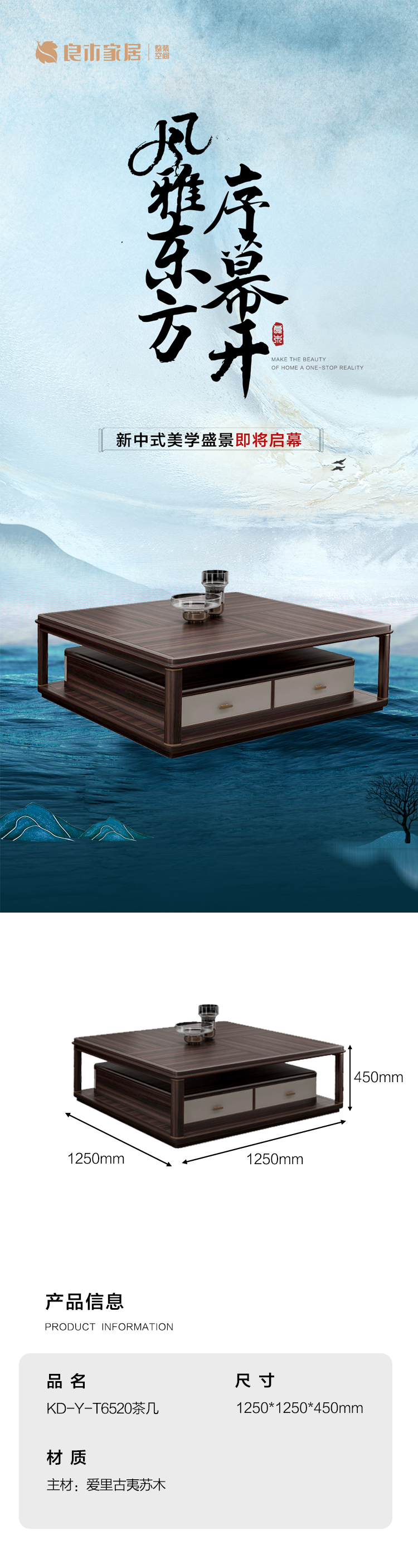 【新中式-茶几KD-Y-T6520】黑檀/客厅/茶几
