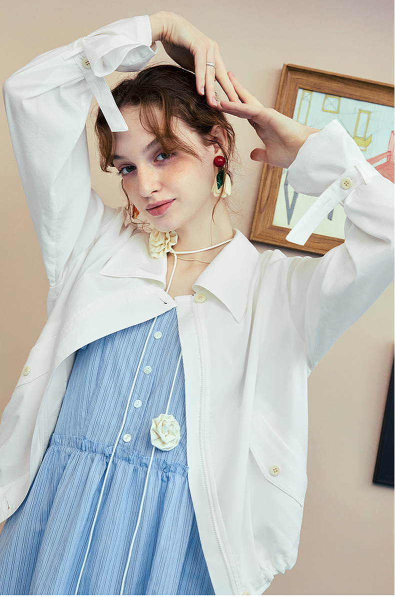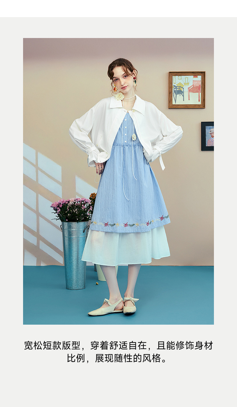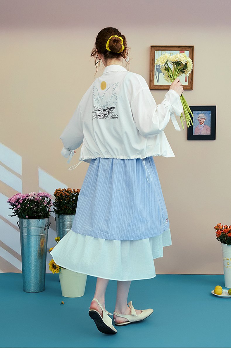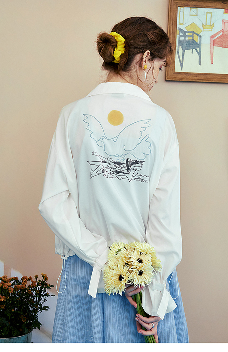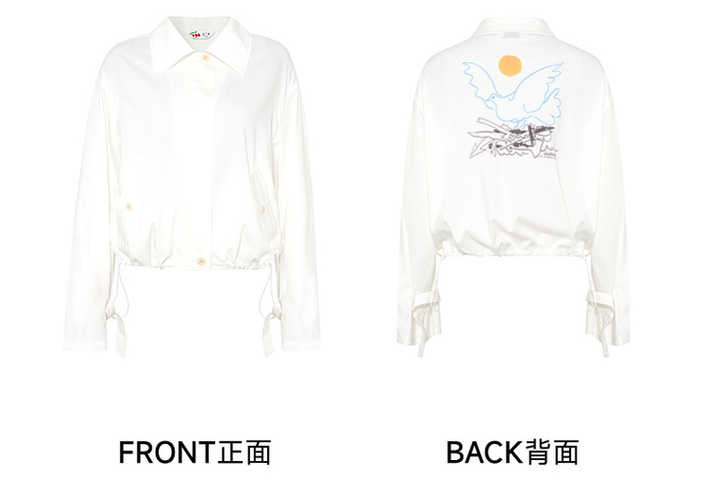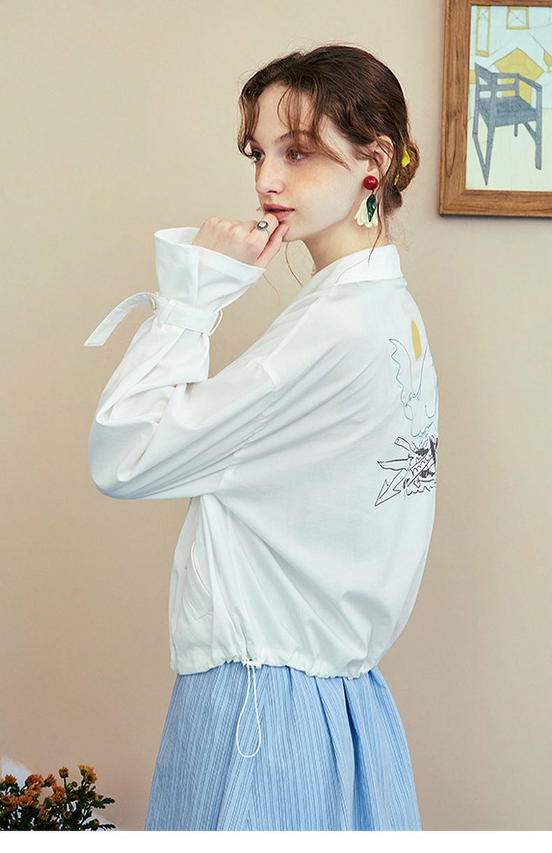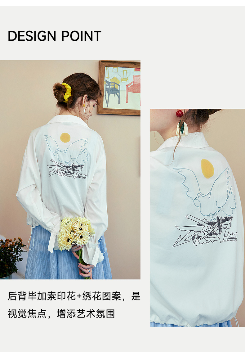两三事 暮光未央 2025夏季新款后背印花刺绣抽绳收腰外套女宽松