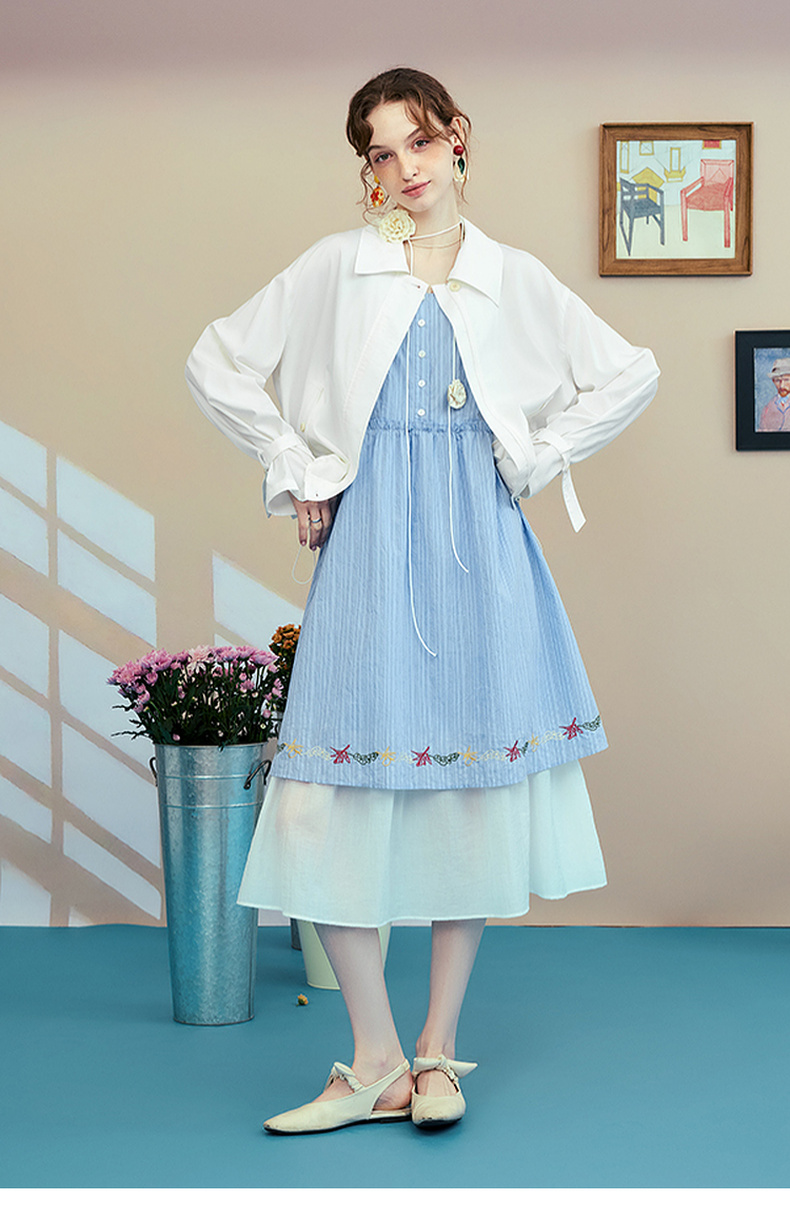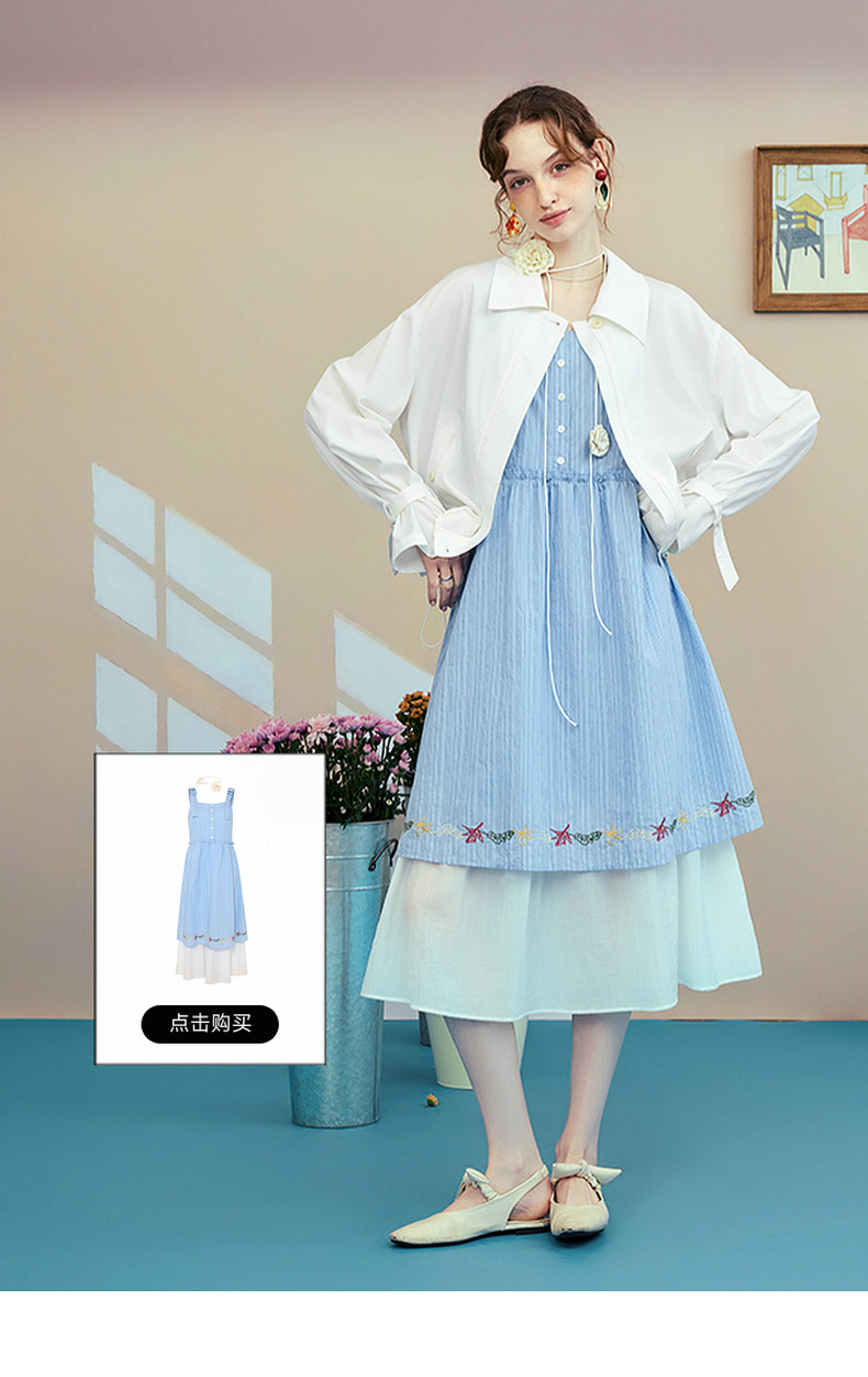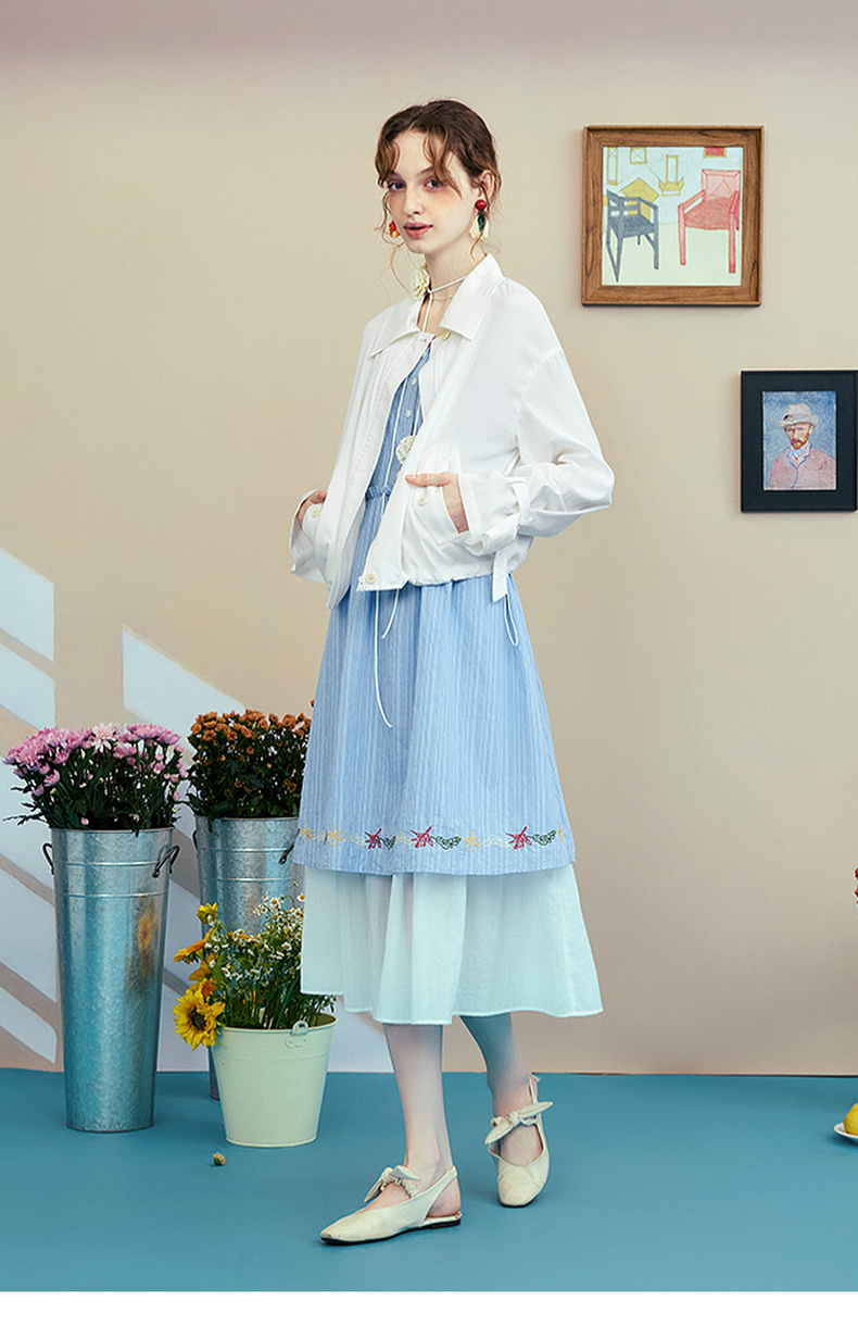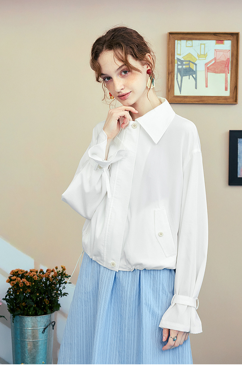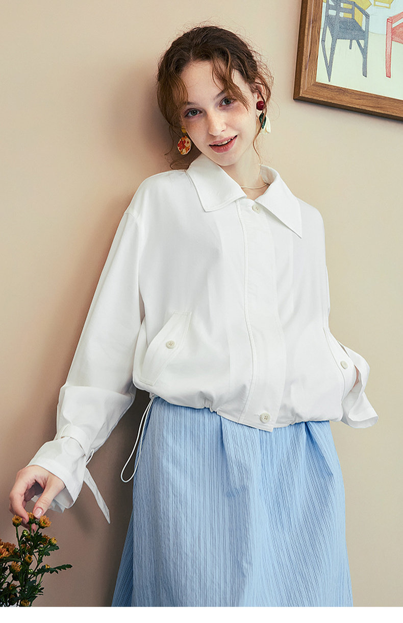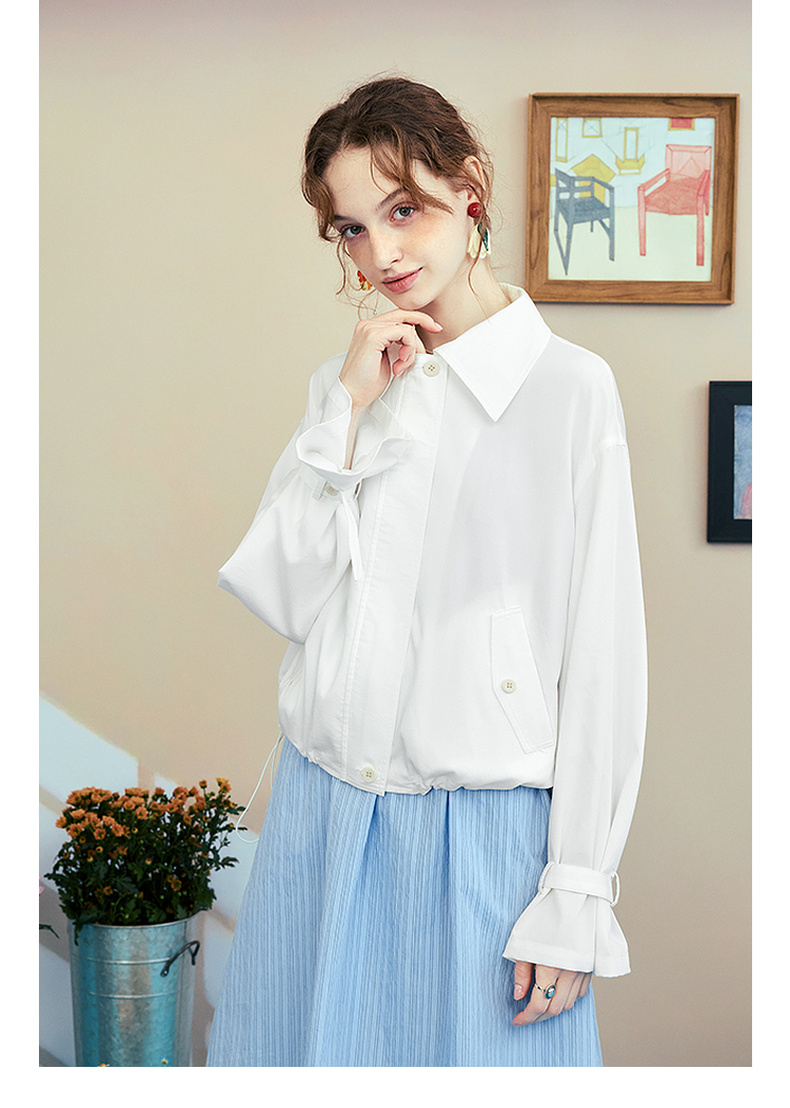 两三事 暮光未央 2025夏季新款后背印花刺绣抽绳收腰外套女宽松