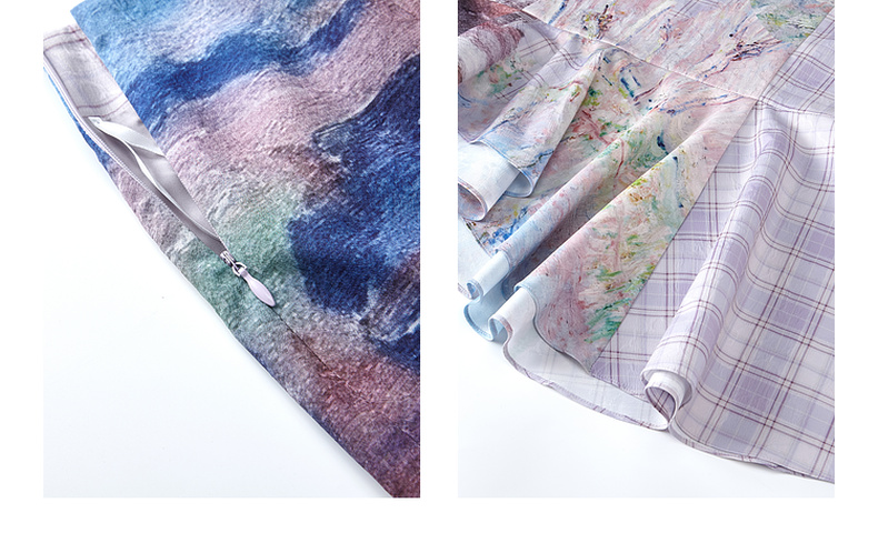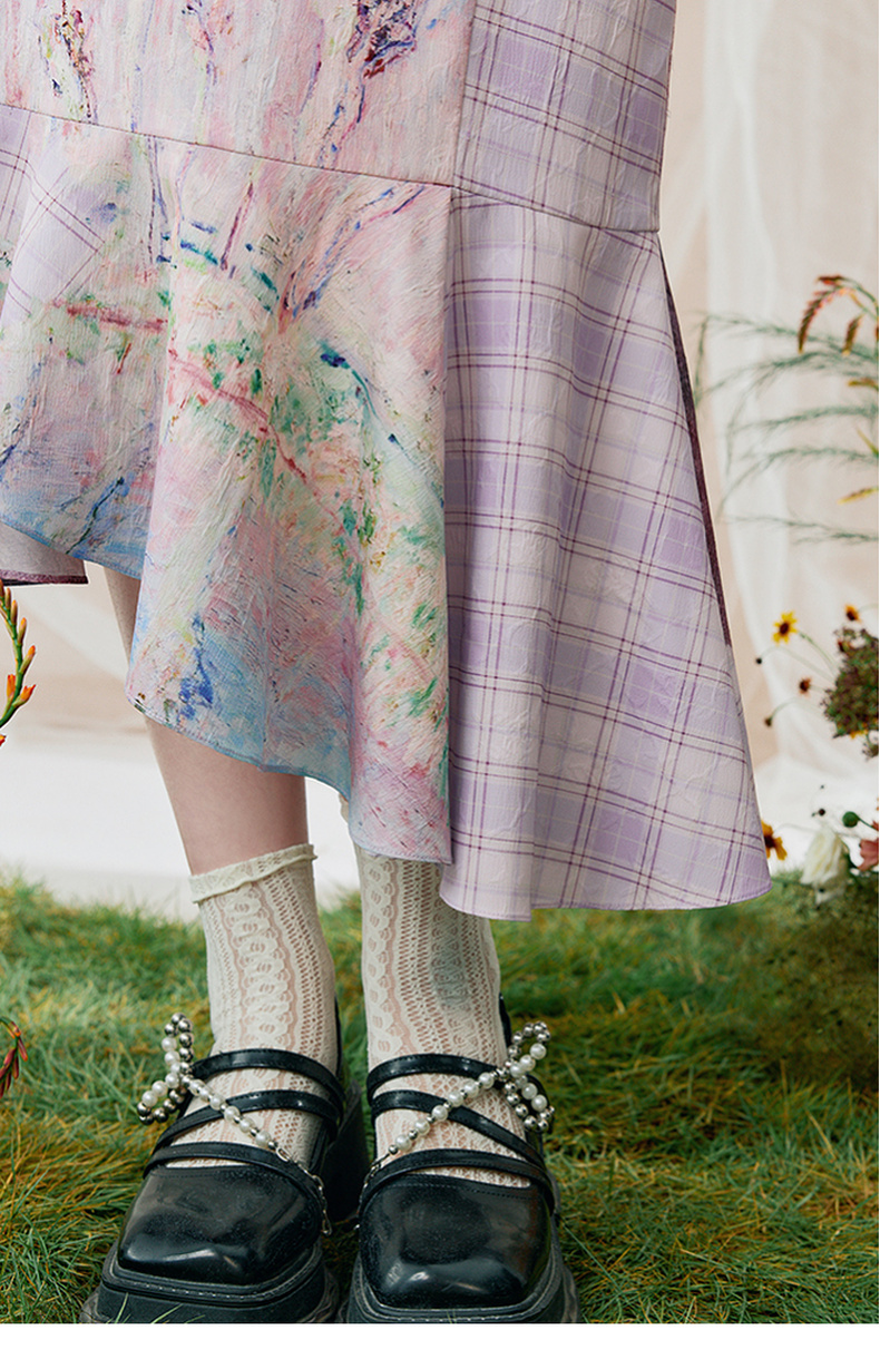 两三事 森灵绮梦 2025夏季新款小清新印花拼色绑带吊带裙连衣裙