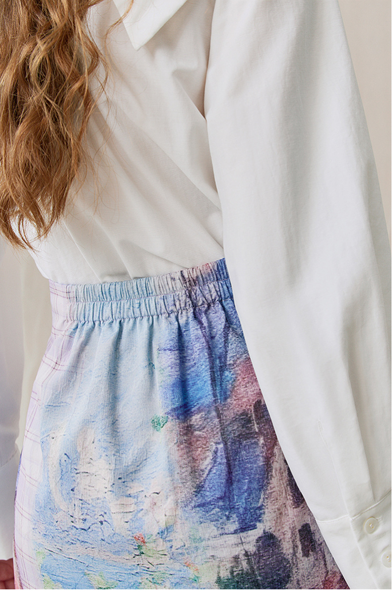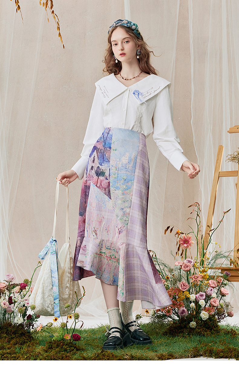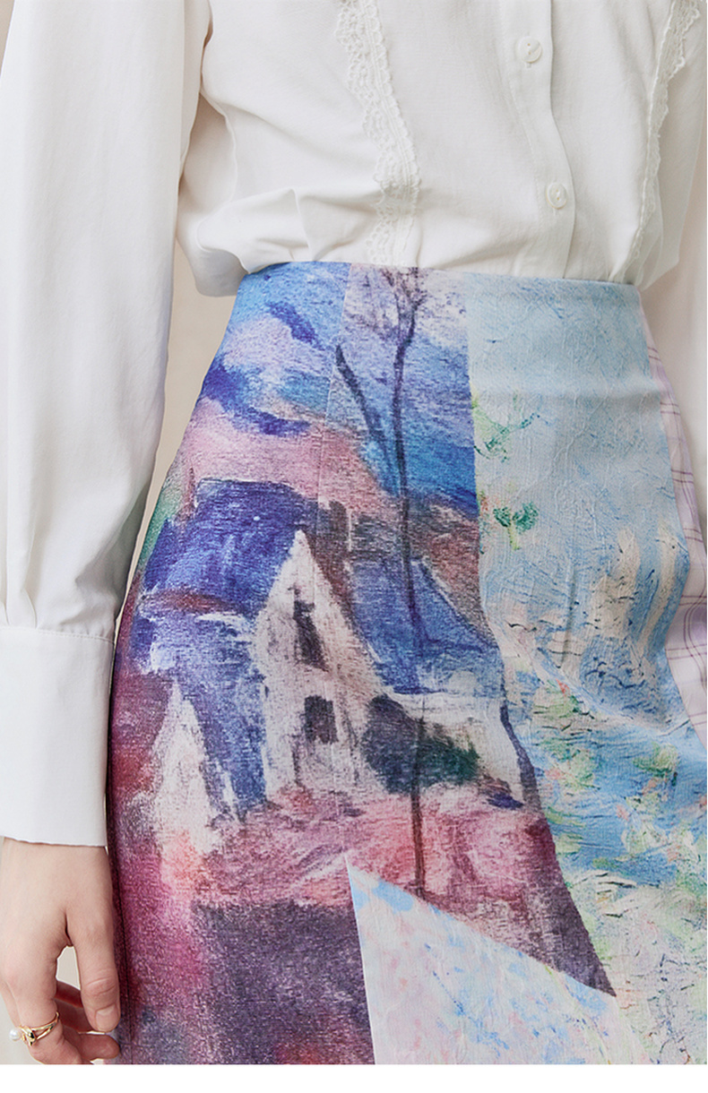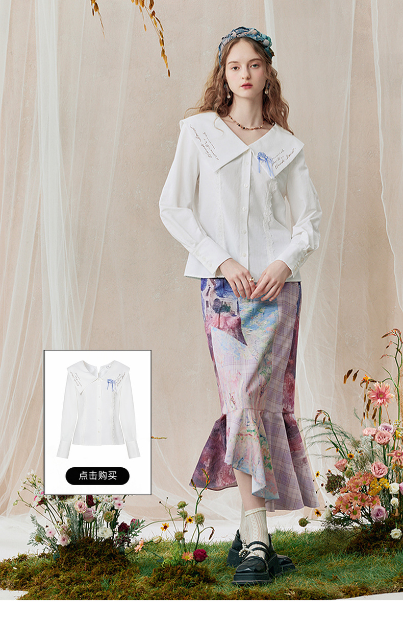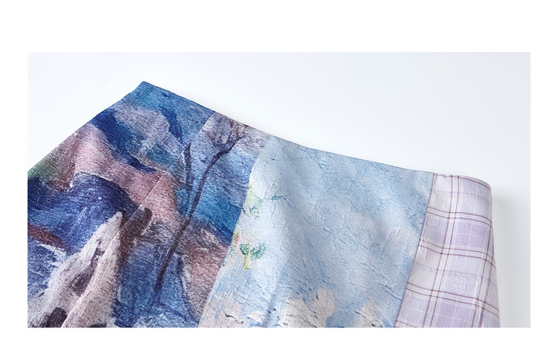 两三事 霓虹迷浪 2025秋季新款复古印花包臀鱼尾裙不对称半身裙