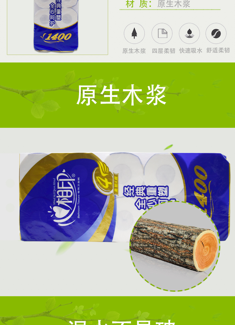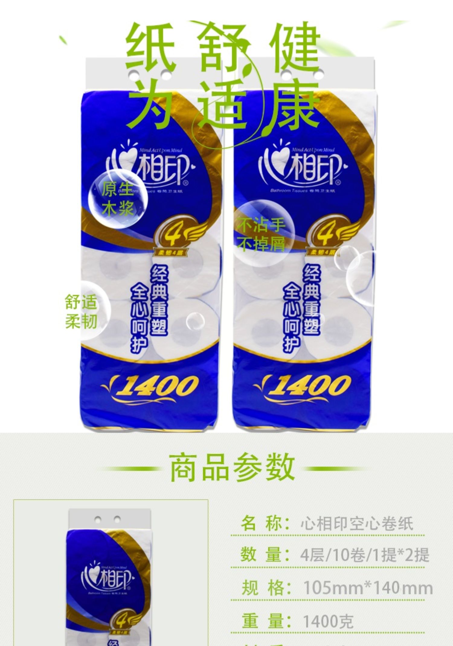 心相印柔韧4层卷纸BT910(10卷1400G)