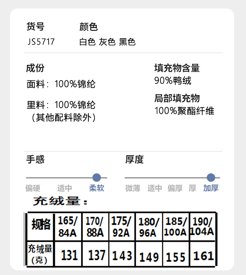 情侣款羽绒服JS5717