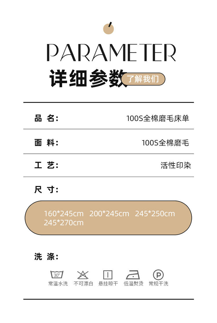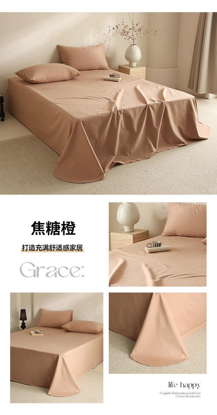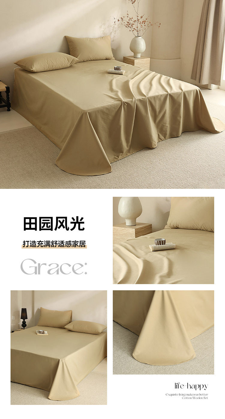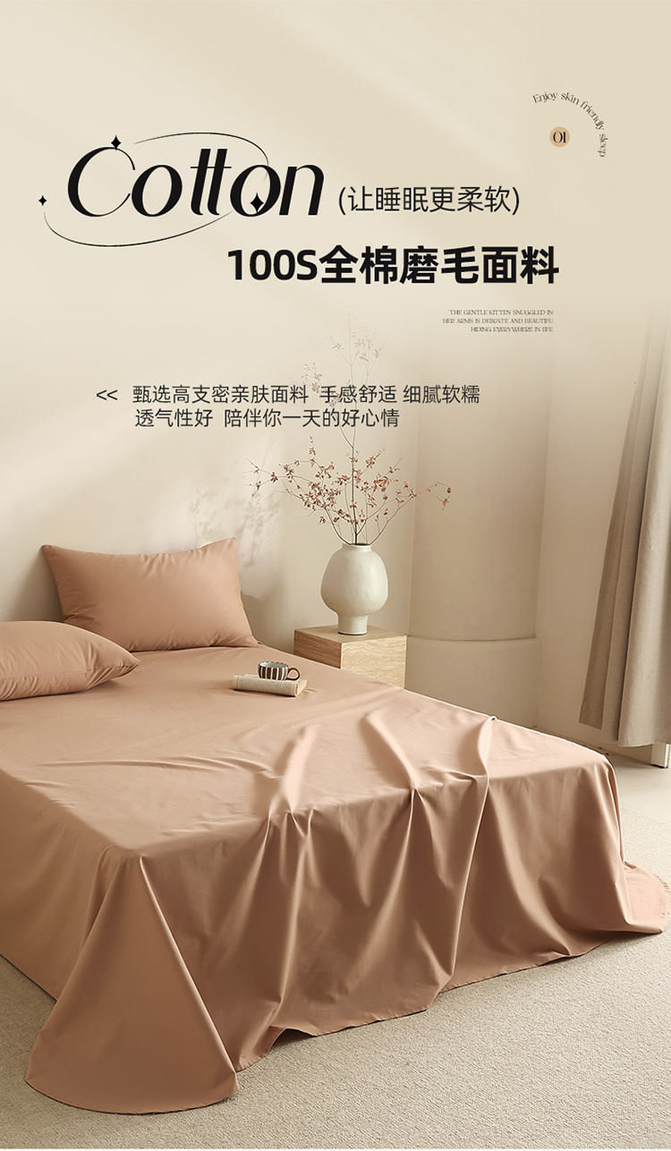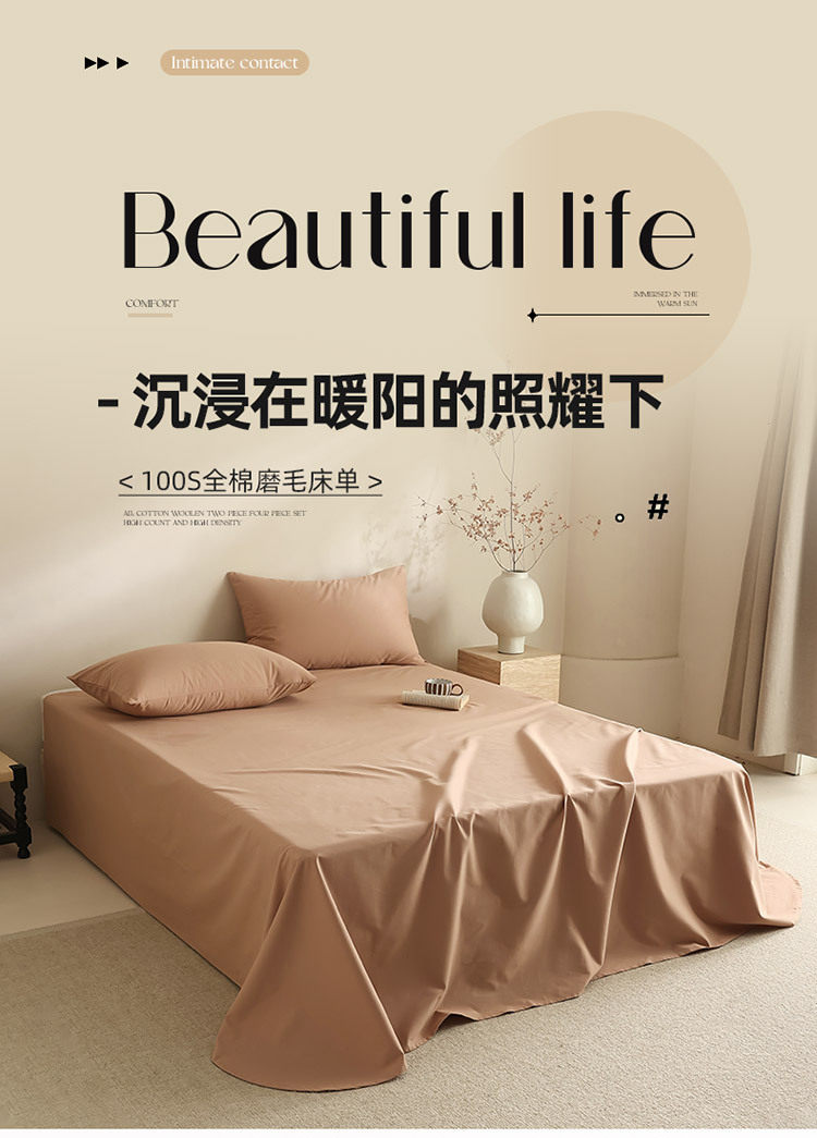 日式无印100支全棉单品磨毛床单良品纯色中厚长绒棉床罩秋冬床单