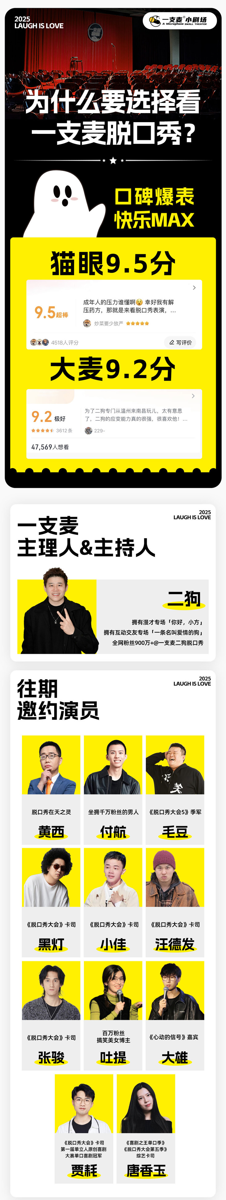 - 一支麦成立于2018年,其小剧场于2021年正式开业,致力于打造年轻人更喜欢的城市文娱新空间。目前主营单口喜剧、脱口秀、漫才、即兴喜剧以及近景魔术等商业演出,是一支麦喜剧的常驻场地。