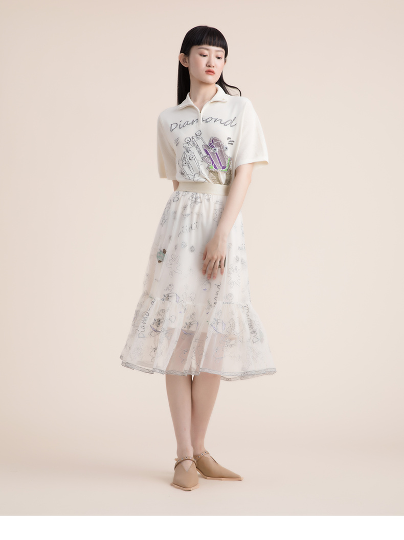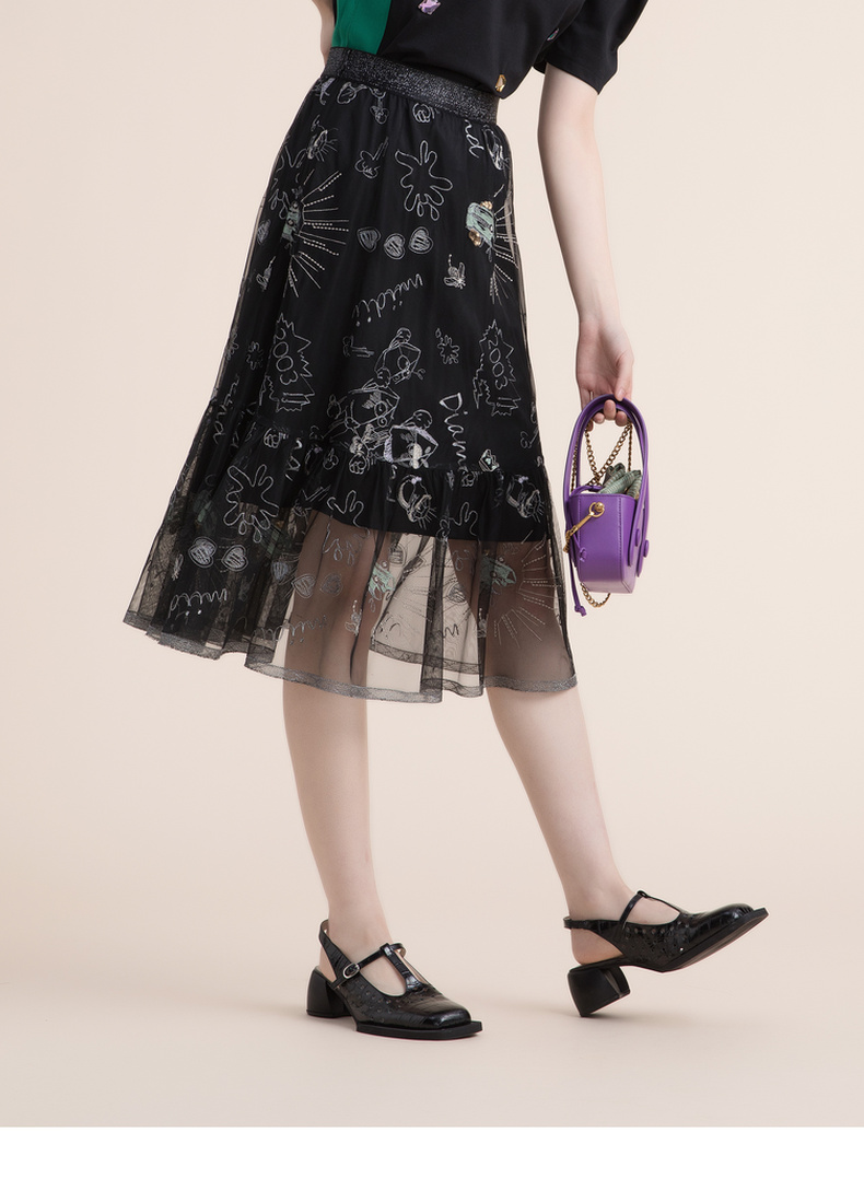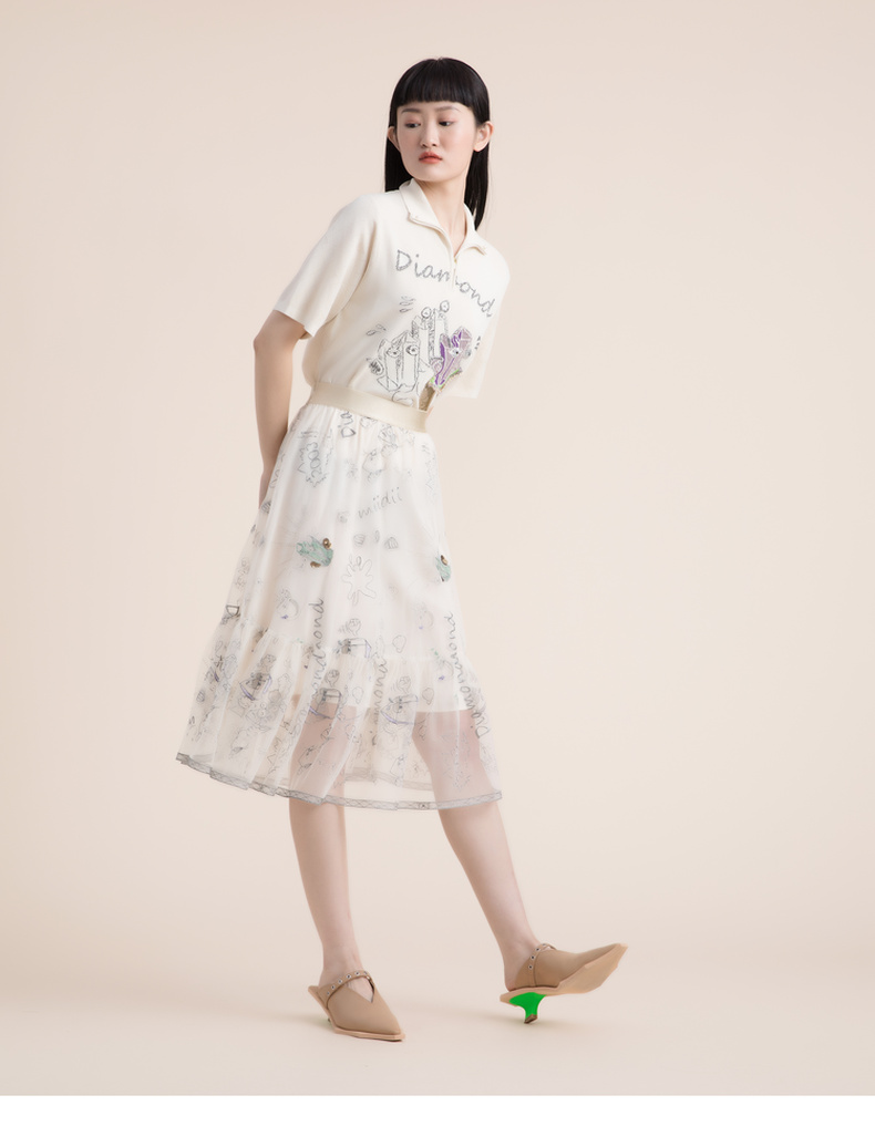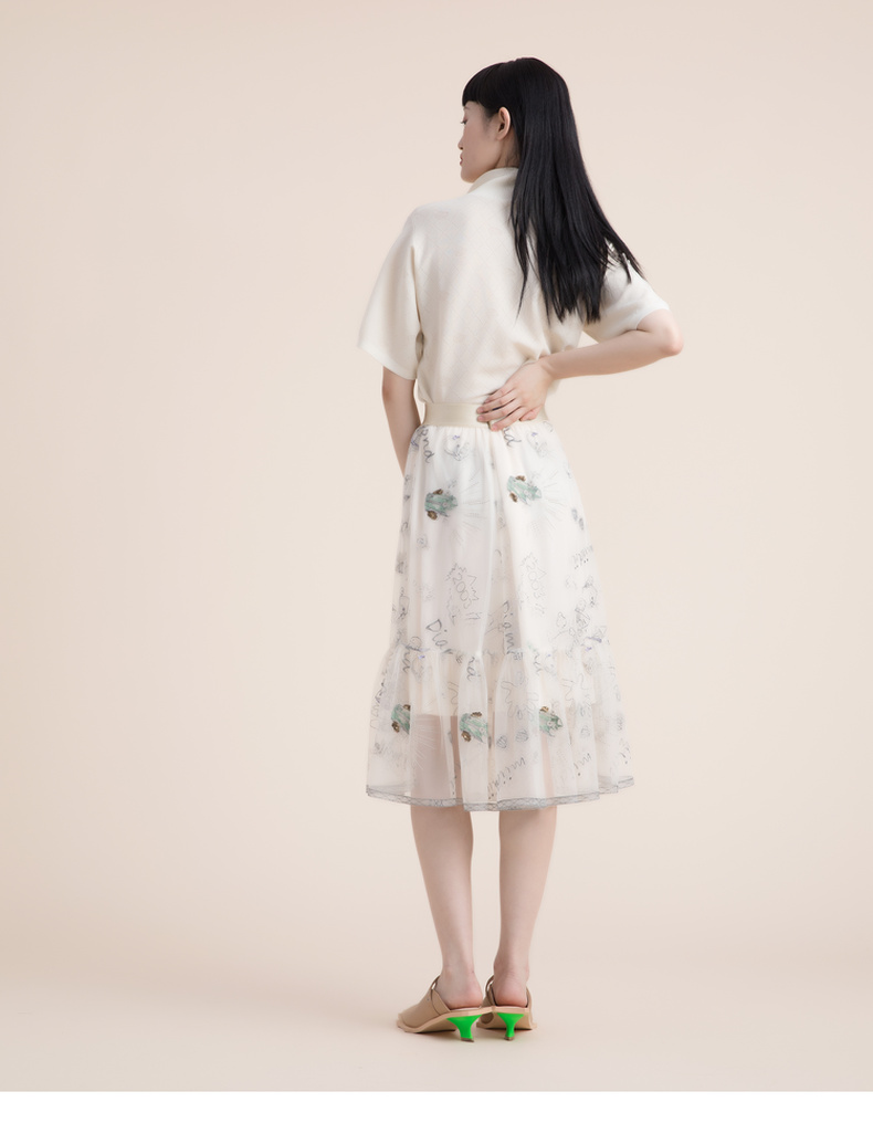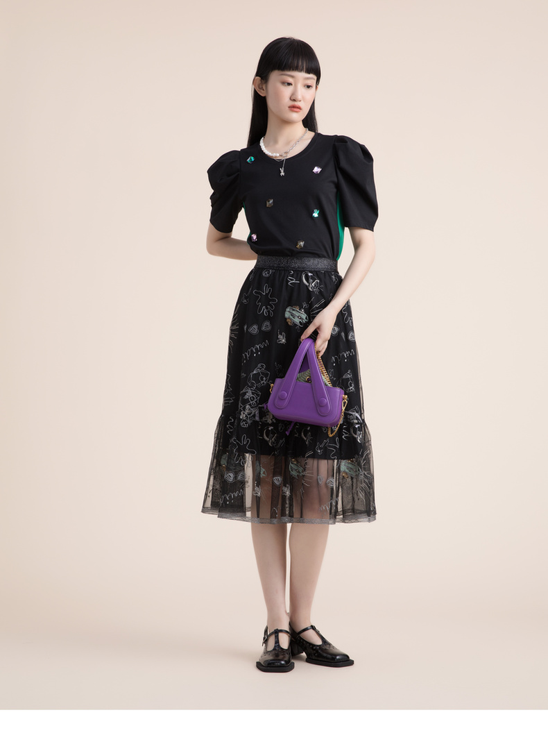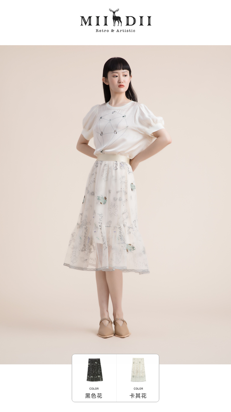 谜底半身裙2022夏季新款优雅手工钉珠A型蕾丝半裙222GB0629