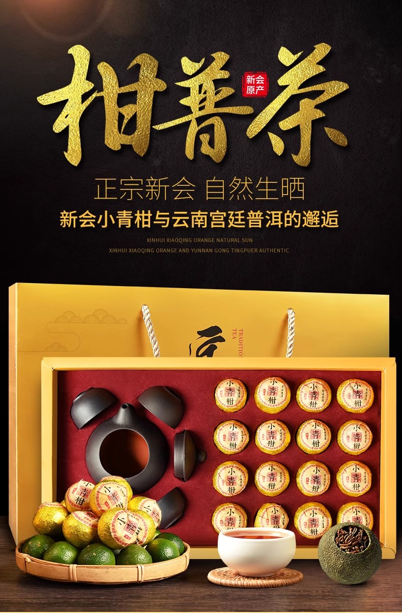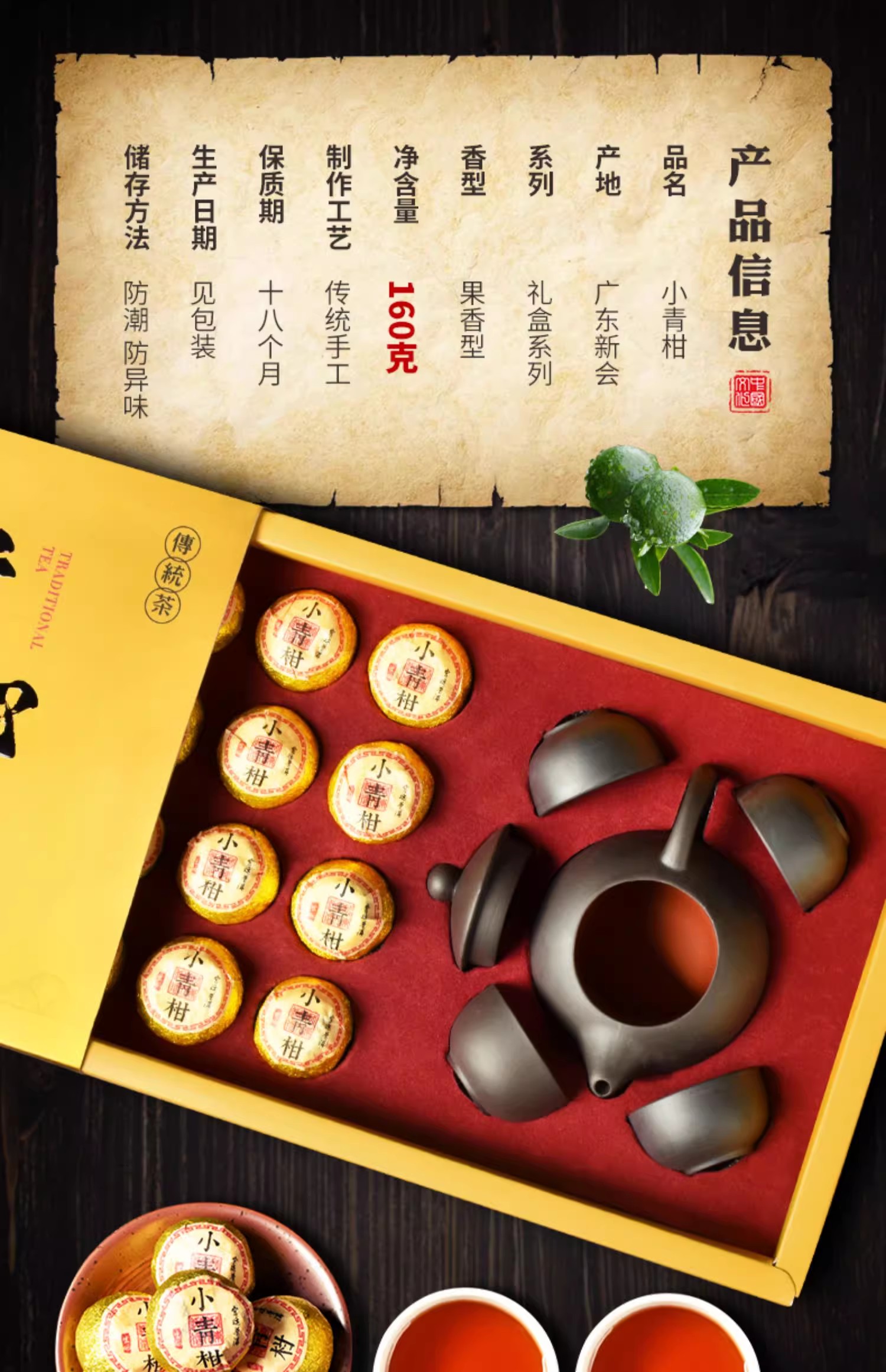 【送紫砂壶茶具】小青柠普洱茶礼盒装 送紫砂茶具套装