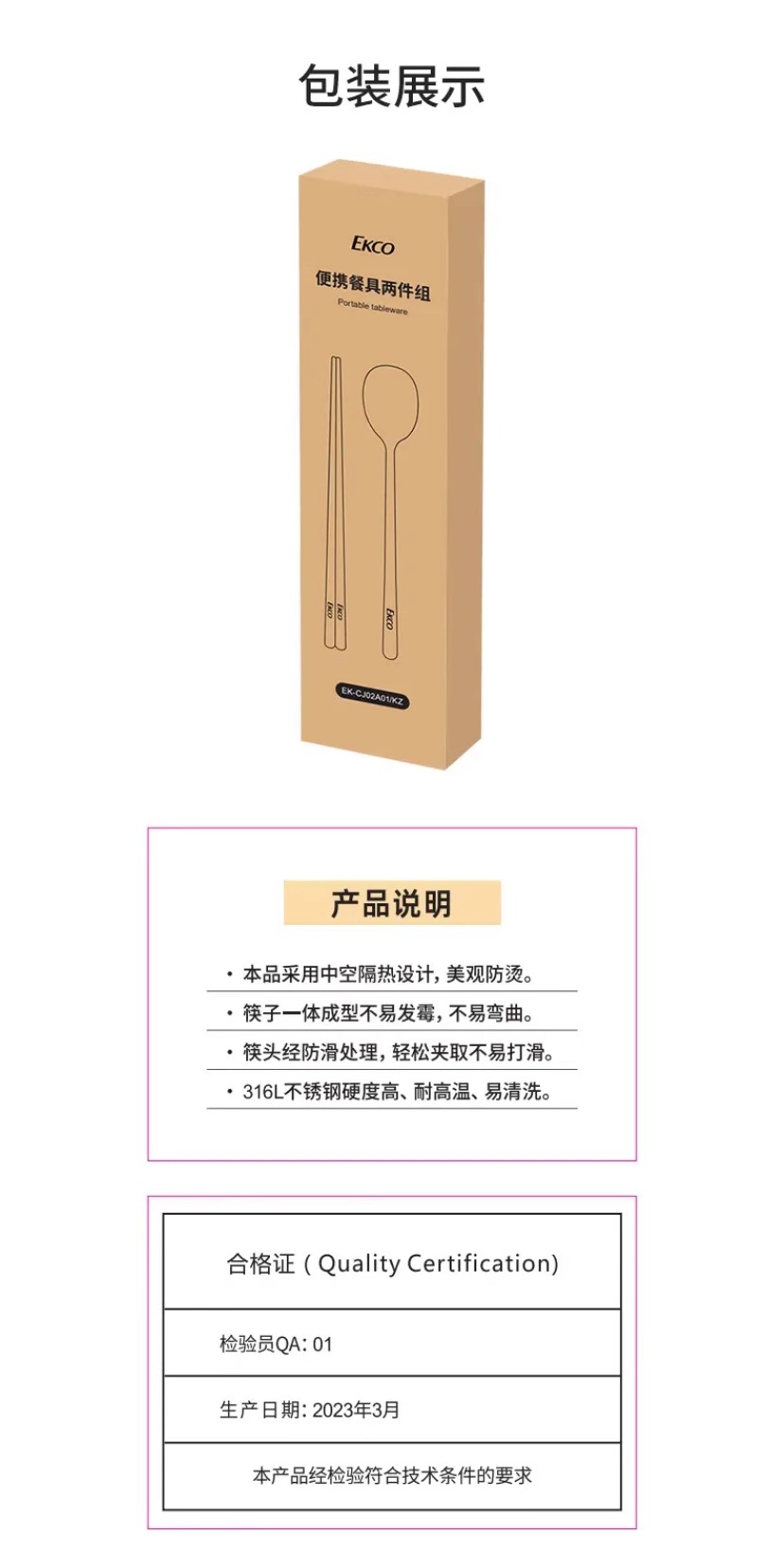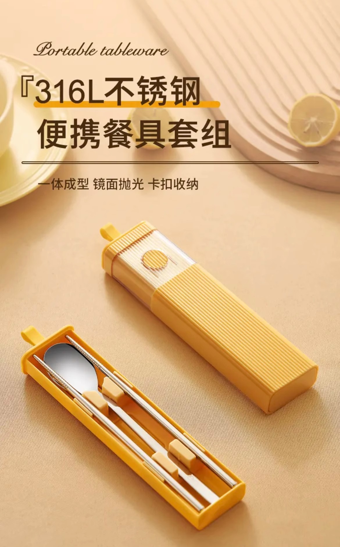 康宁VISIONS316不锈钢便携筷子勺子套盒学生餐具套装便康宁便携餐具两件组