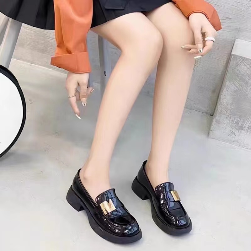 Wonders2023春季新款圆头中跟搭扣英伦百搭乐福鞋单鞋女鞋
