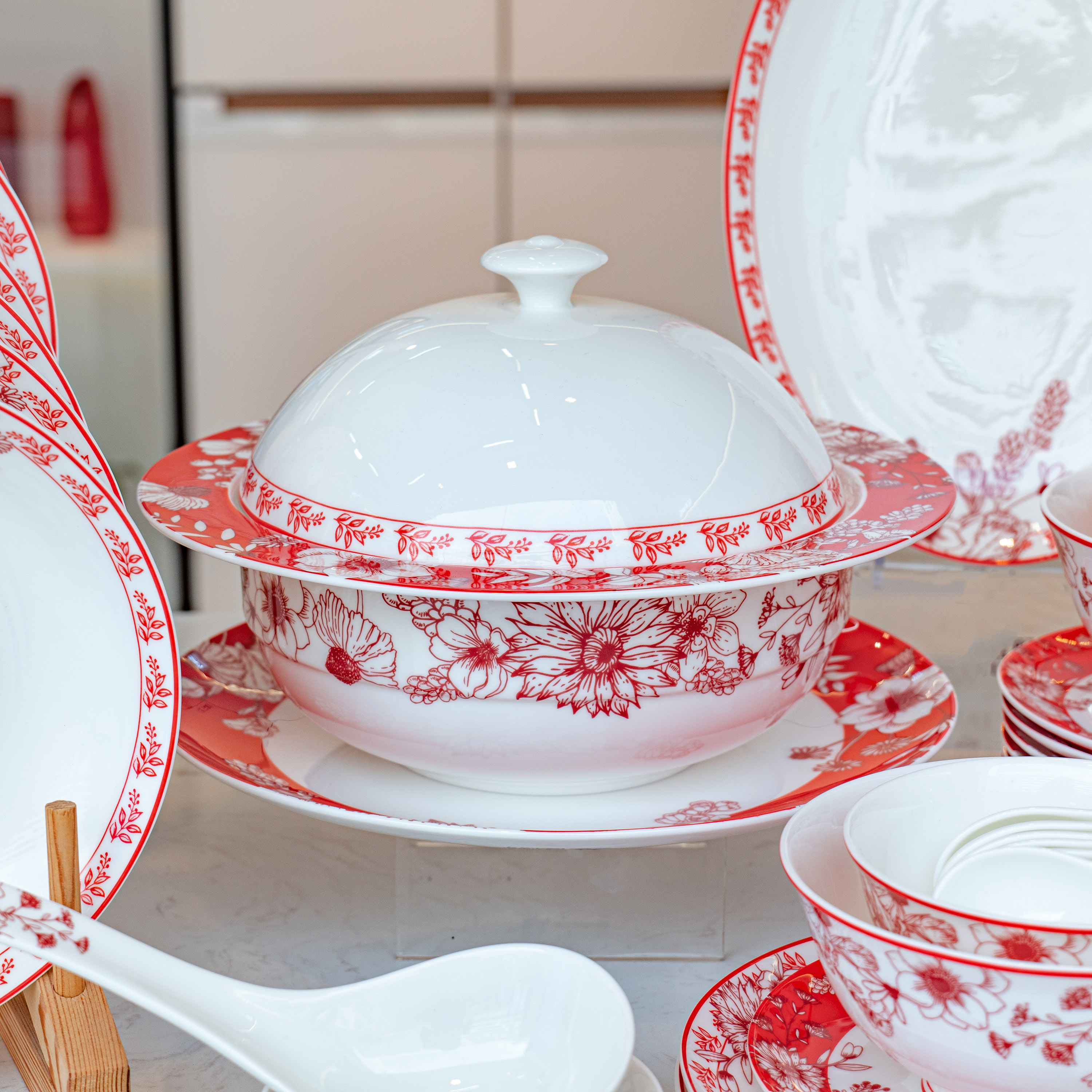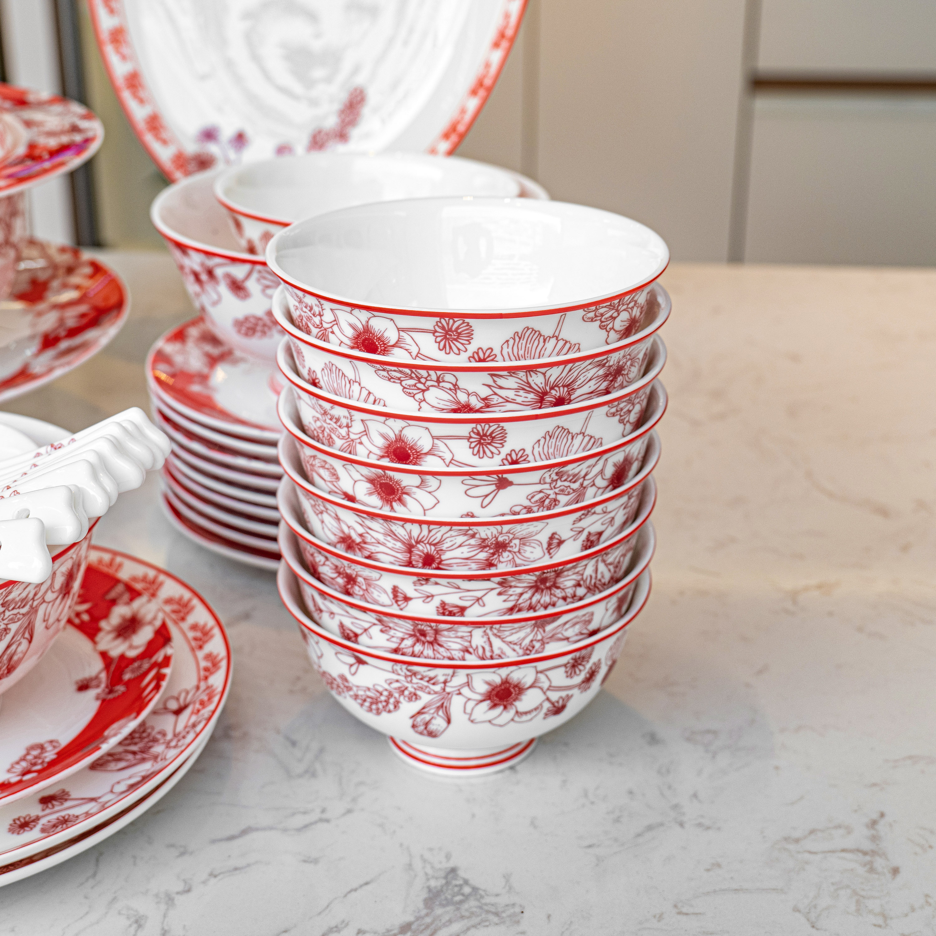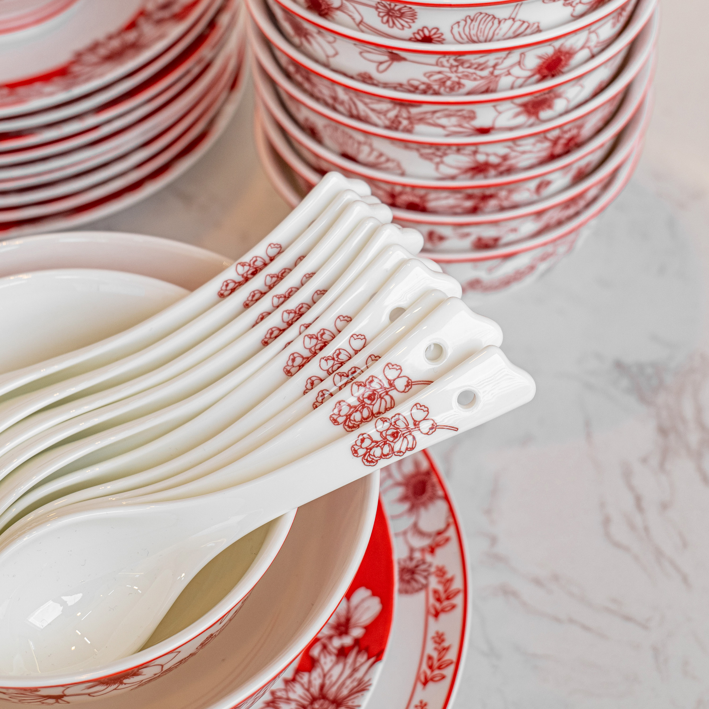 【餐具清仓特惠4折】品物攸宜唐山骨瓷锦绣前程中式碗碟 家用红色高级感餐具礼盒装