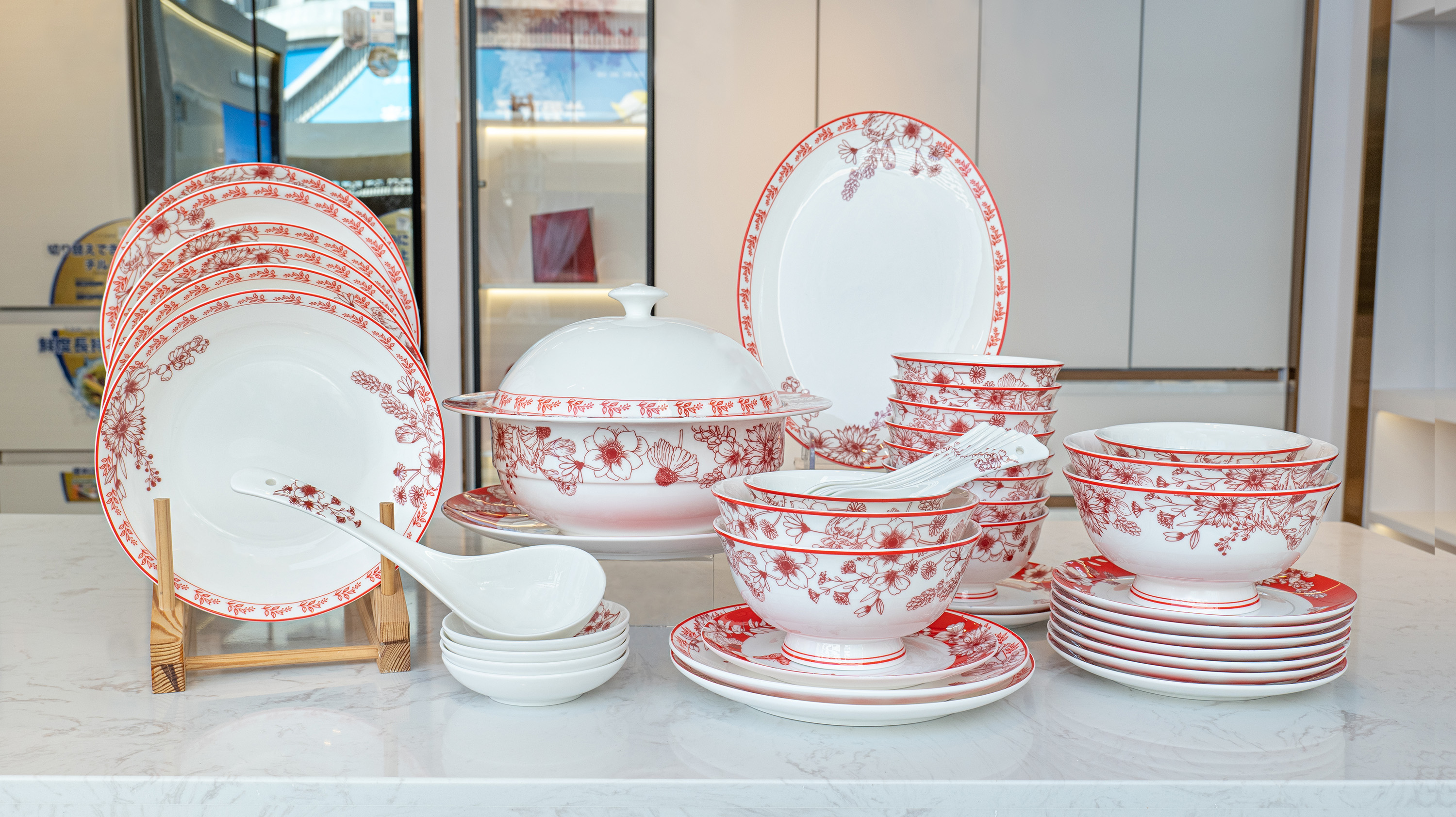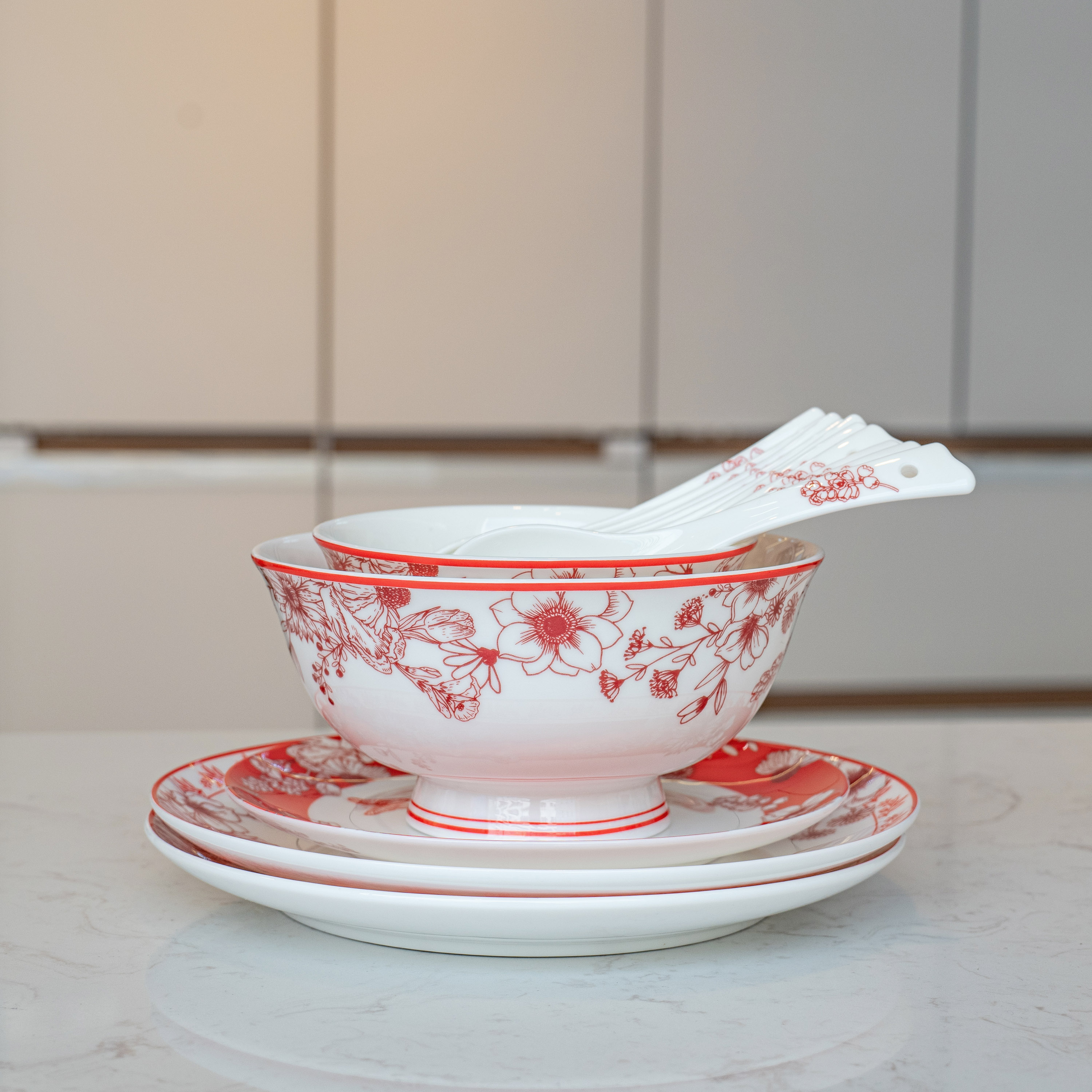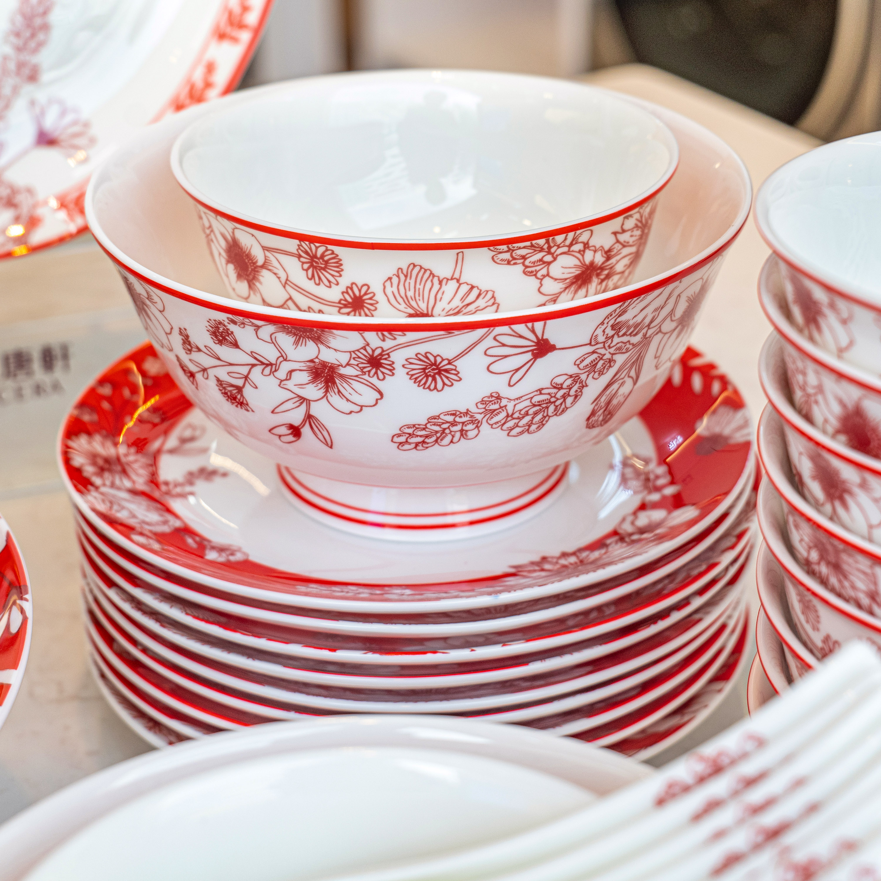 【餐具清仓特惠4折】品物攸宜唐山骨瓷锦绣前程中式碗碟 家用红色高级感餐具礼盒装