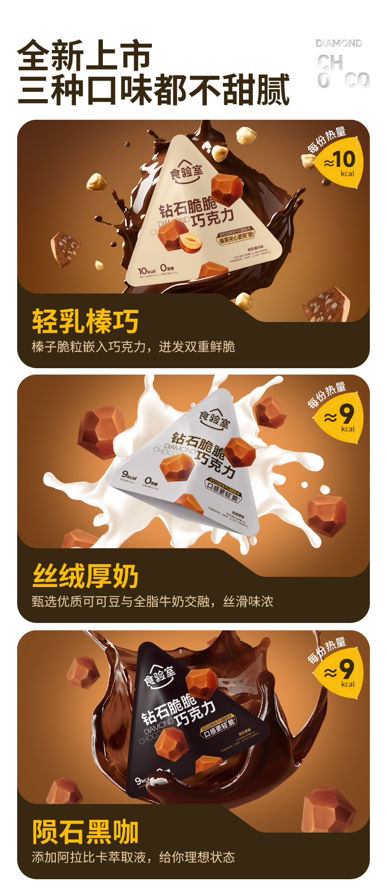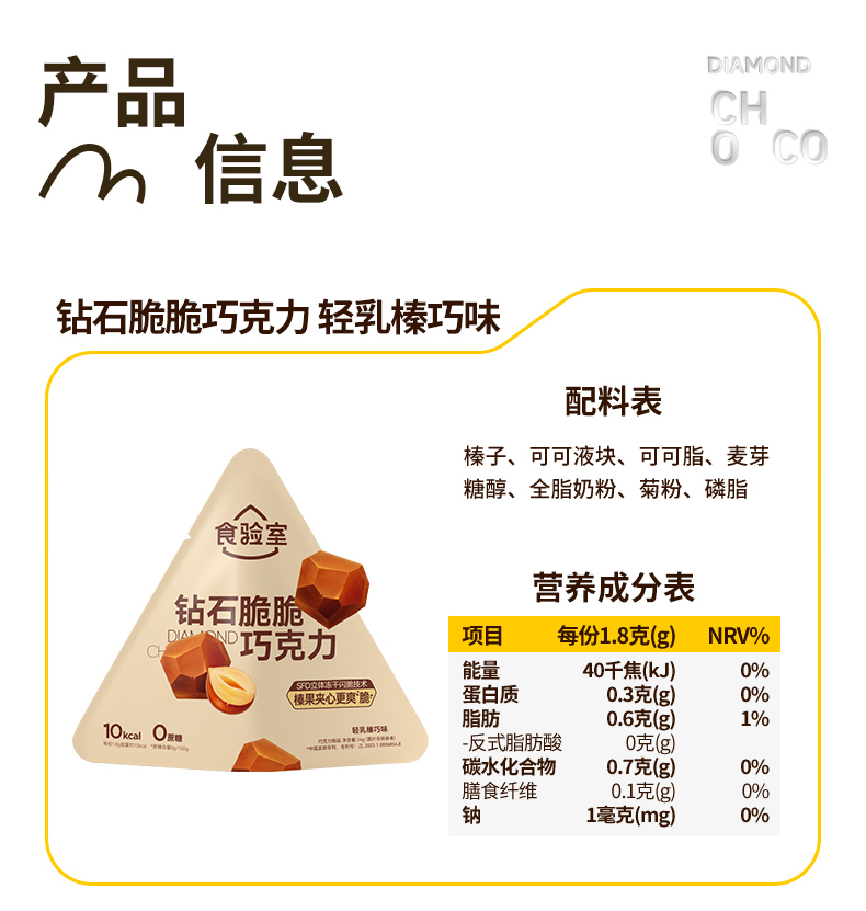 食验室 钻石脆巧 丝绒厚奶味/陨石黑咖味/轻乳榛巧 14g/袋【三口味可选】