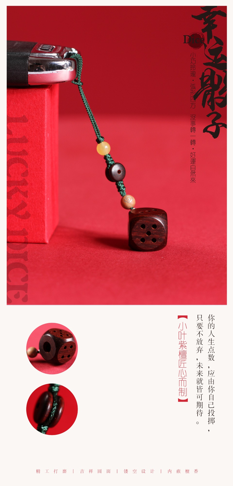 ——原创设计·骰子吊坠丨紫檀嵌檀香