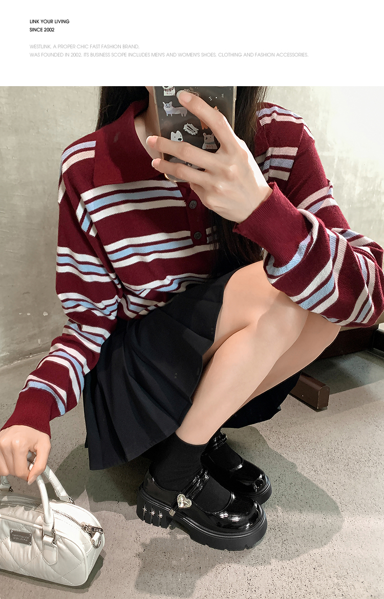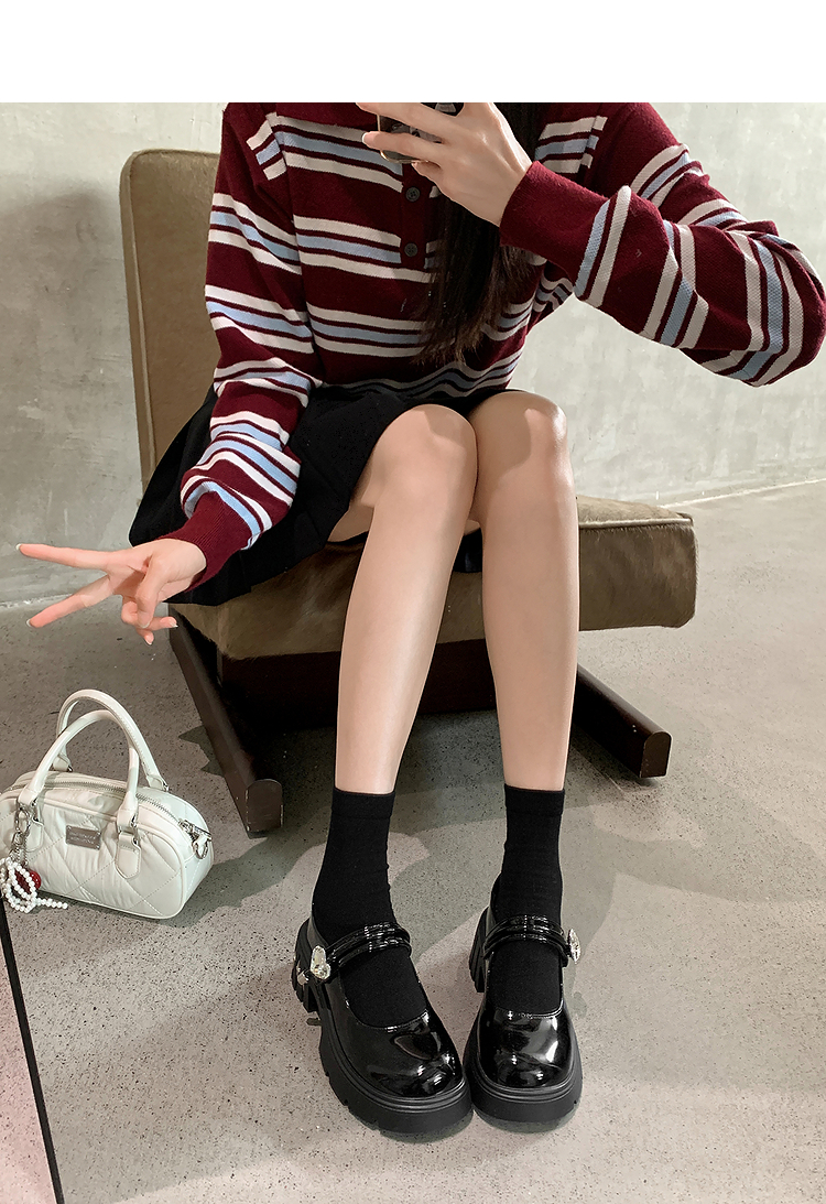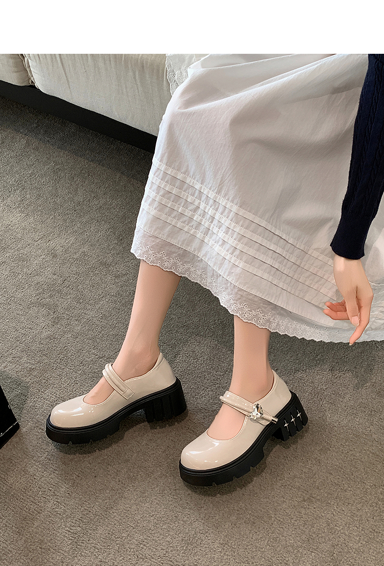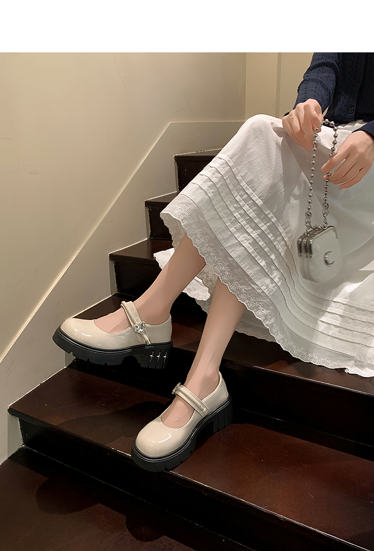 西遇厚底玛丽珍鞋女新款秋季洛丽塔水钻增高单鞋配裙子小皮鞋V1456894