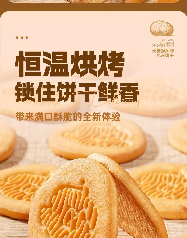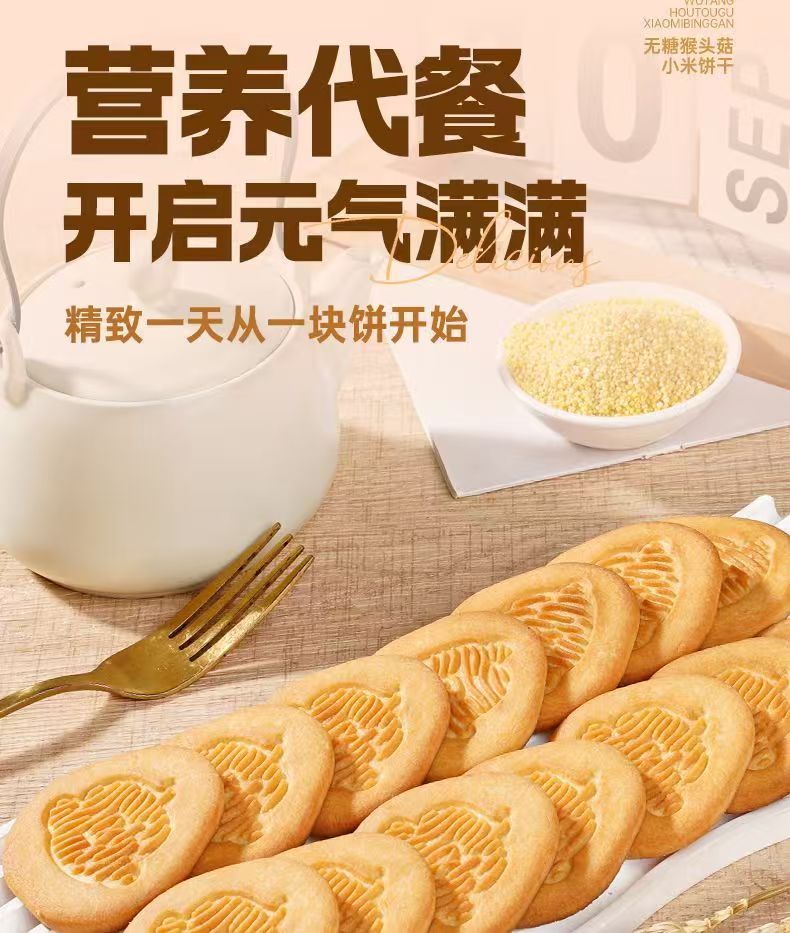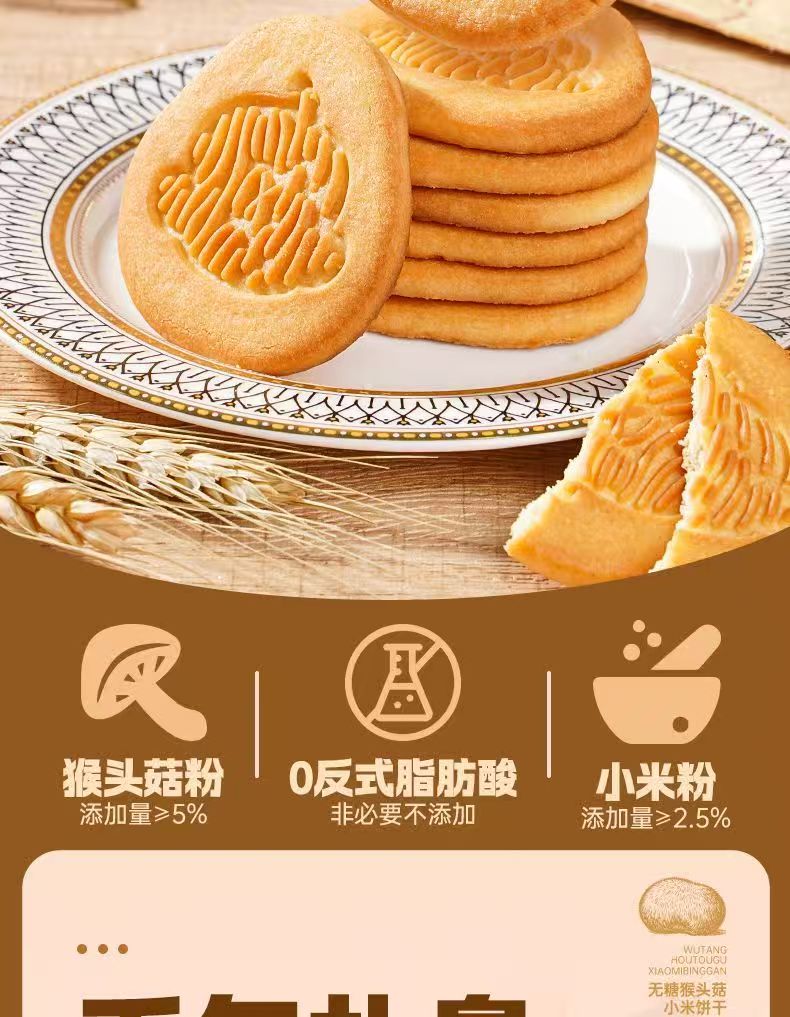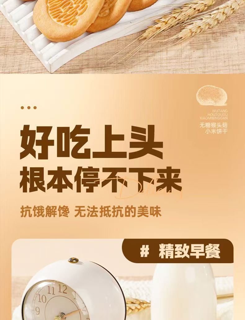 【无糖】益生元猴头菇小米饼干奶香酥脆营养代餐早餐粗粮高膳食糕点800克/盒