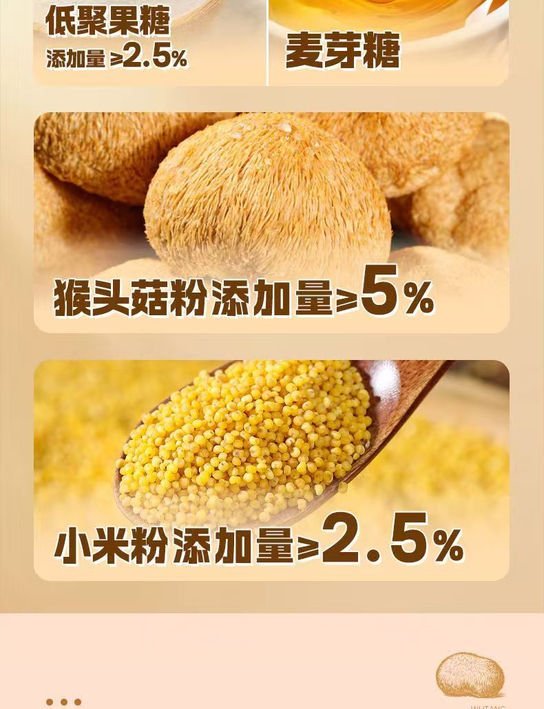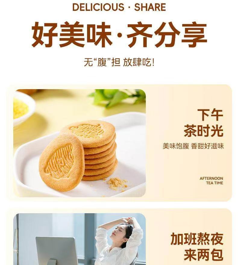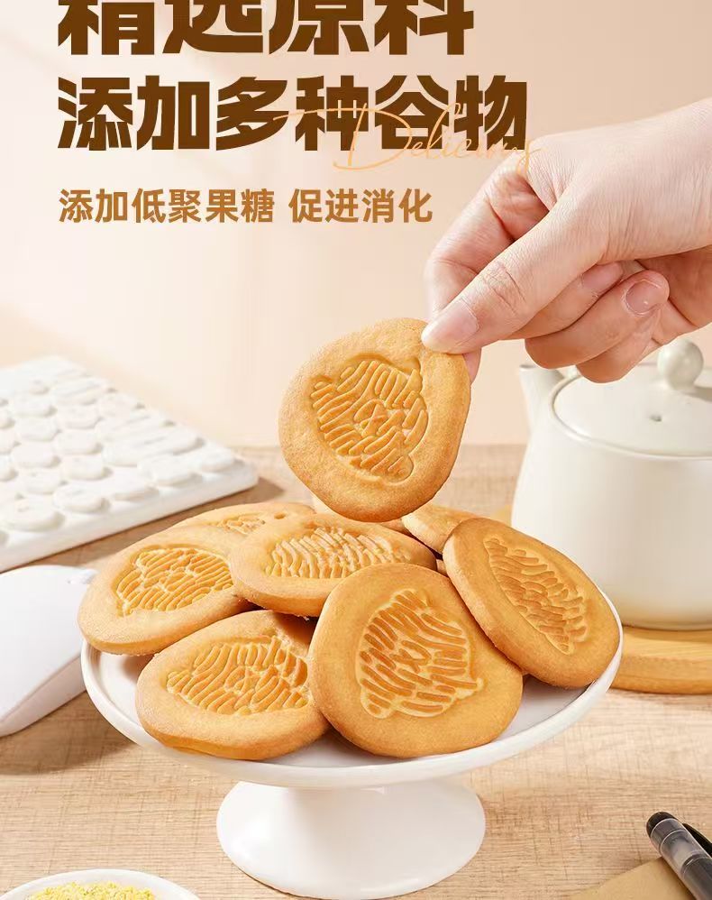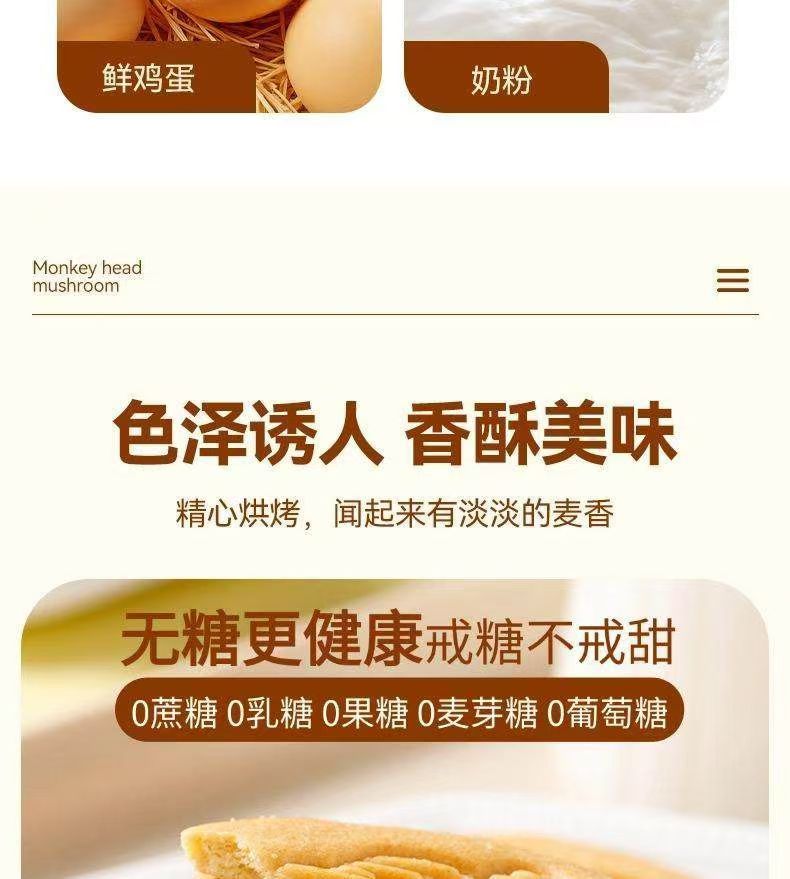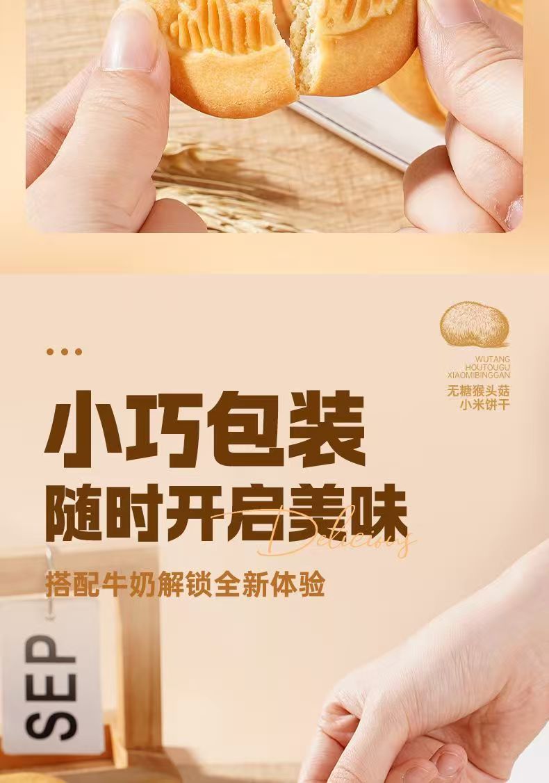 【无糖】益生元猴头菇小米饼干奶香酥脆营养代餐早餐粗粮高膳食糕点800克/盒