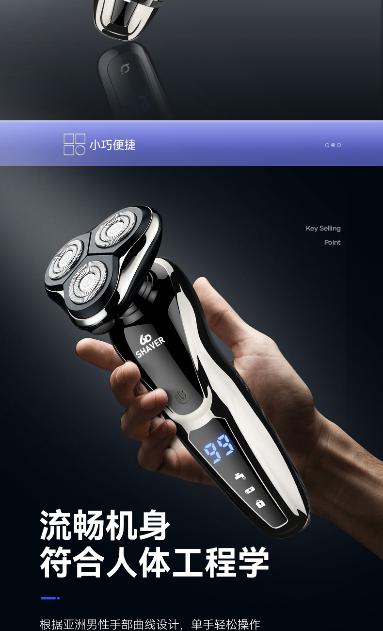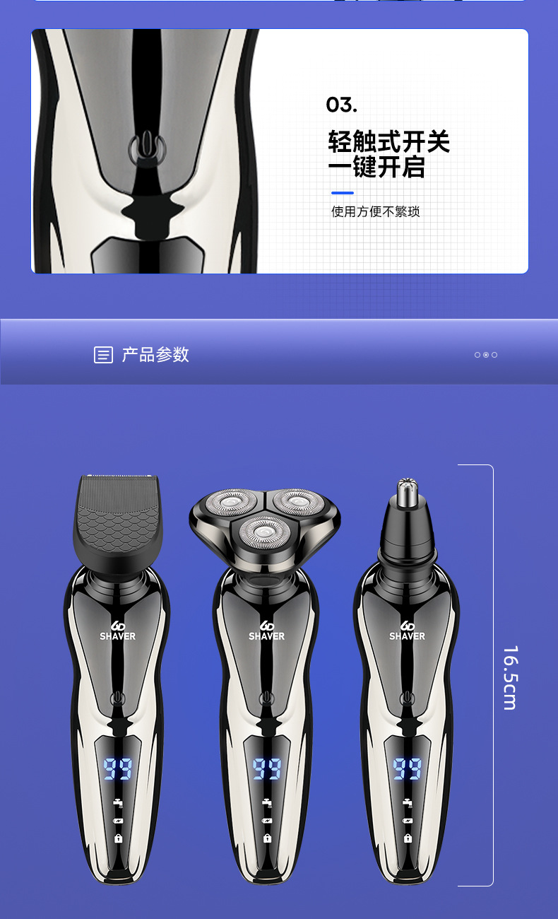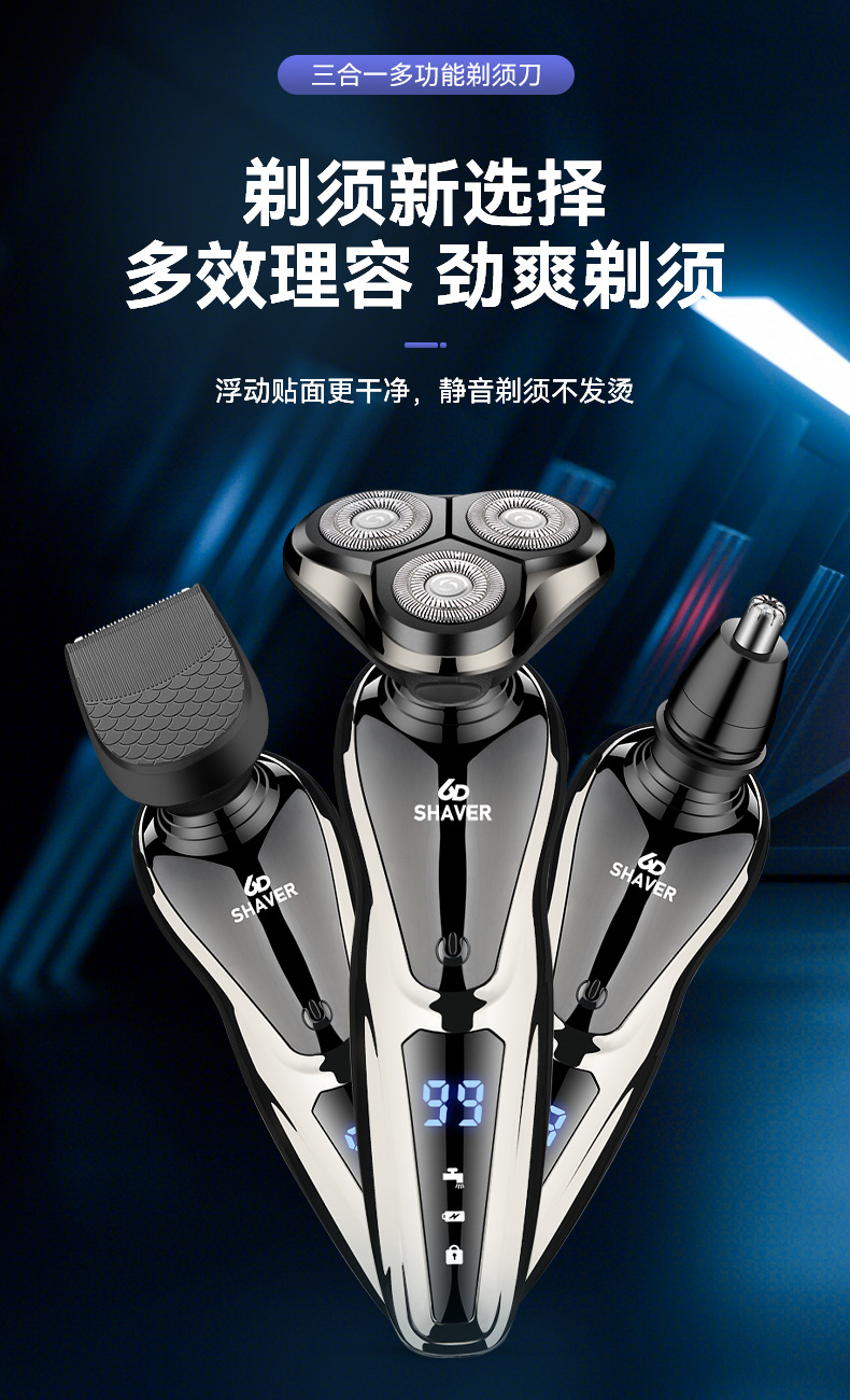 【三合一多功能 高效剃须刀】双科剃须刀 1168液晶数显 全身水洗理发鼻毛剃须三合一 电动刮胡刀