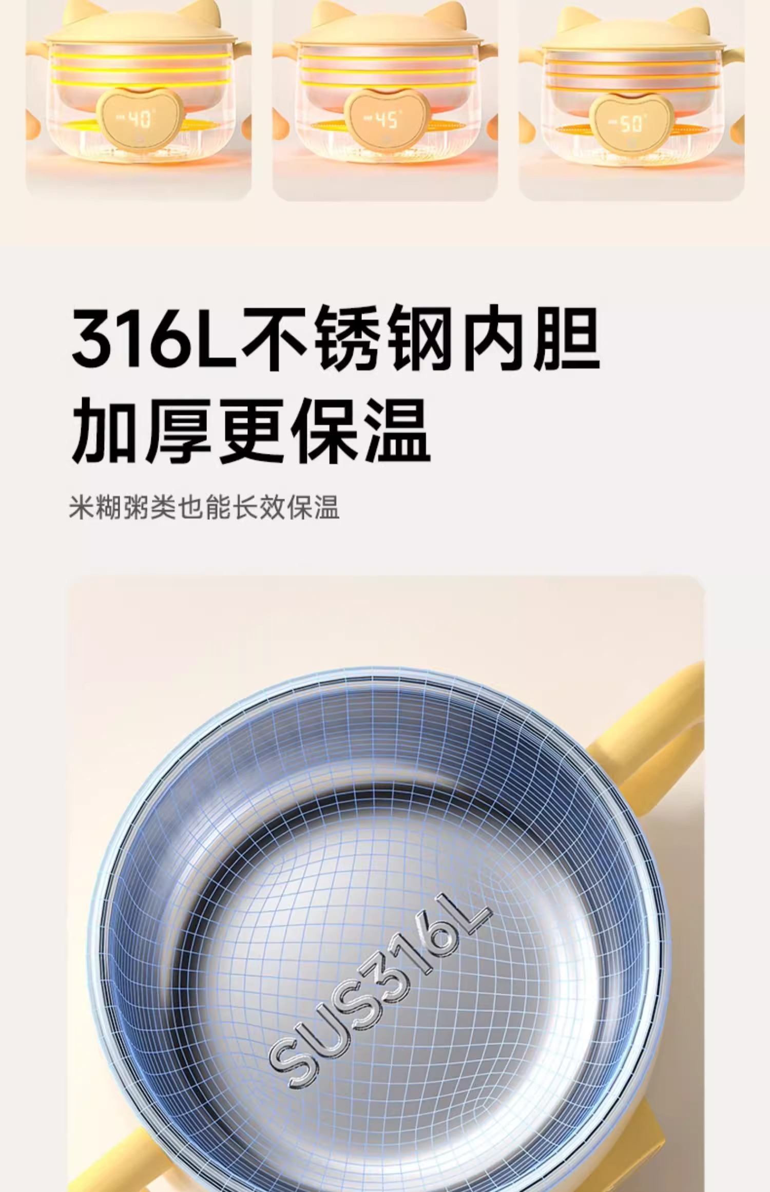 浦利顿辅食碗婴儿恒温保温碗316不锈钢保温饭盒 宝宝婴幼儿防摔儿童餐具PLD-DLY-H6