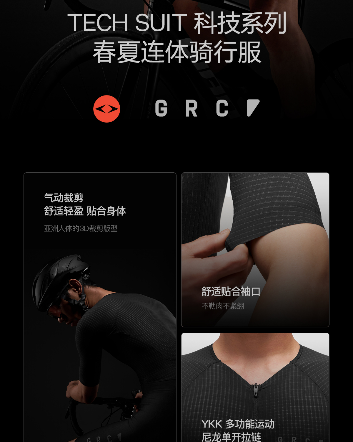 GRC桀骜无尽春夏新款TECH Suit科技系列双箭头坐垫骑行连体服男