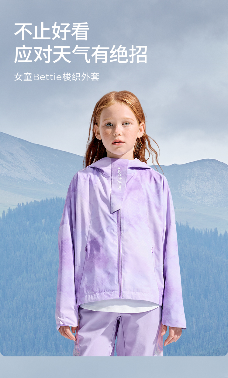 【专属】moodytiger女童外套2022秋季新款梭织印花防风连帽外套| 魔幻精灵 M23210401*