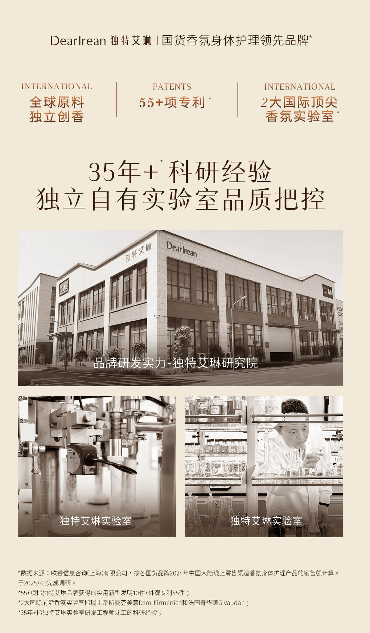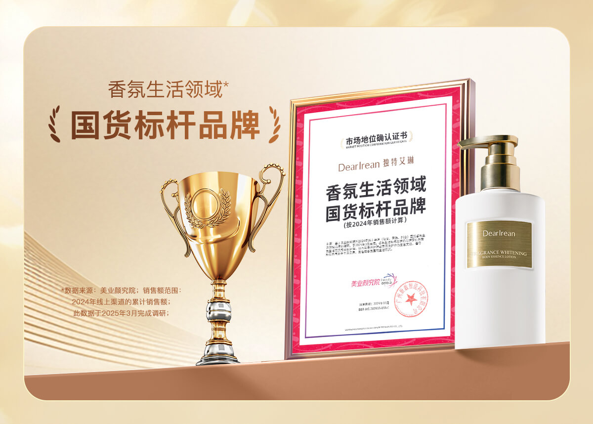 - DearIrean 独特艾琳,高定香氛生活品牌,拥有体•研究所,品牌致力于将高定香氛带入生活,同时倡导“以香之名,带给生活美好方式”的品牌理念,传递精致女性的爱、独立、自信。