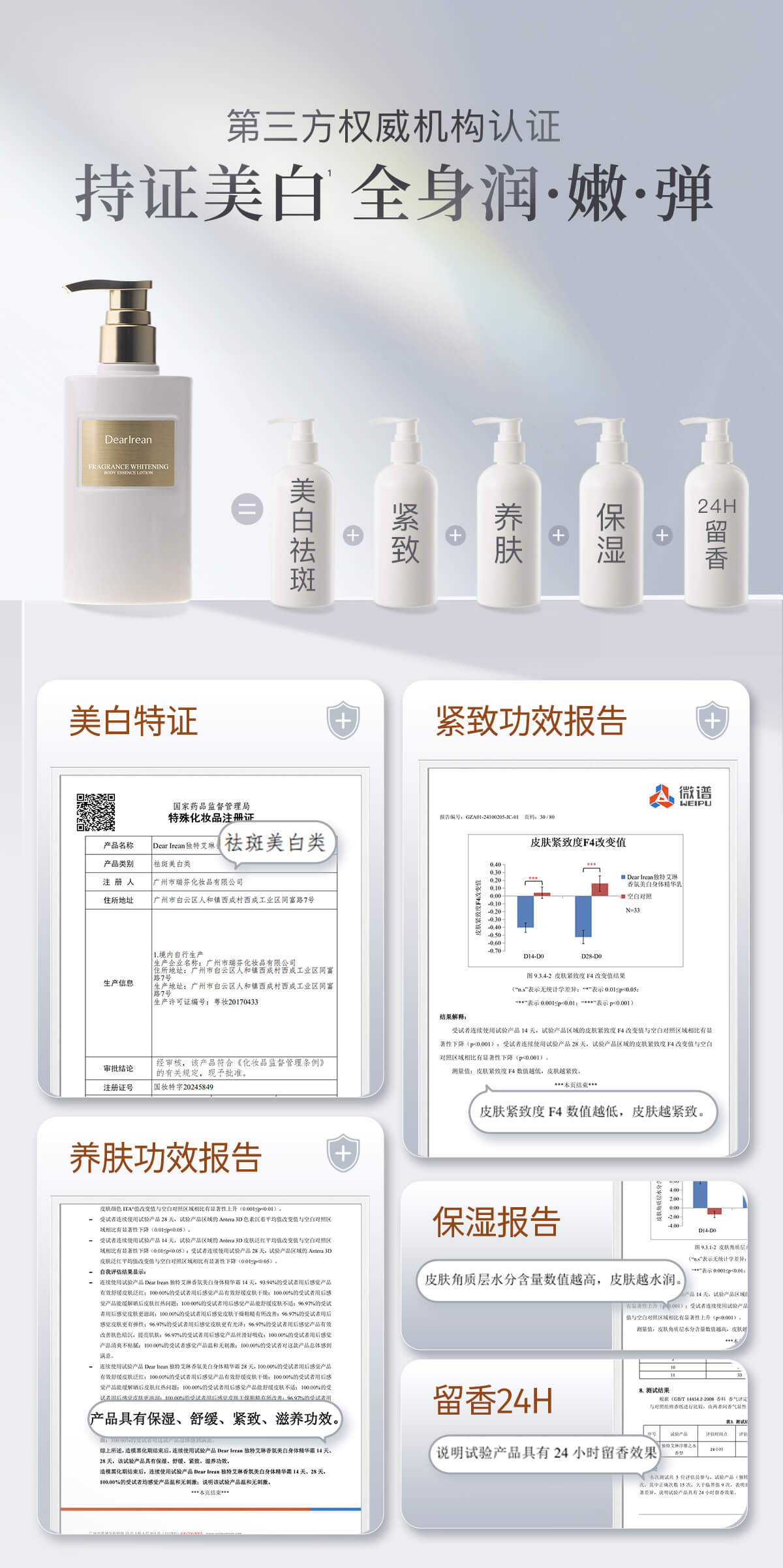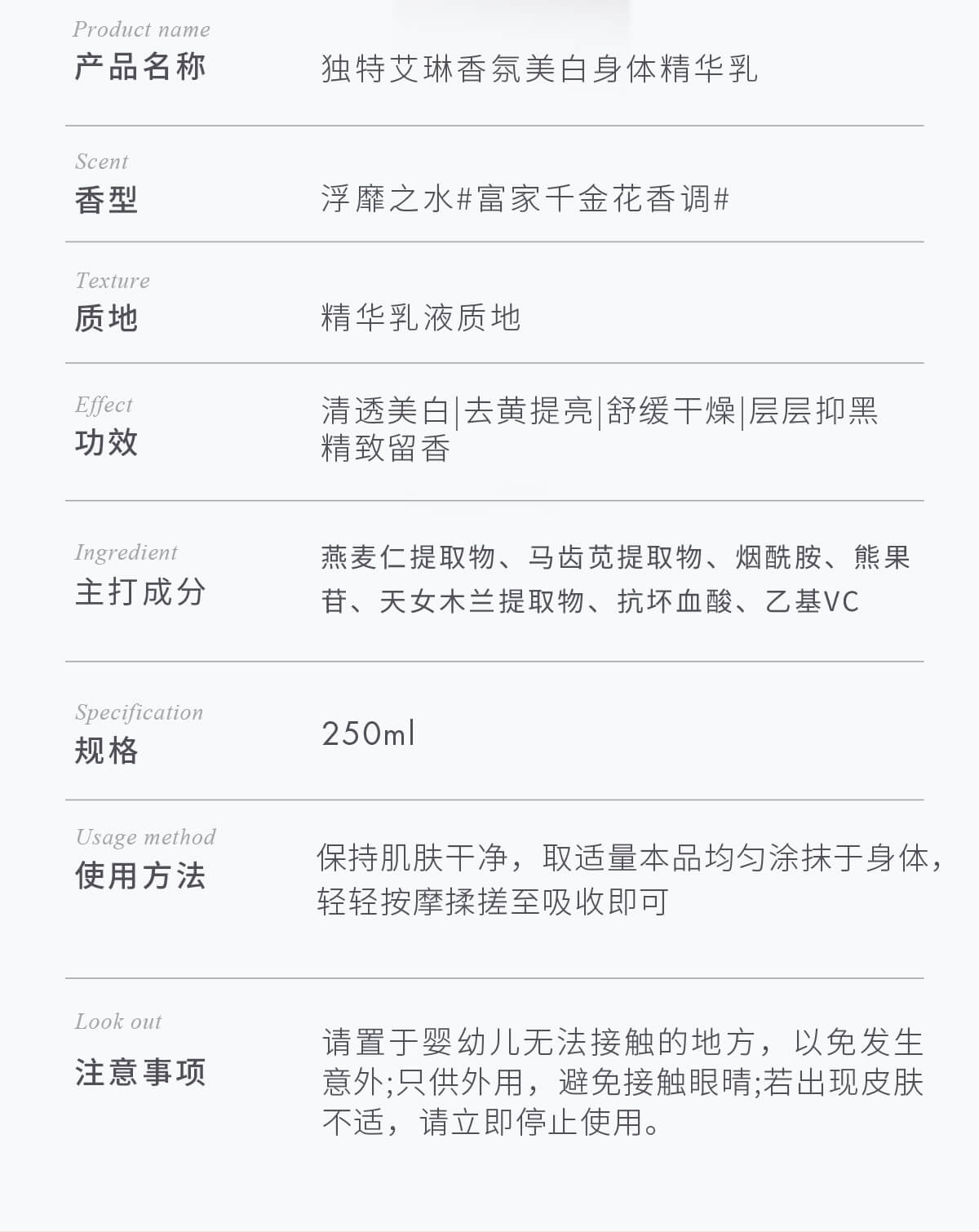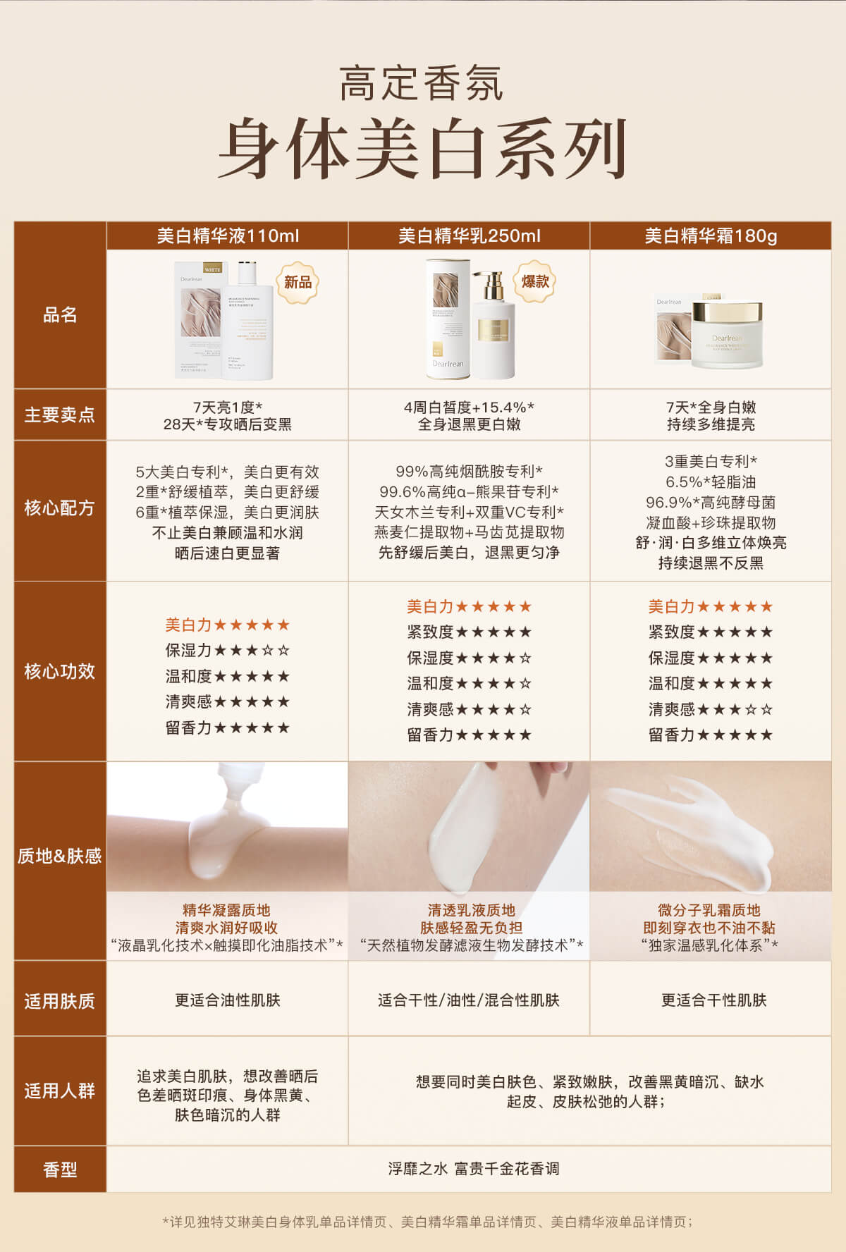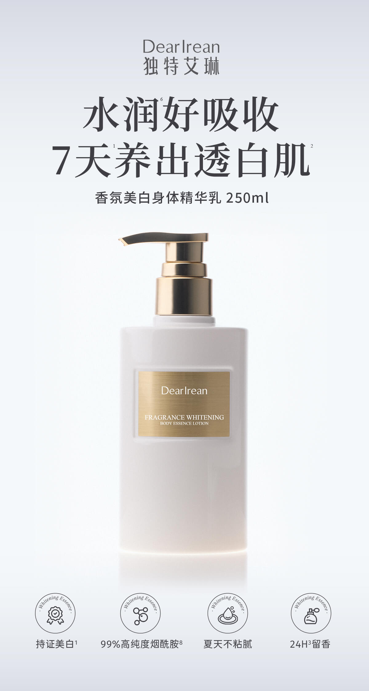 【现货速发】DearIrean 独特艾琳美白系列 香氛美白身体冷霜/精华液/护手霜/滋润美白保湿身体乳260g