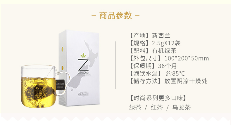 ZEALONG杰境 时尚系列原叶有机袋泡茶 绿茶 2.5g*12袋/盒