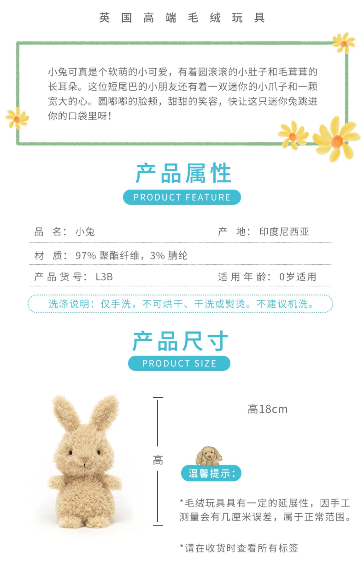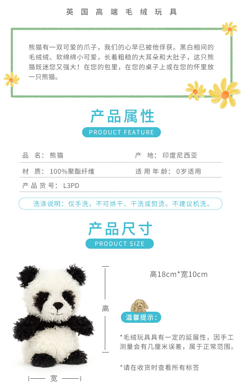 【已下架】英国Jellycat 儿童玩具毛绒玩具公仔玩偶礼物 小兔/熊猫均码18cm [福利品]