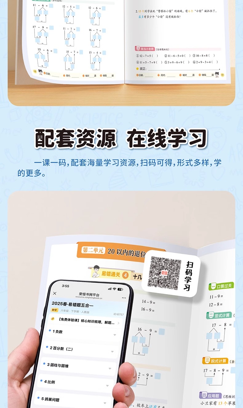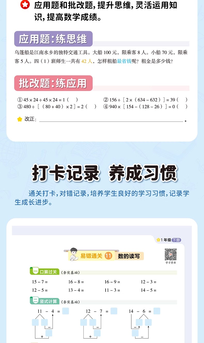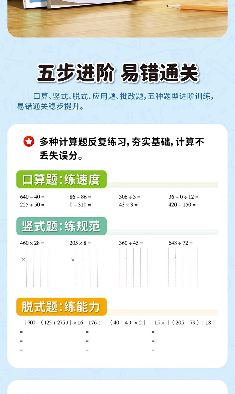 2025新版小学一二三四五六年级上册下册数学口算天天练口算题卡竖式脱式计算题应用题五合一专项强化训练计算能手教材同步练习册