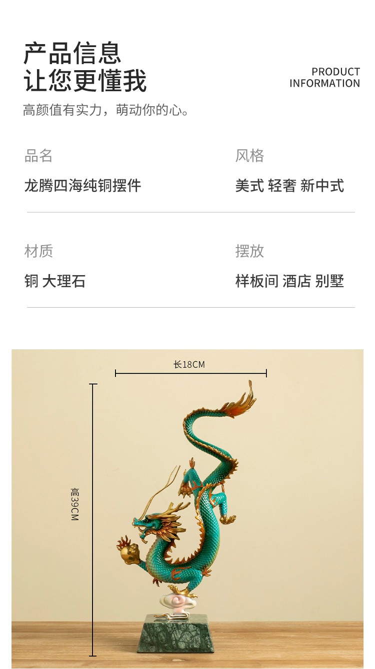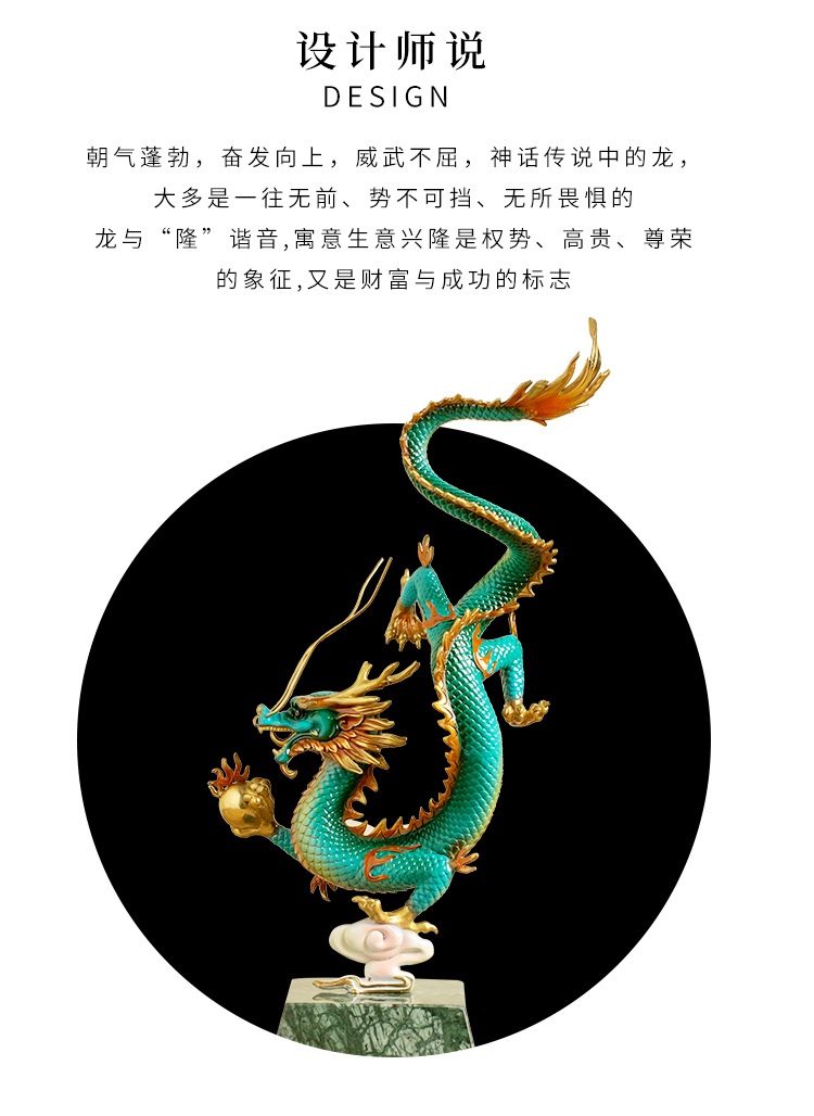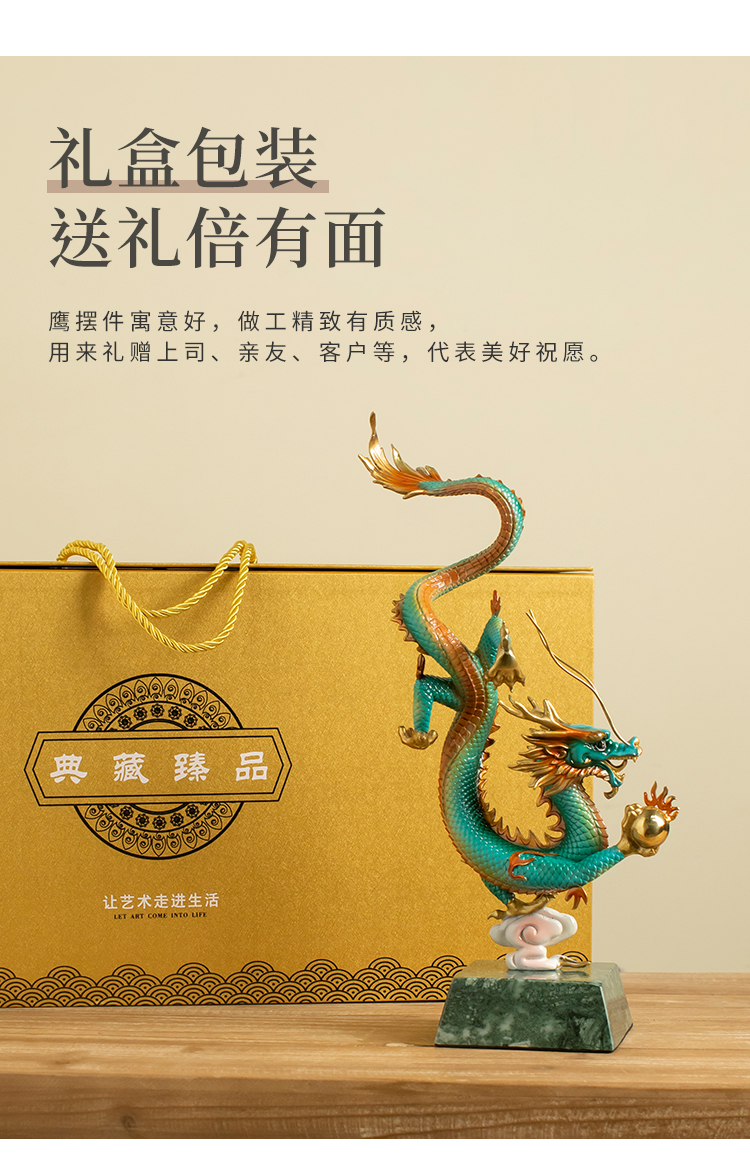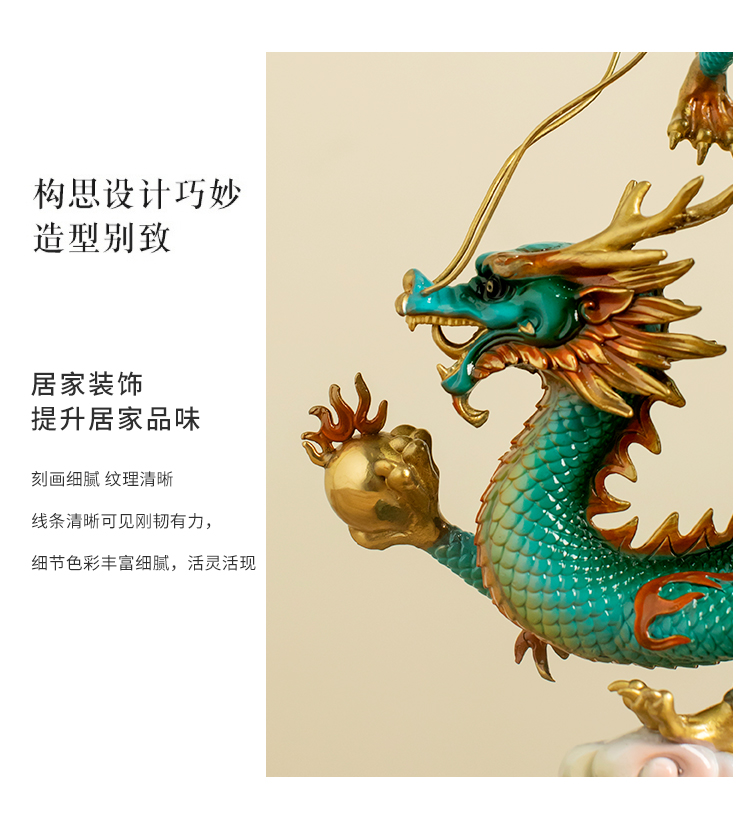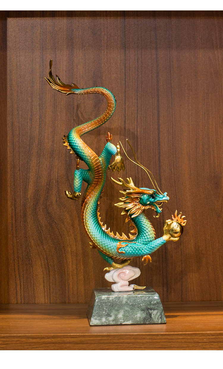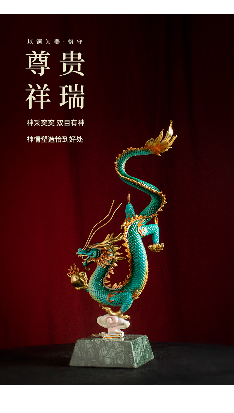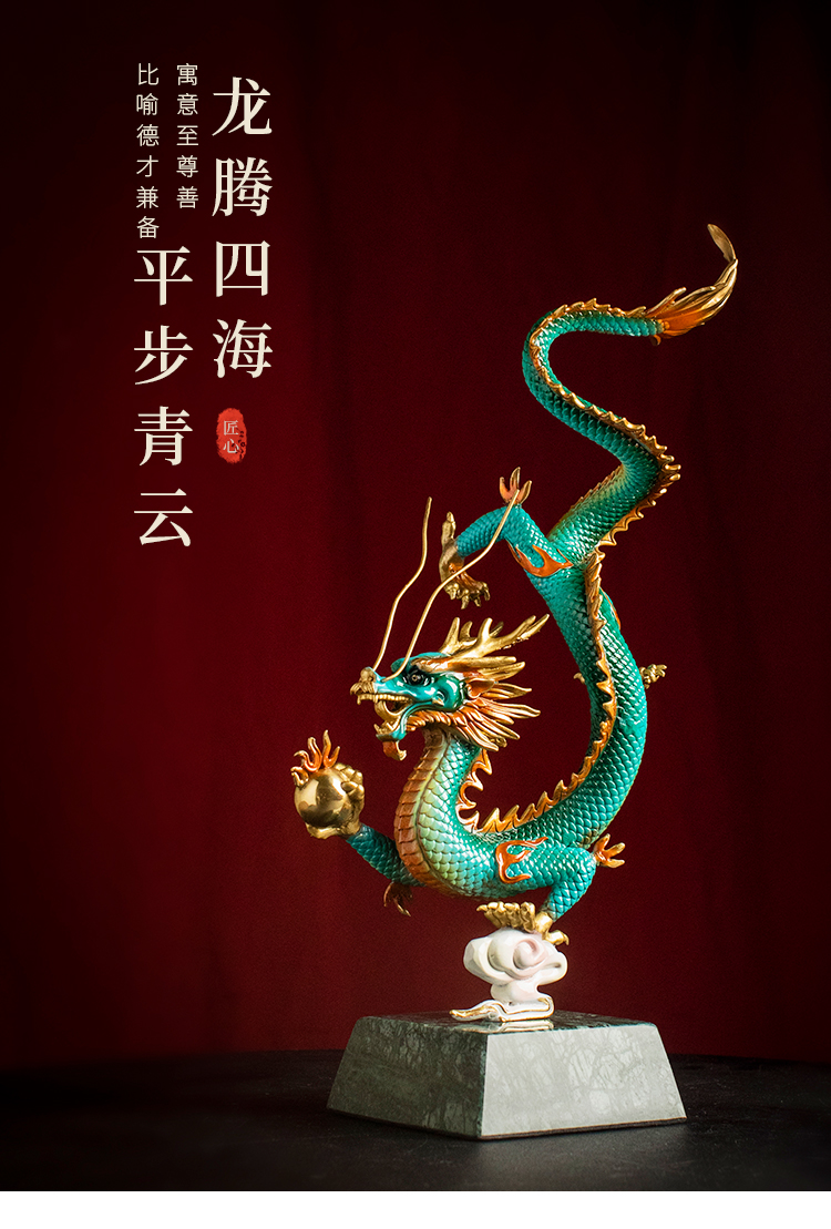 全铜《财富兴隆》龙摆件招财生肖龙书房工艺品家居办公室招财礼品龙腾四海纯铜摆件客厅书房办公室玄关新中式摆件