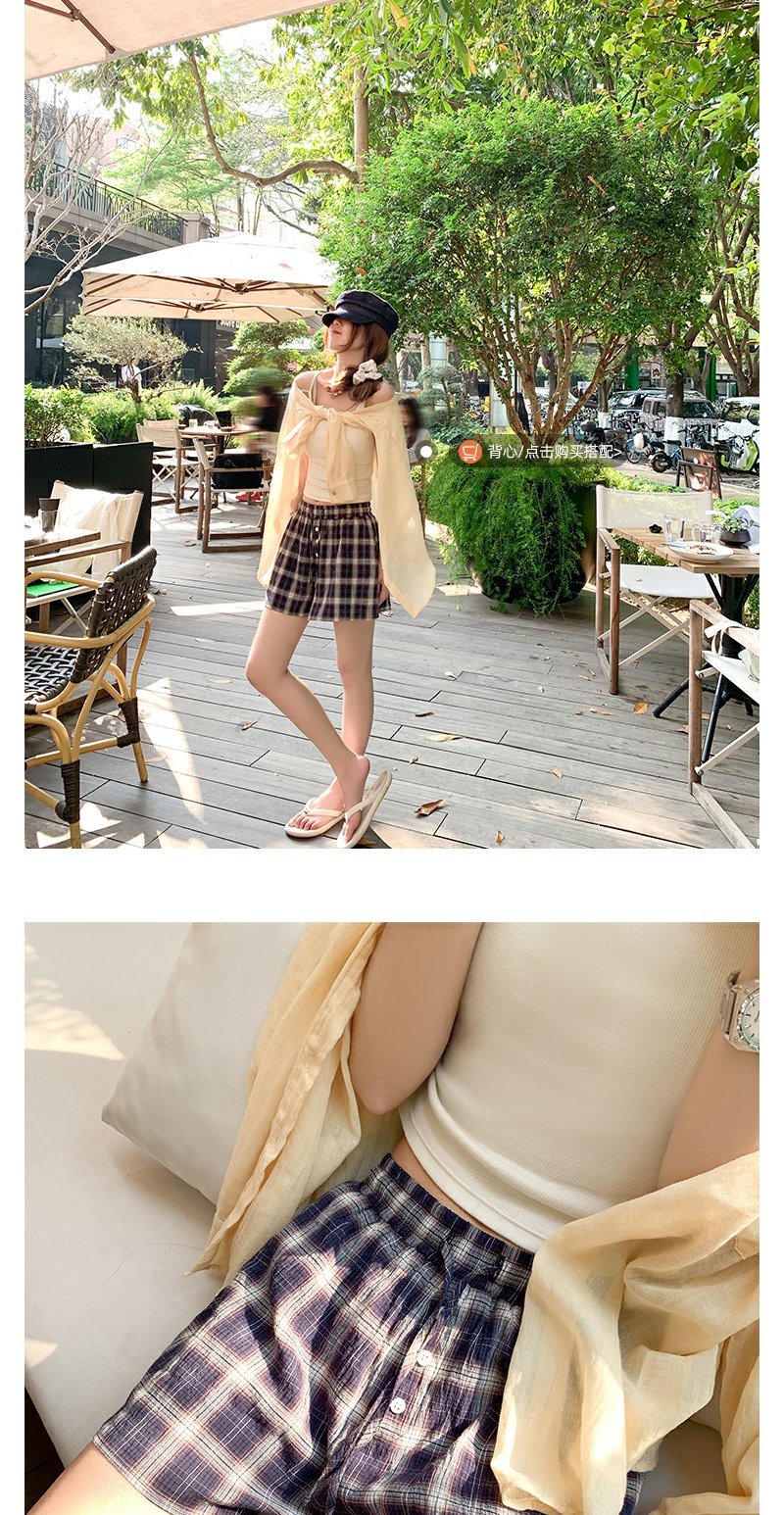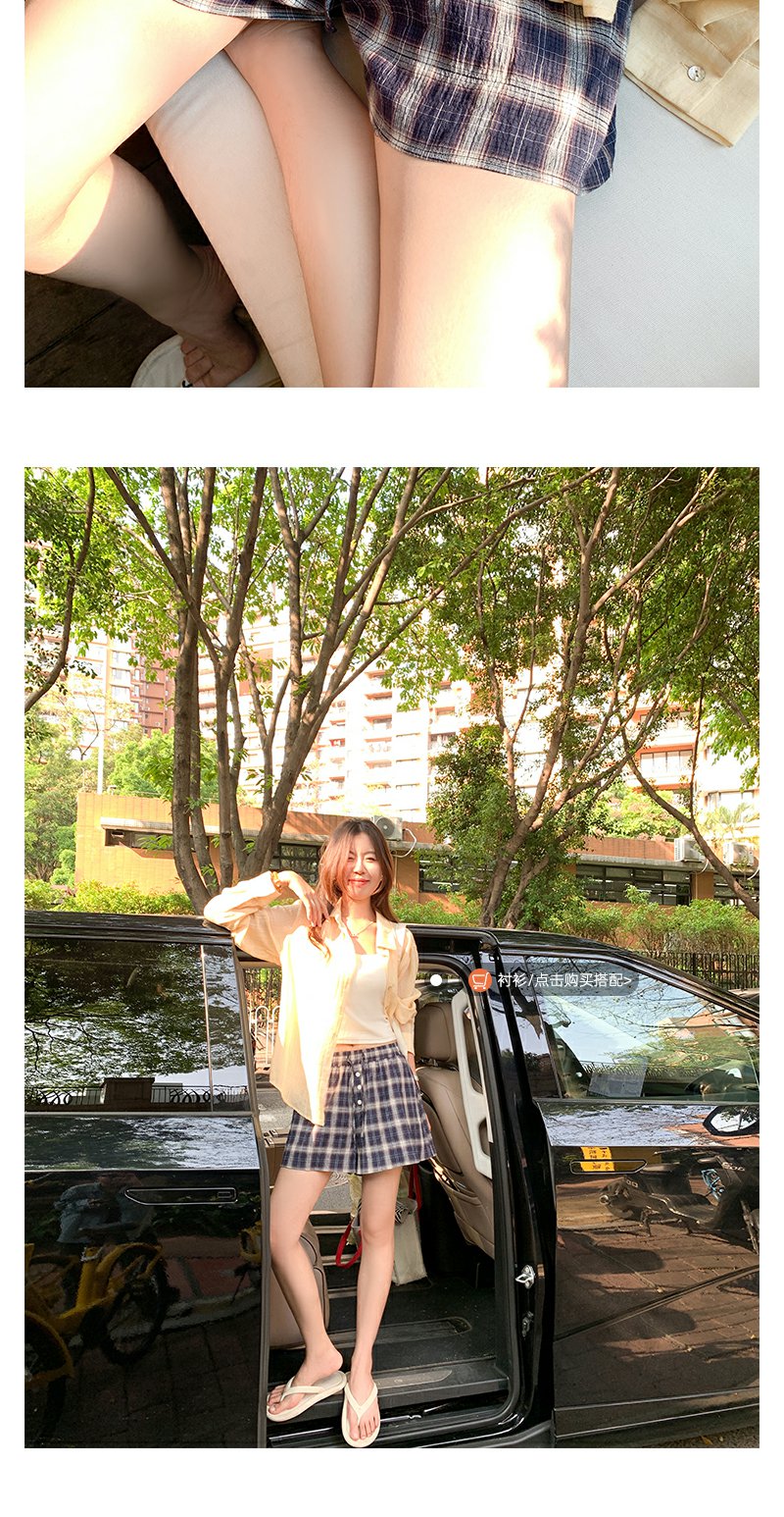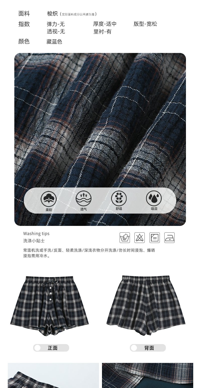 <曾小咸推荐>现货秒杀!最后一波 !高腰显瘦休闲藏蓝色格子短裤 日常119.99 立减60 秒杀59.99!